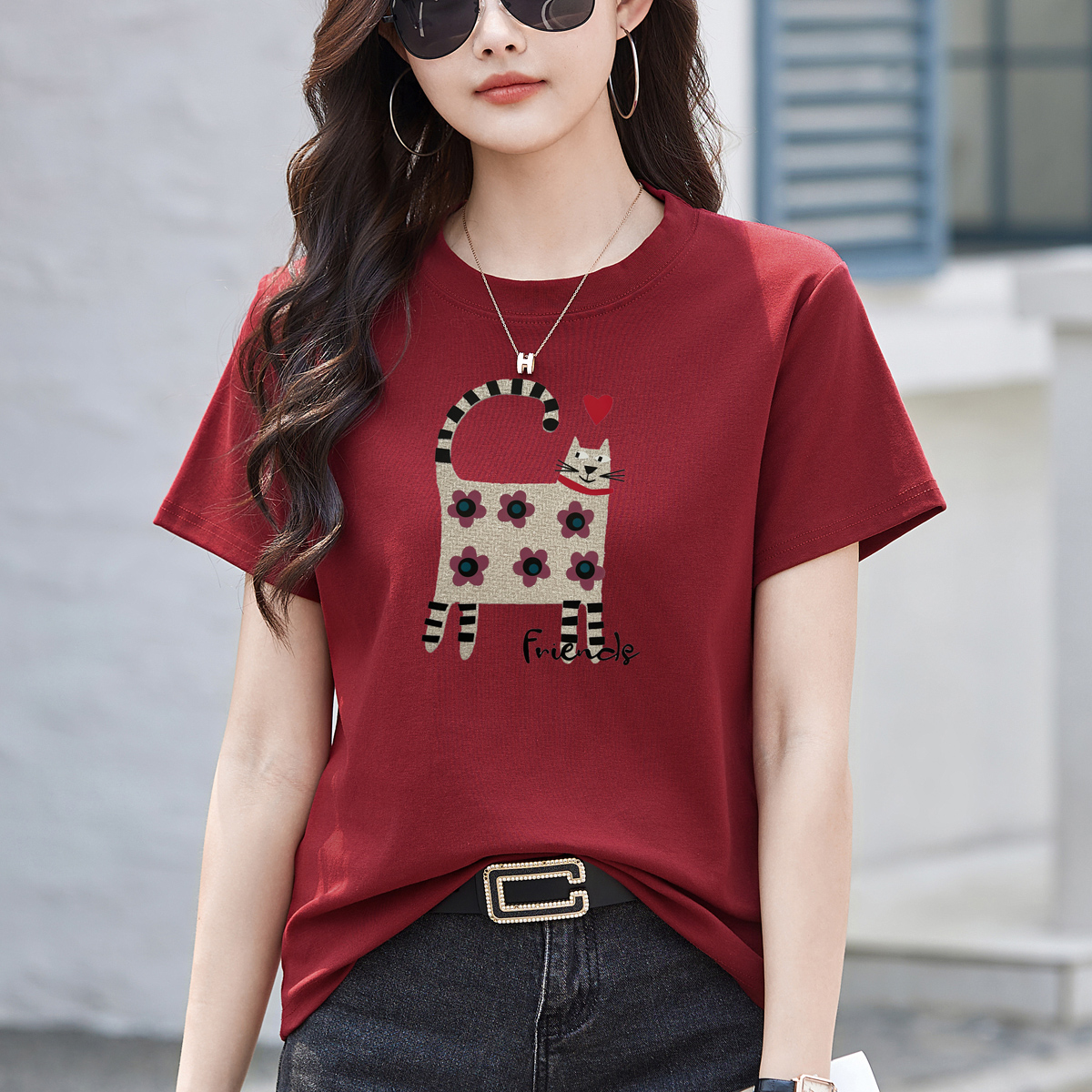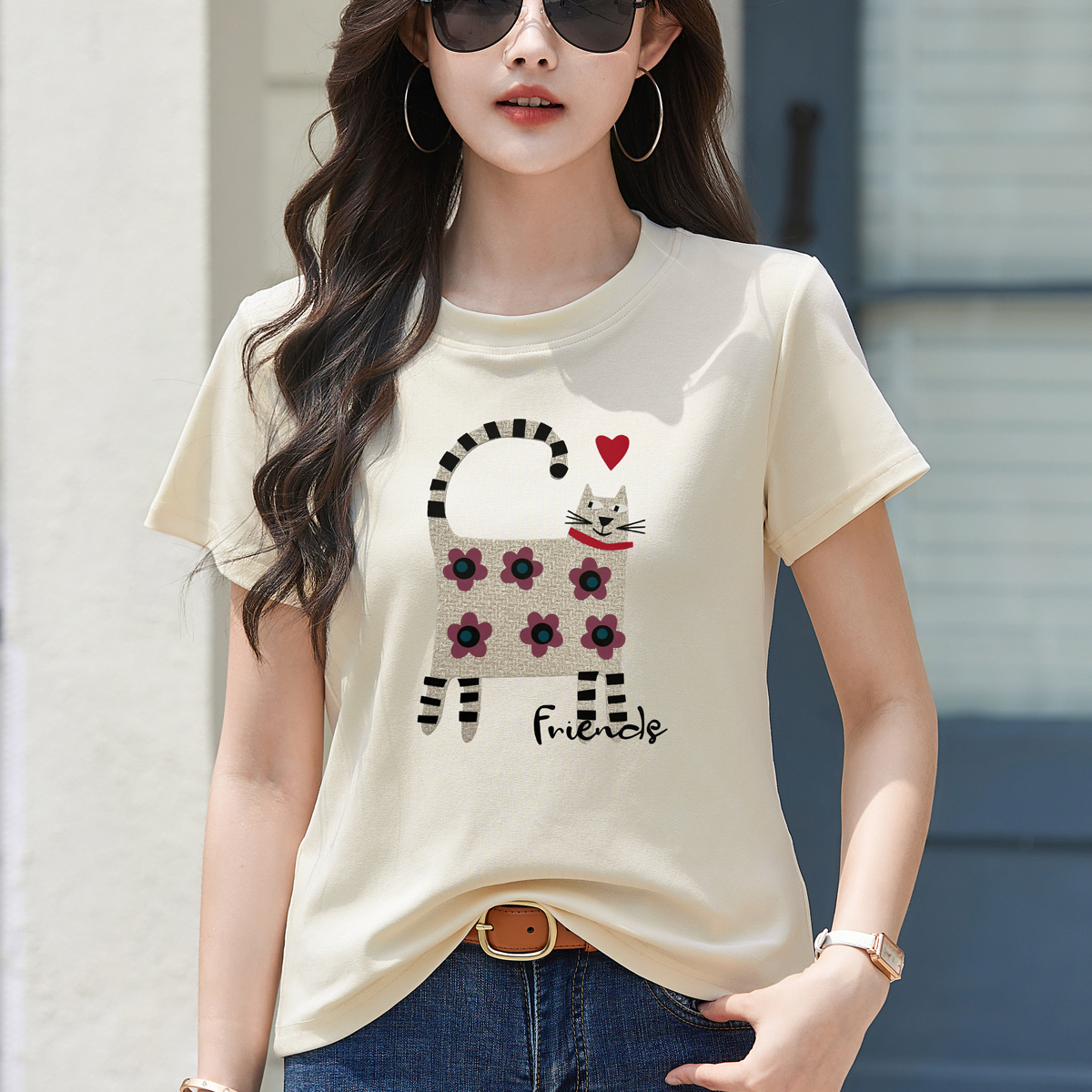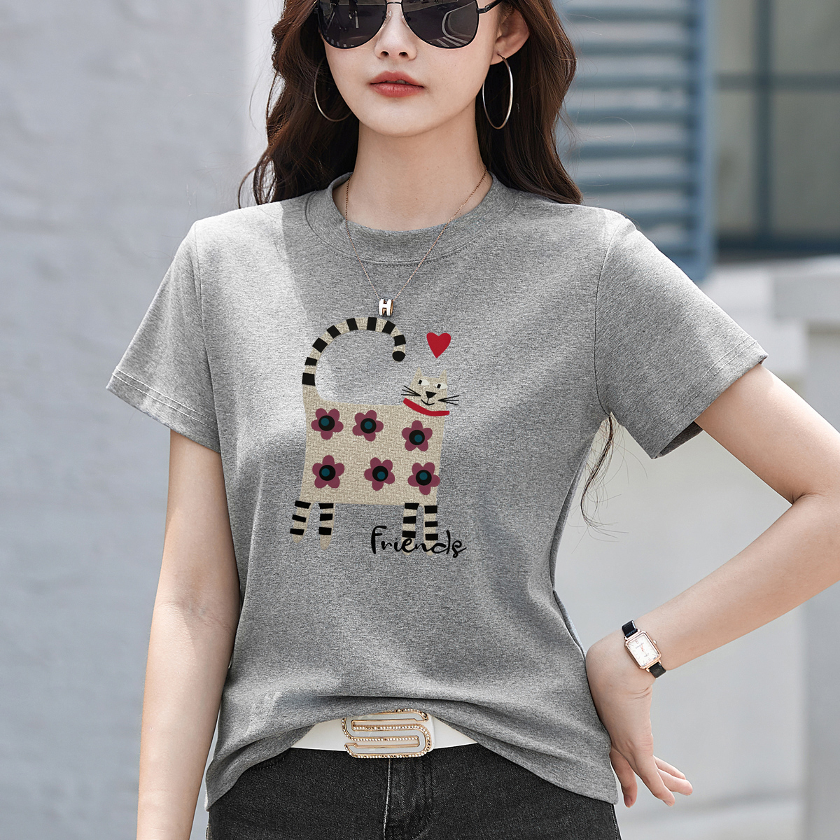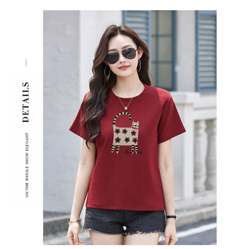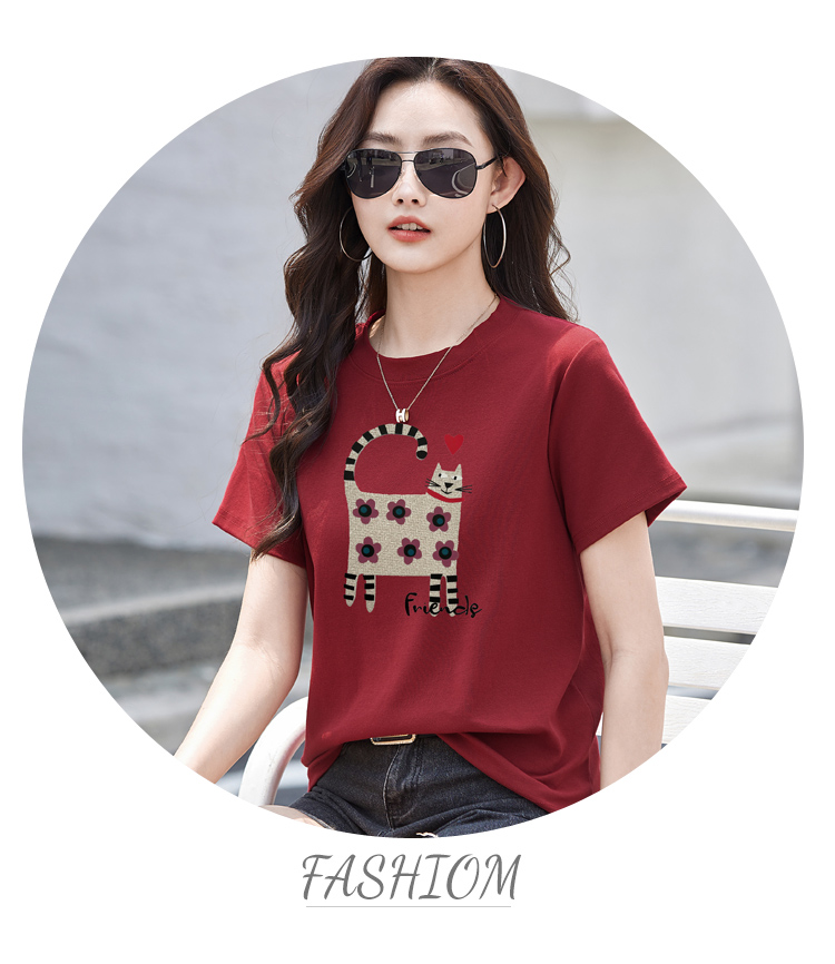 RY4296# 2026新款短袖T恤女装夏季潮流时尚宽松显瘦简约圆领立体图案上衣