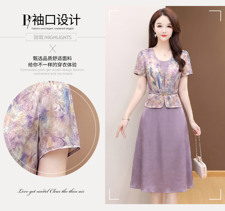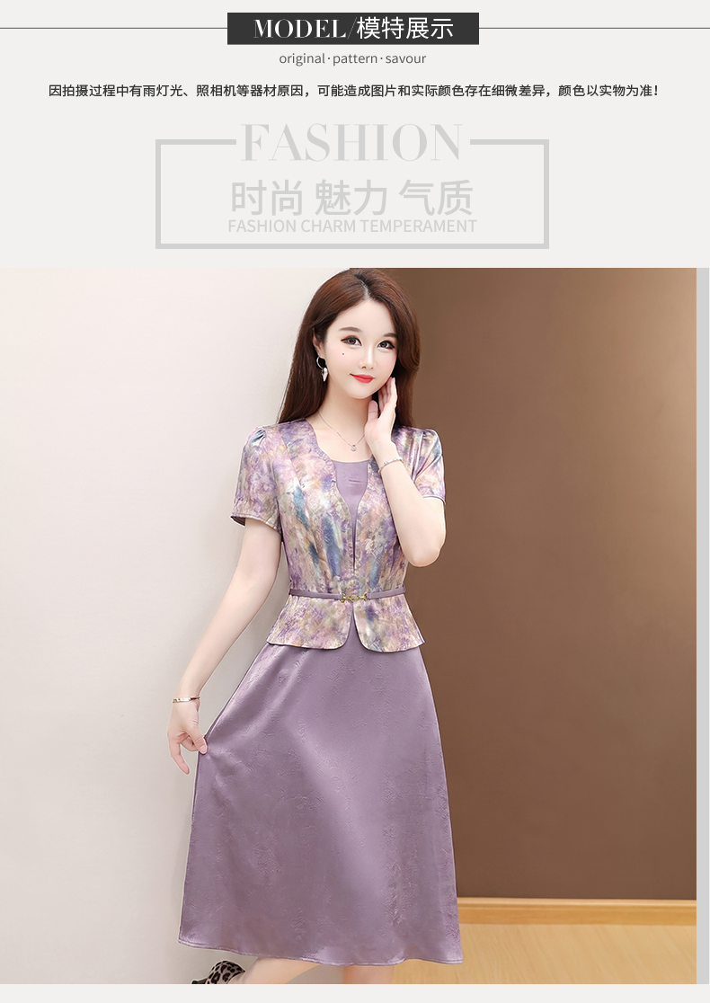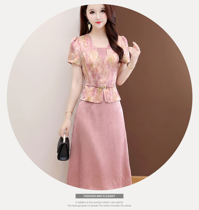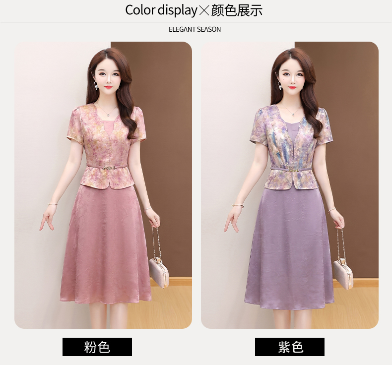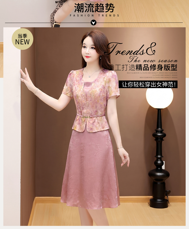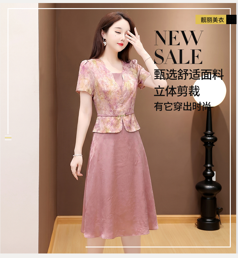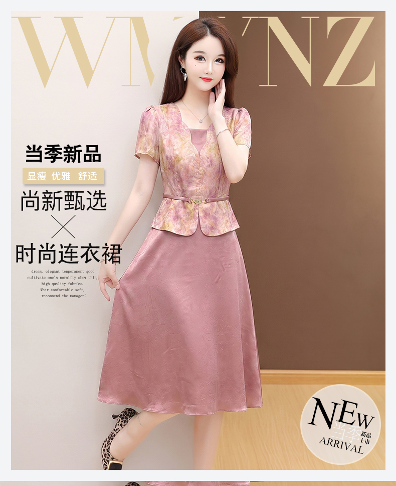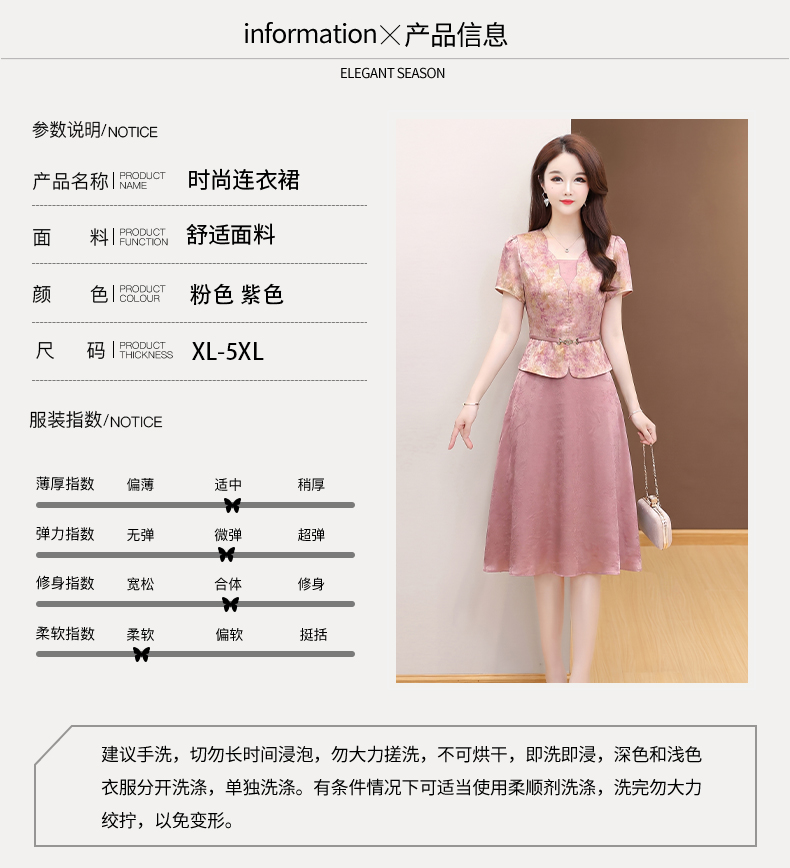 RY4301# 实拍有货 2026夏季新款大码短袖连衣裙妈妈装收腰显瘦优雅洋气