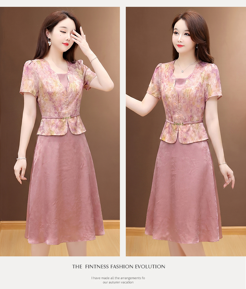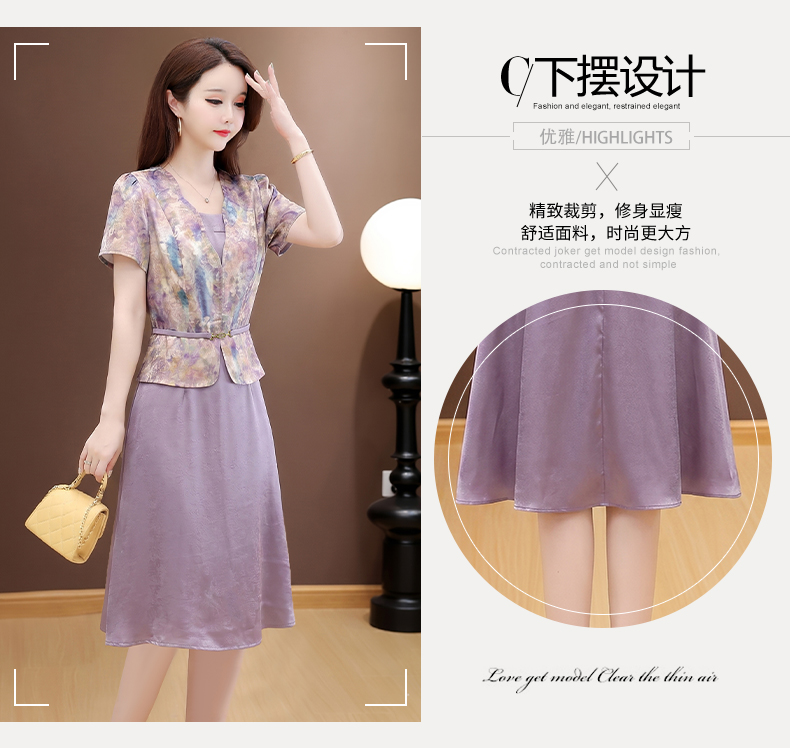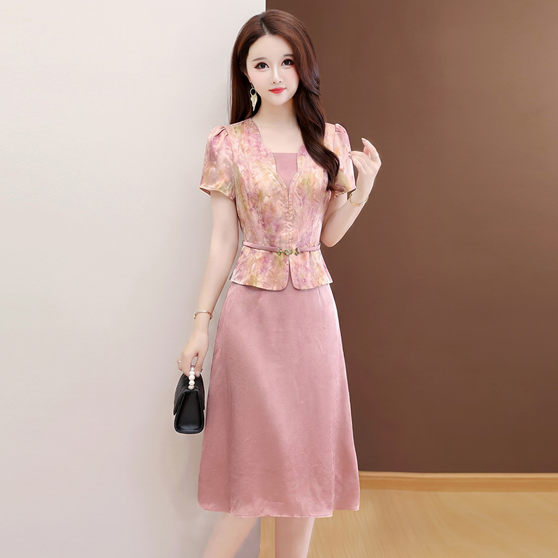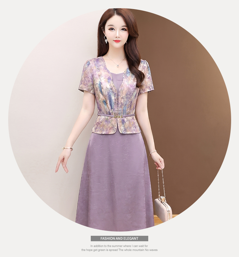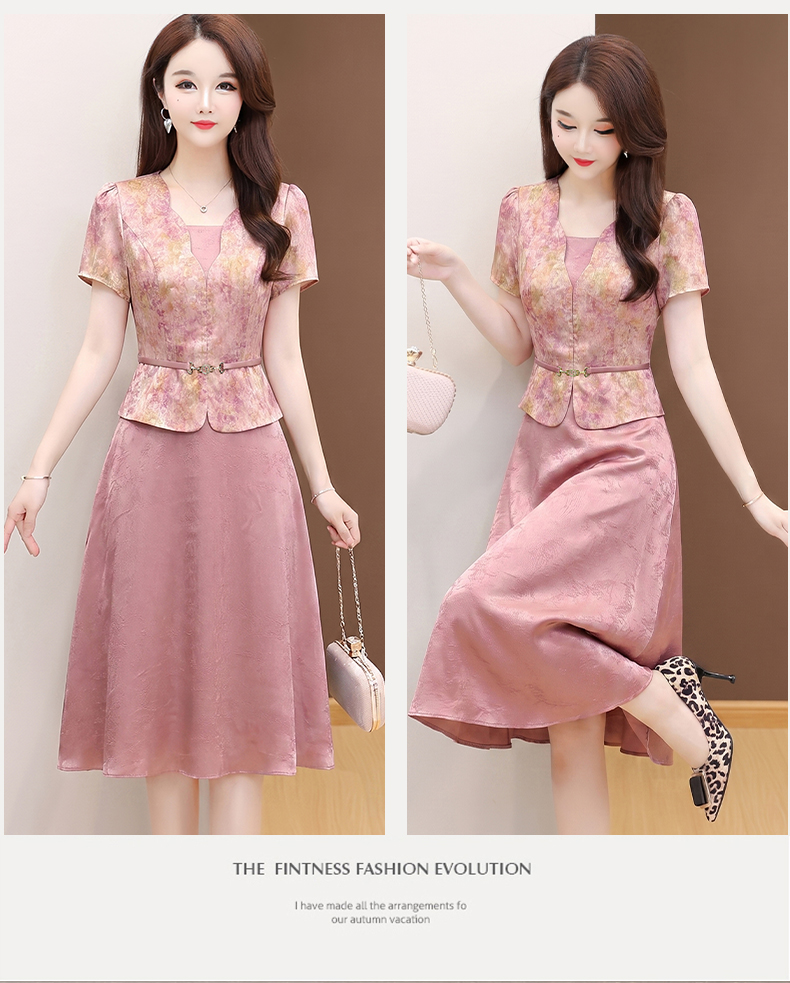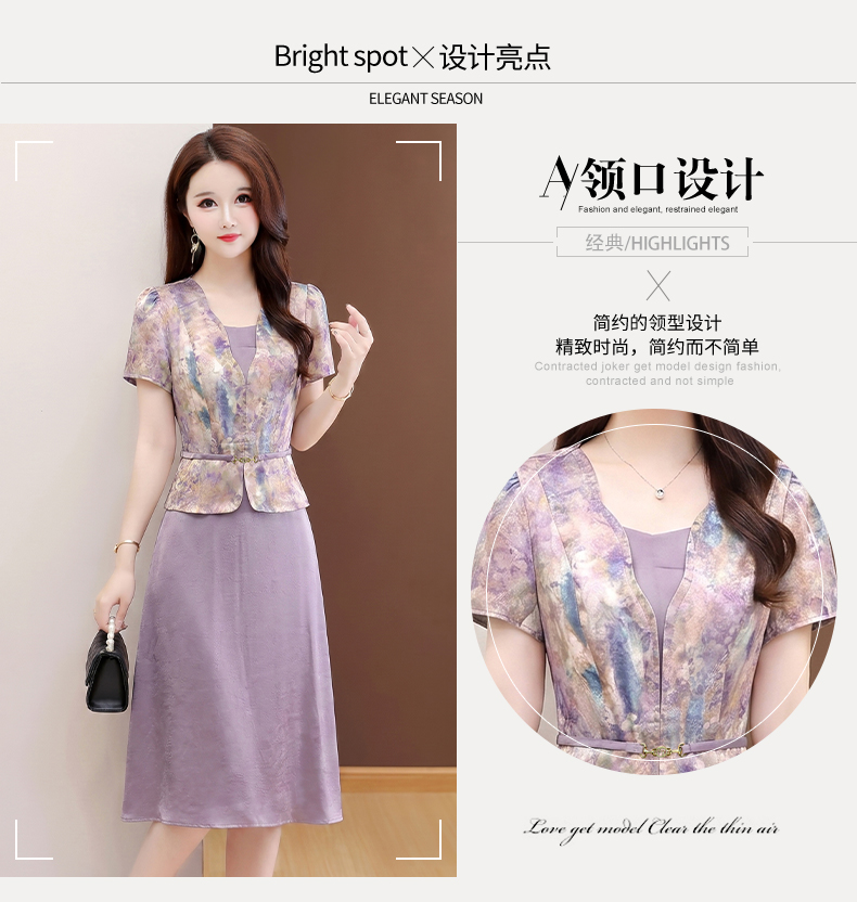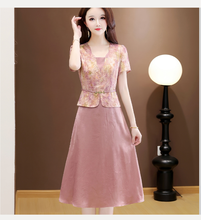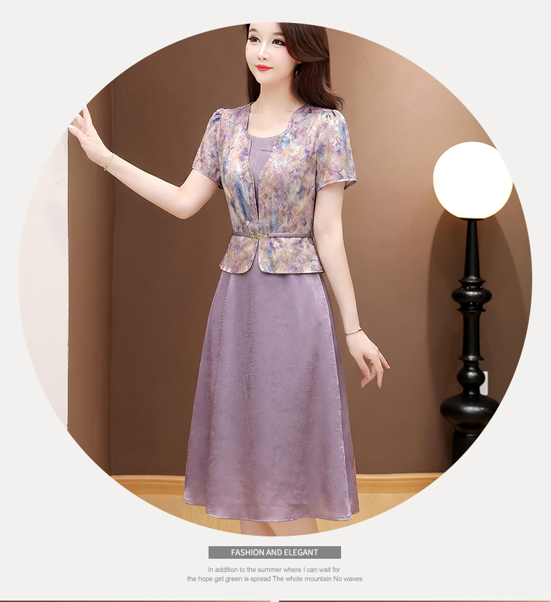 RY4301# 实拍有货 2026夏季新款大码短袖连衣裙妈妈装收腰显瘦优雅洋气