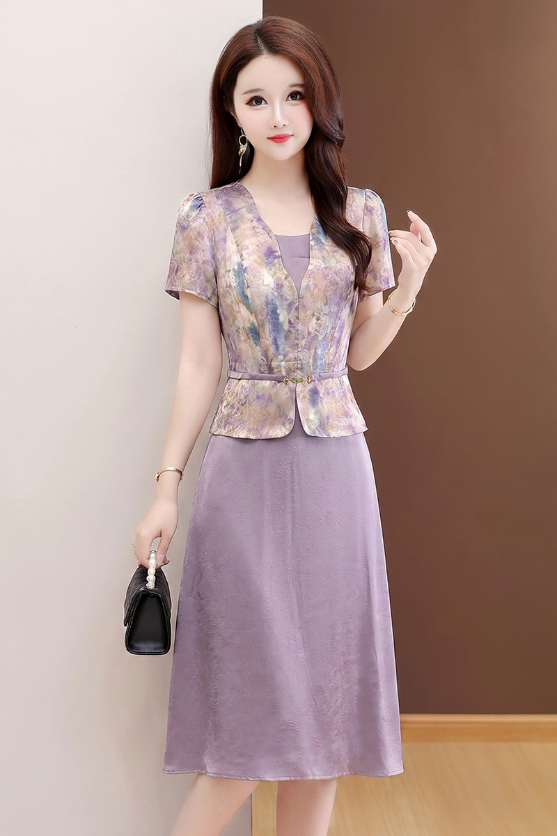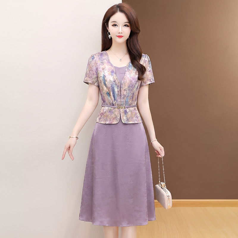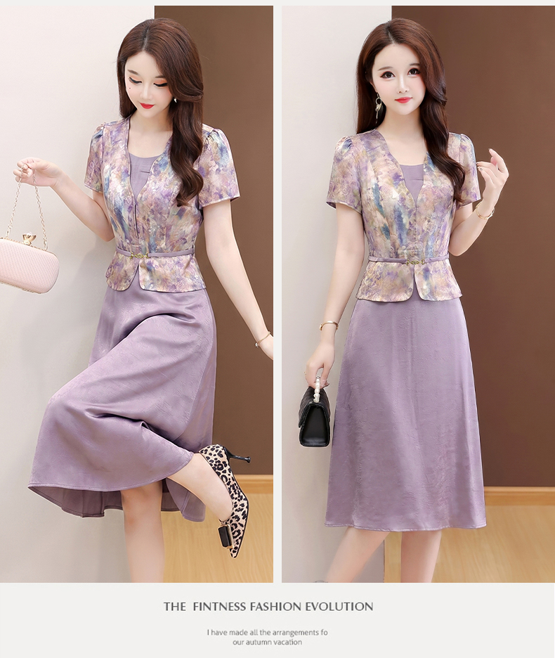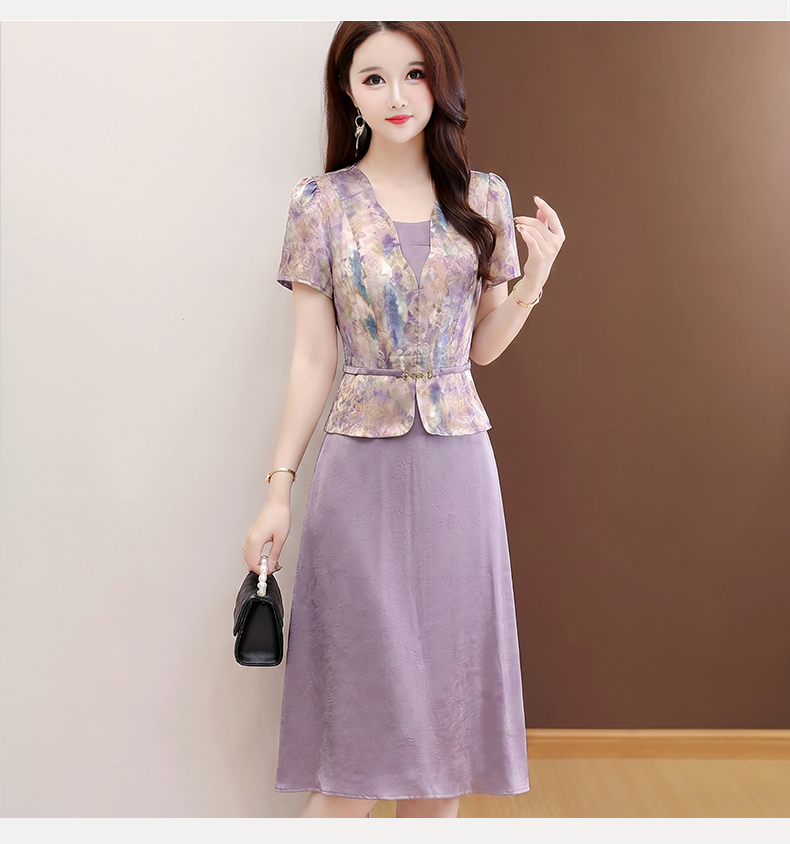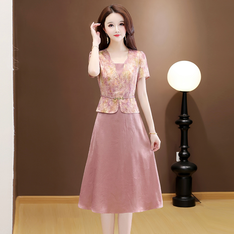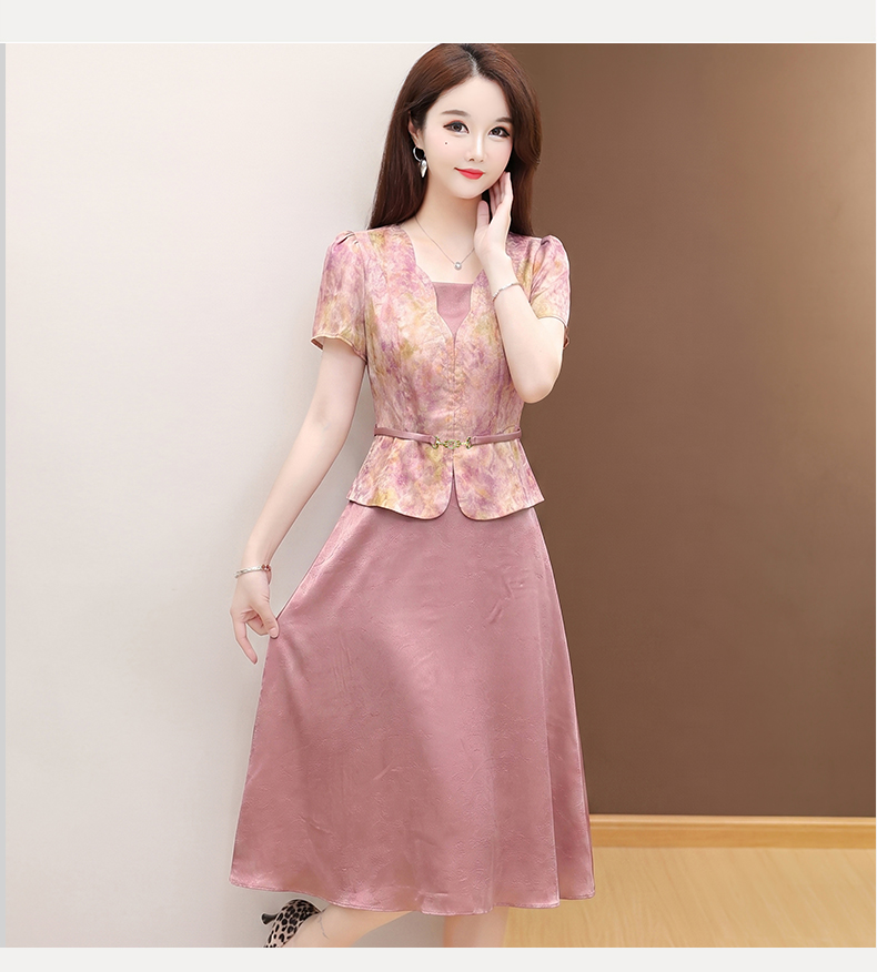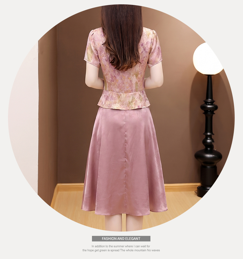 RY4301# 实拍有货 2026夏季新款大码短袖连衣裙妈妈装收腰显瘦优雅洋气