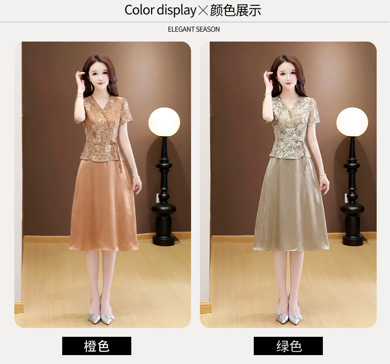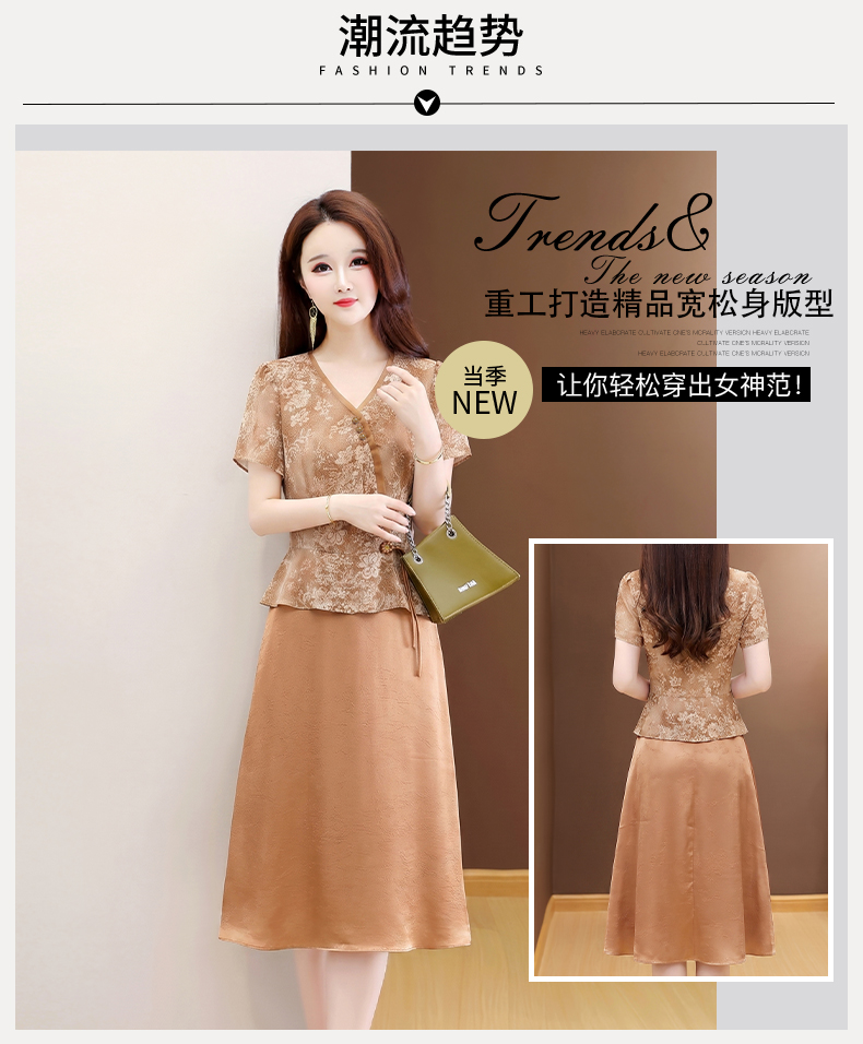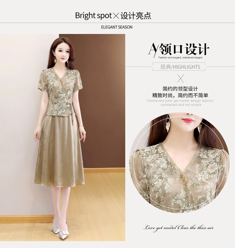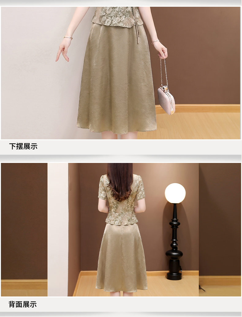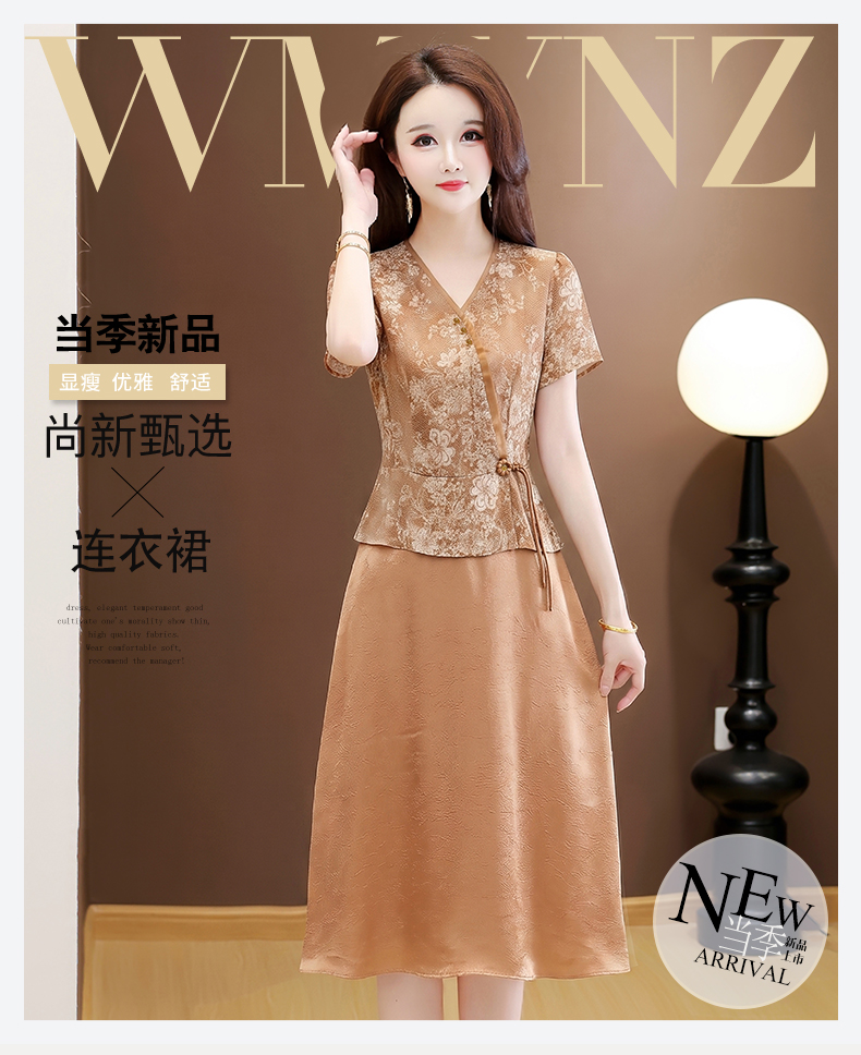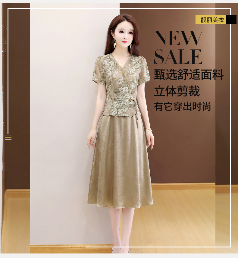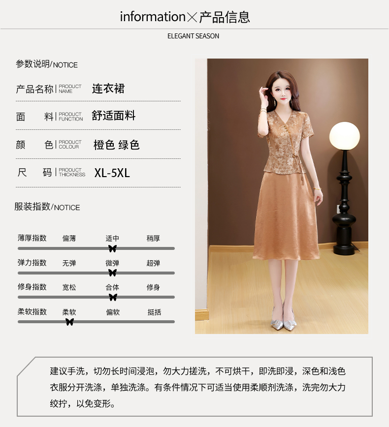 RY4302# 实拍有货 2026夏季新款大码短袖连衣裙缎面收腰显瘦单层时尚洋气