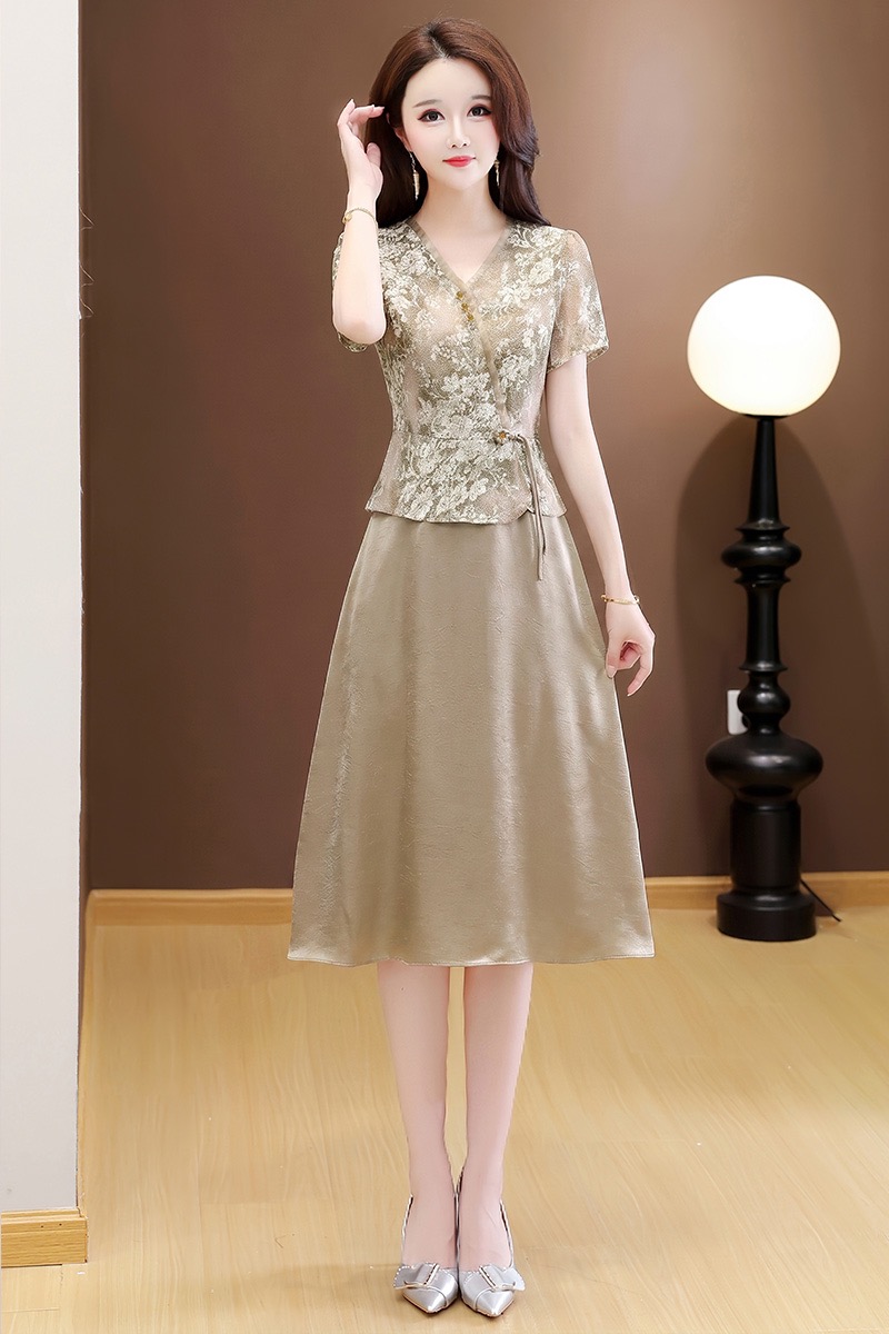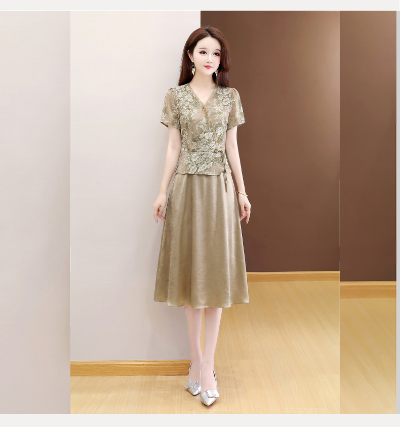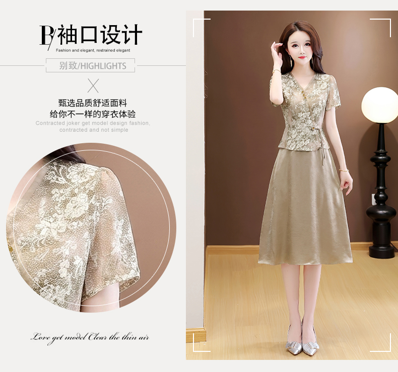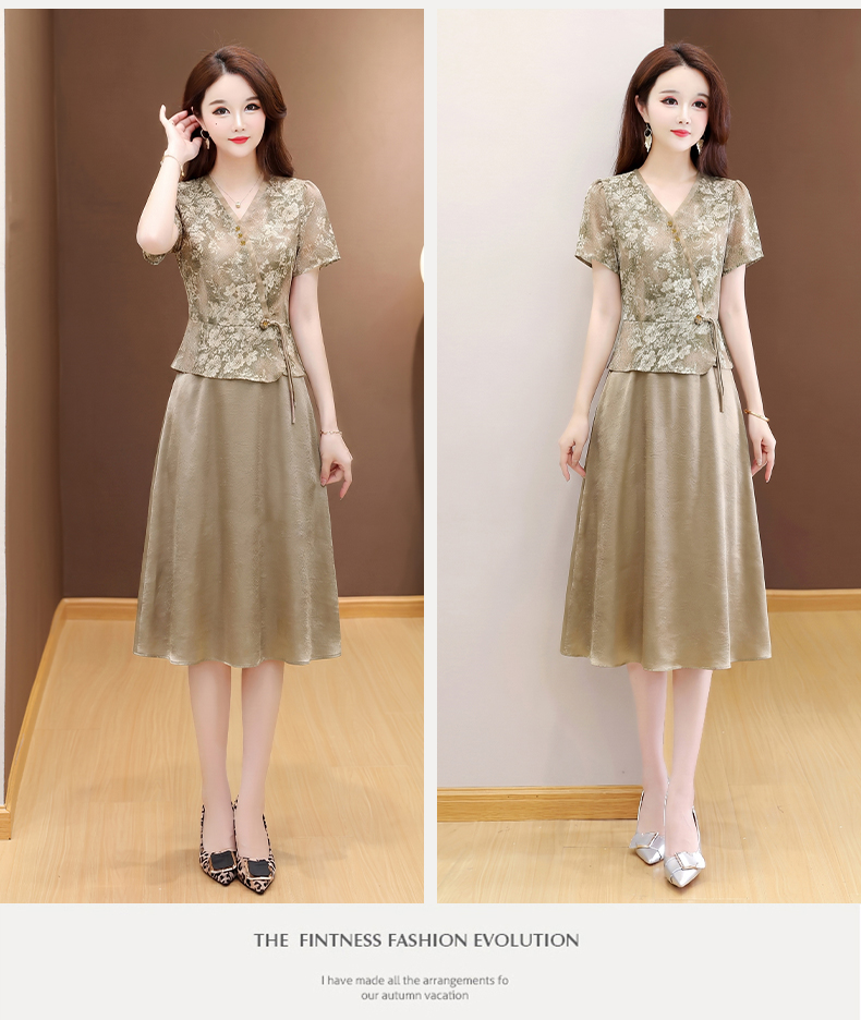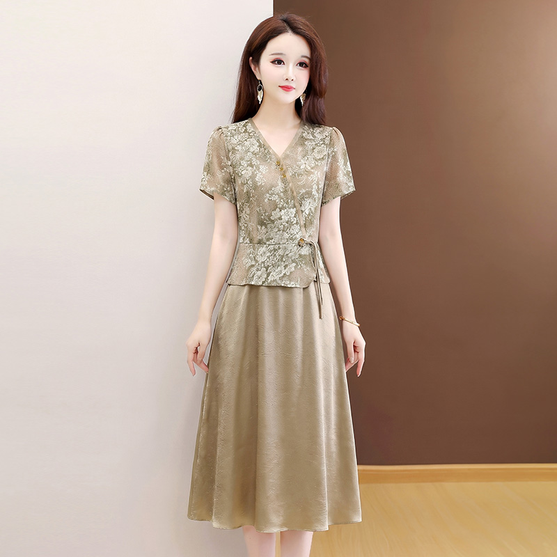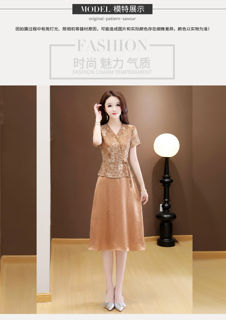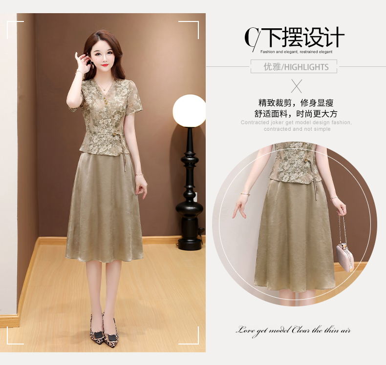 RY4302# 实拍有货 2026夏季新款大码短袖连衣裙缎面收腰显瘦单层时尚洋气