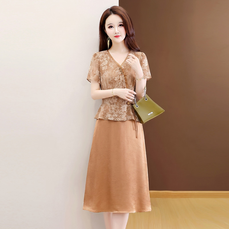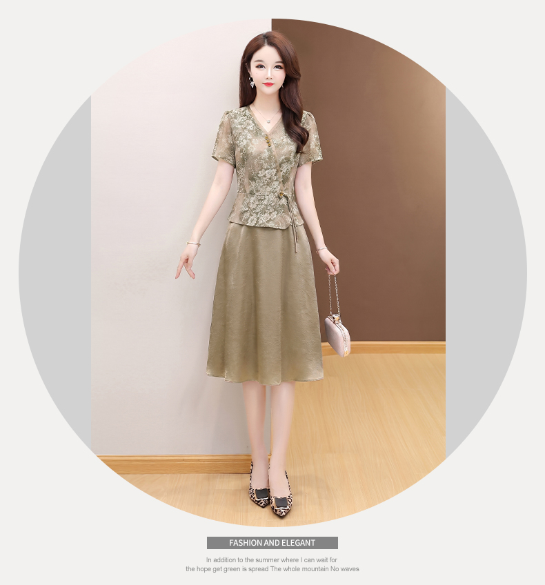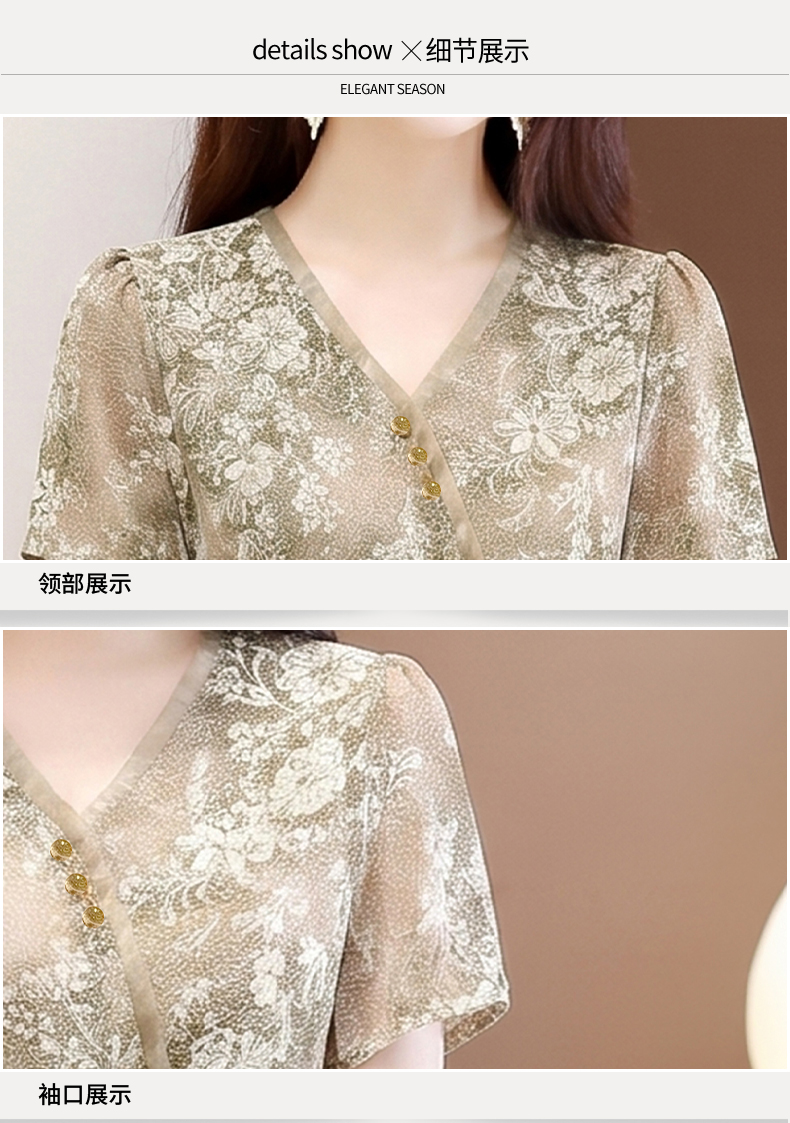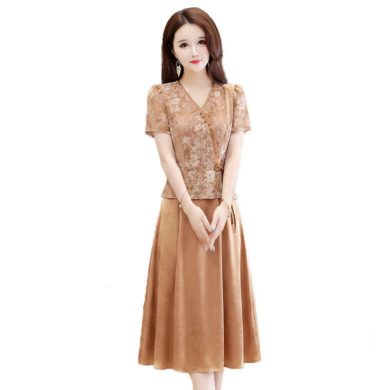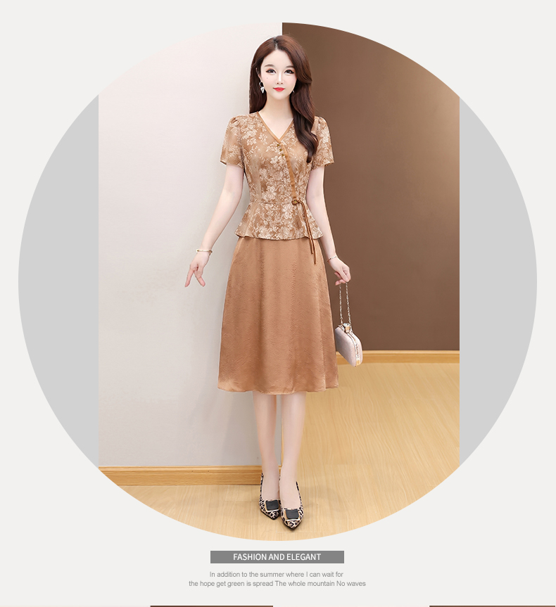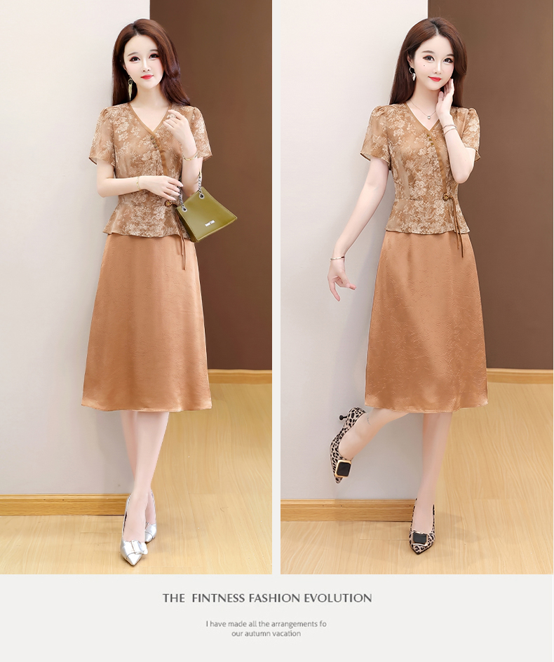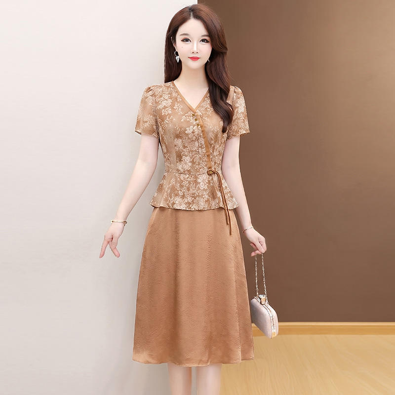 RY4302# 实拍有货 2026夏季新款大码短袖连衣裙缎面收腰显瘦单层时尚洋气