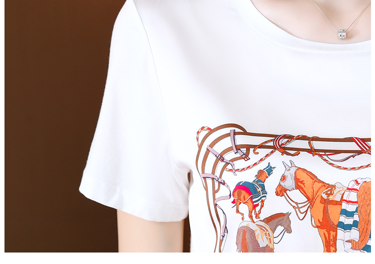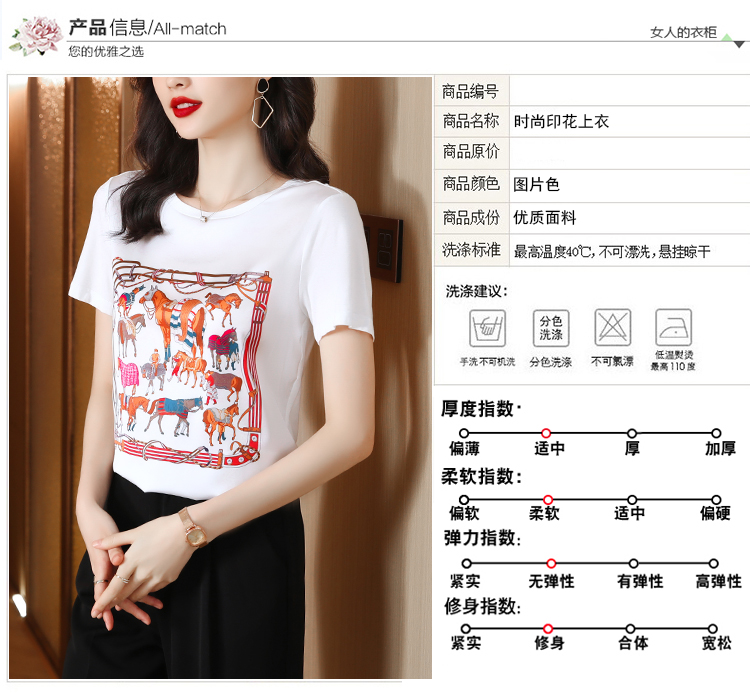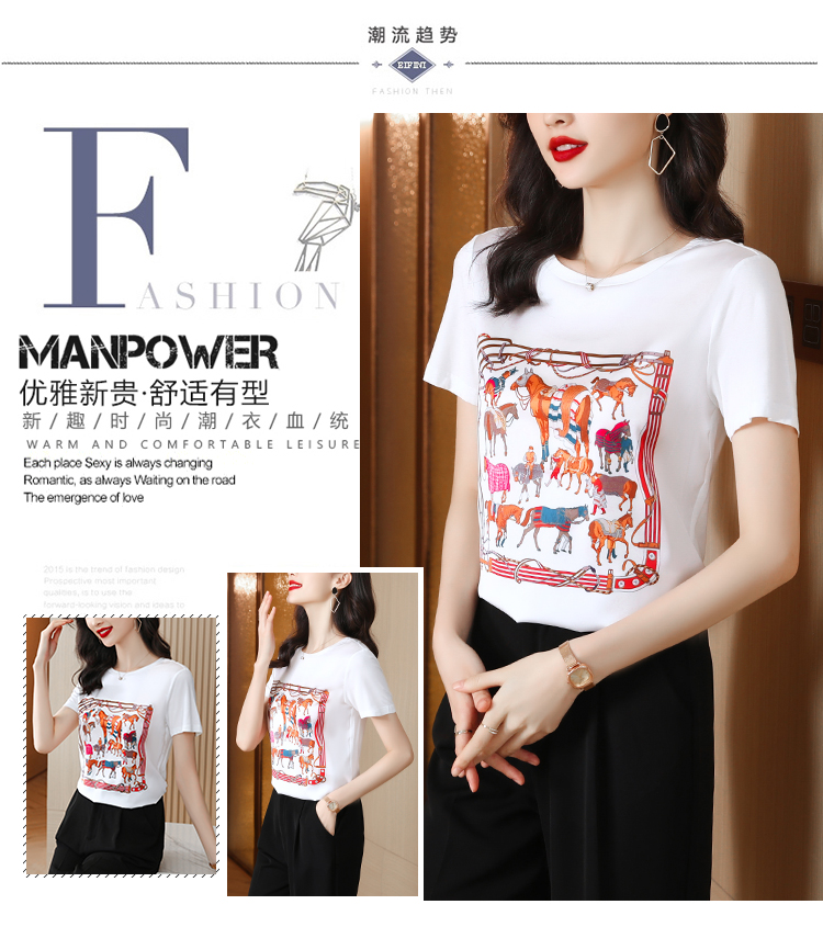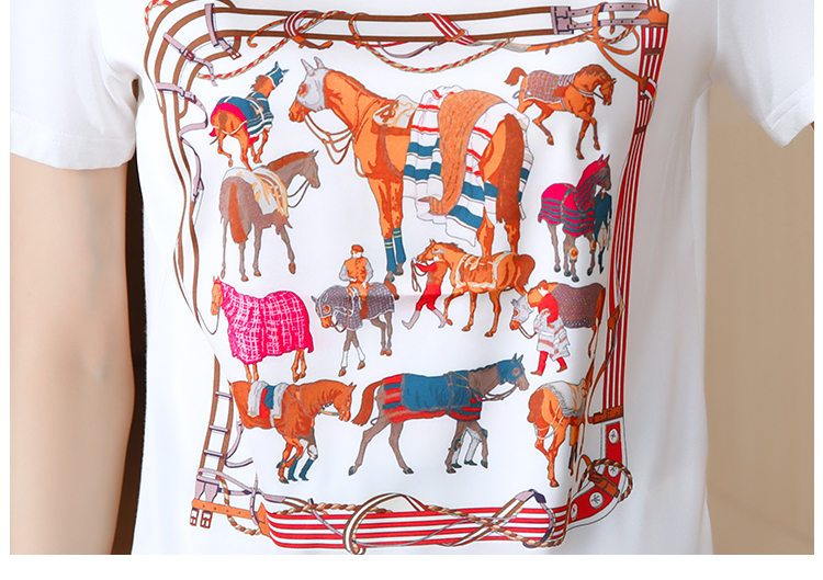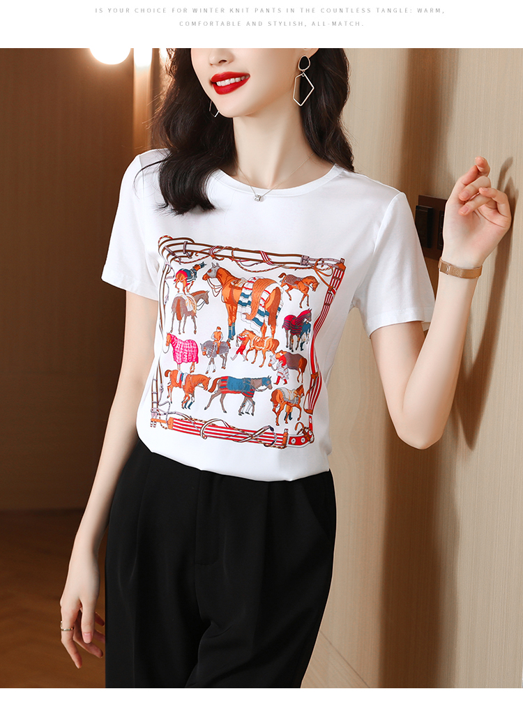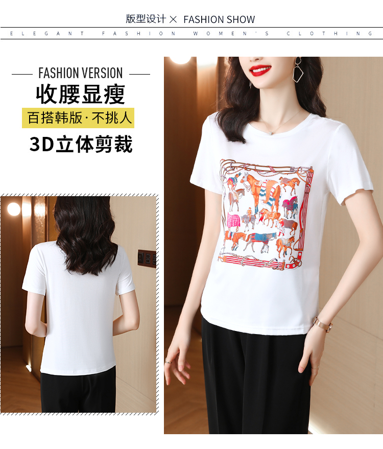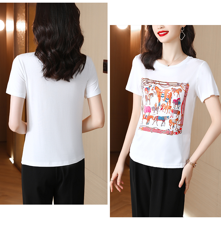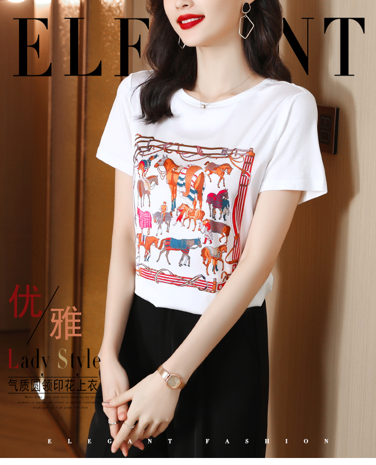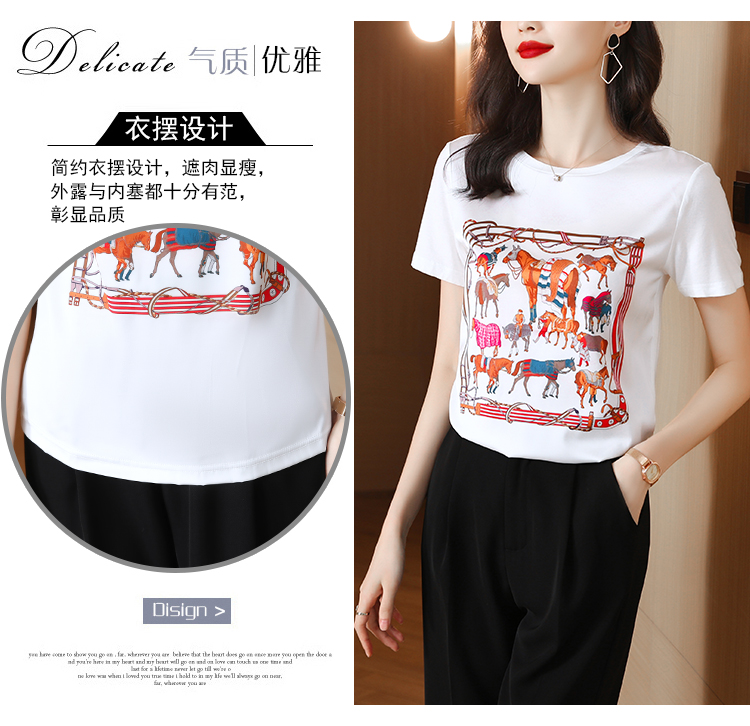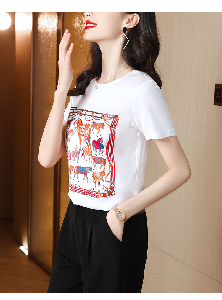 RY4307# K重磅真丝t恤女短袖印花桑蚕丝白色圆领小衫2026夏装半袖短款上衣