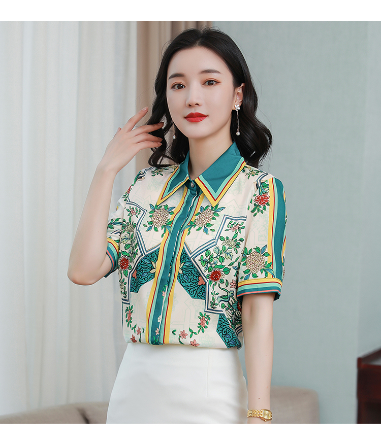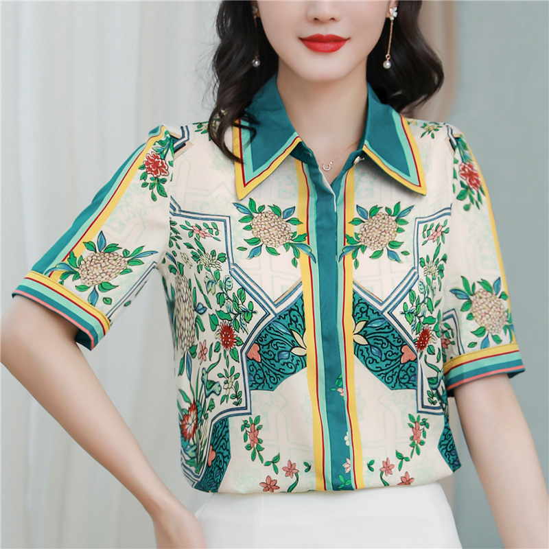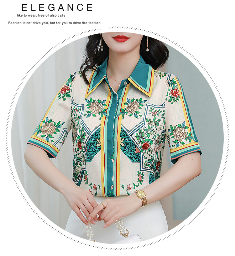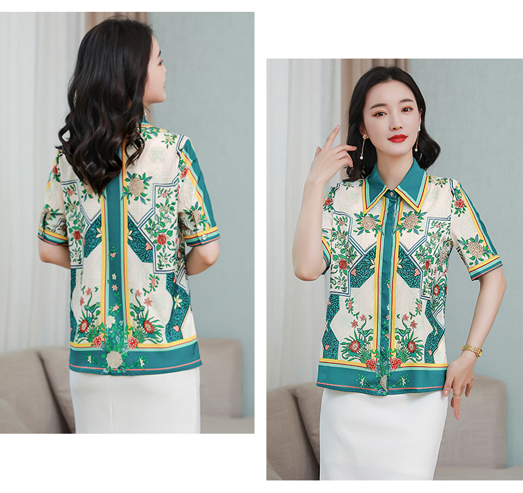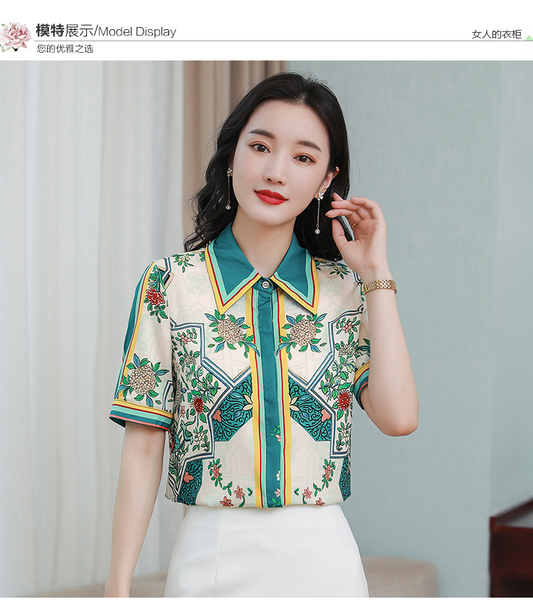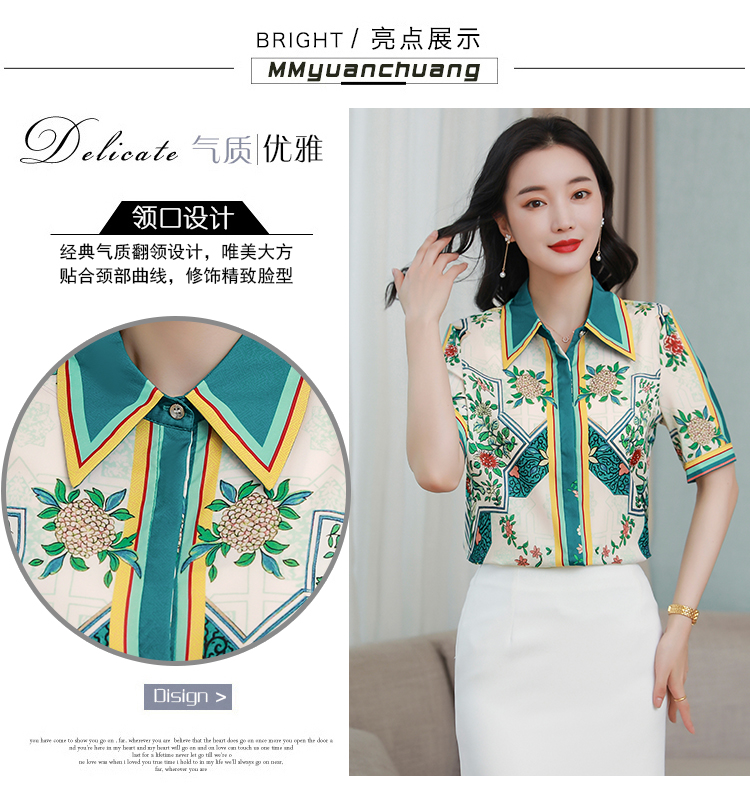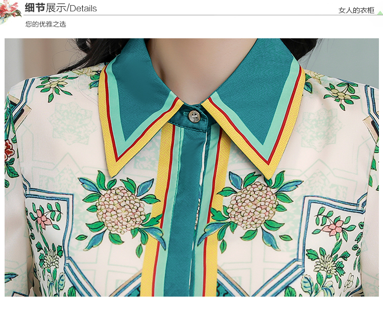 RY4312# 高端重磅真丝衬衫女长袖2026夏季新款时尚宽松缎面印花桑蚕丝上衣