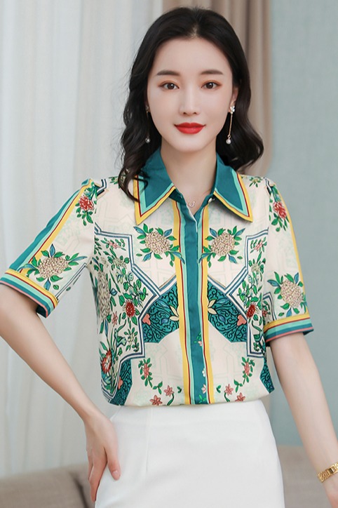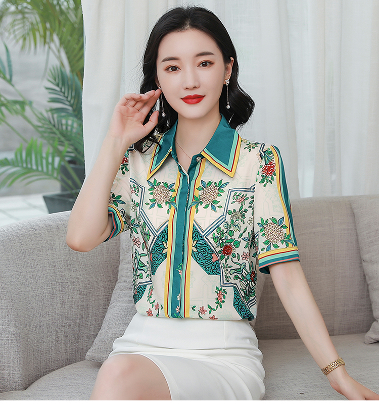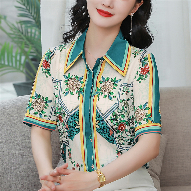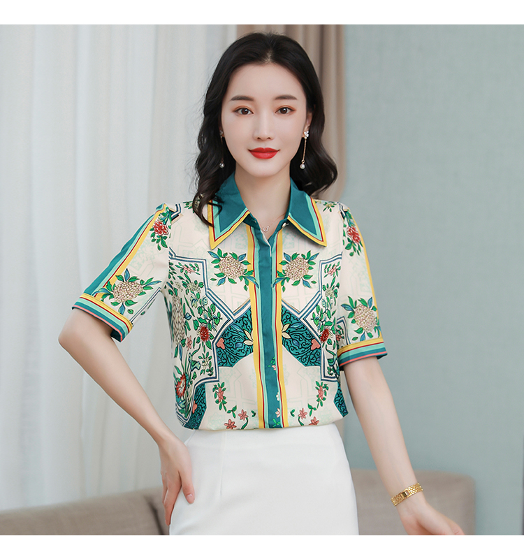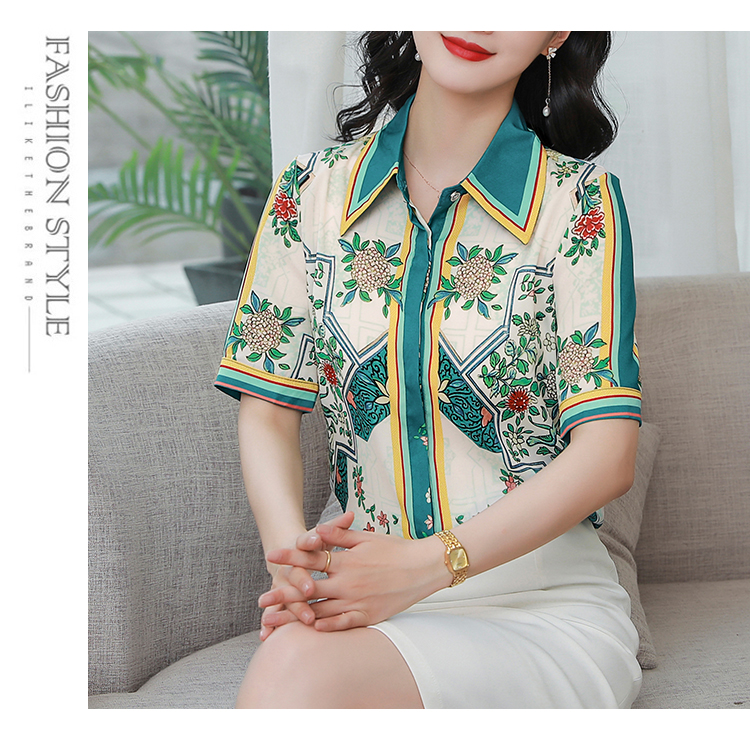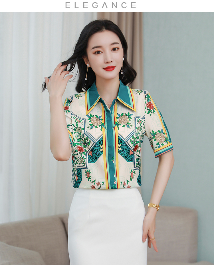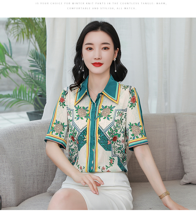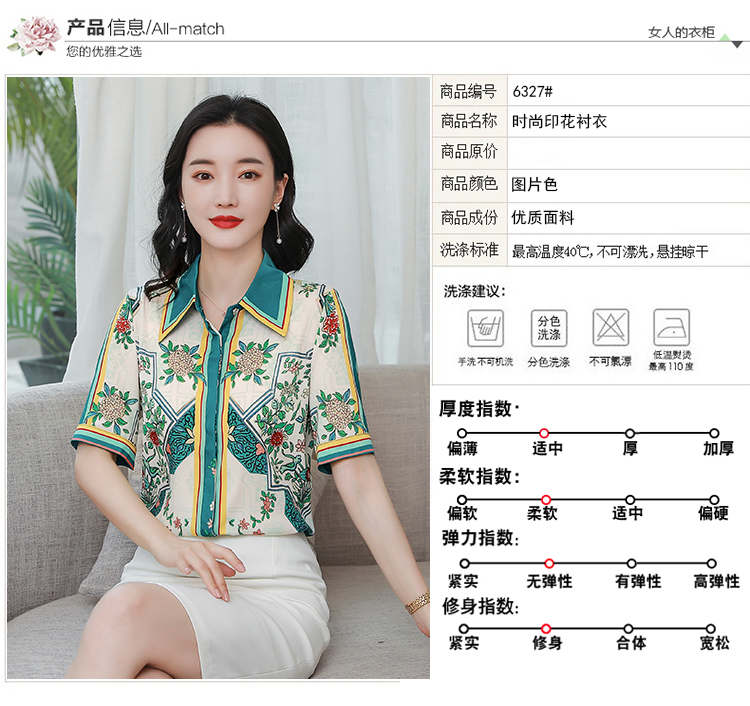 RY4312# 高端重磅真丝衬衫女长袖2026夏季新款时尚宽松缎面印花桑蚕丝上衣