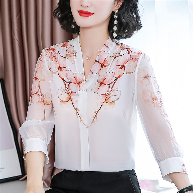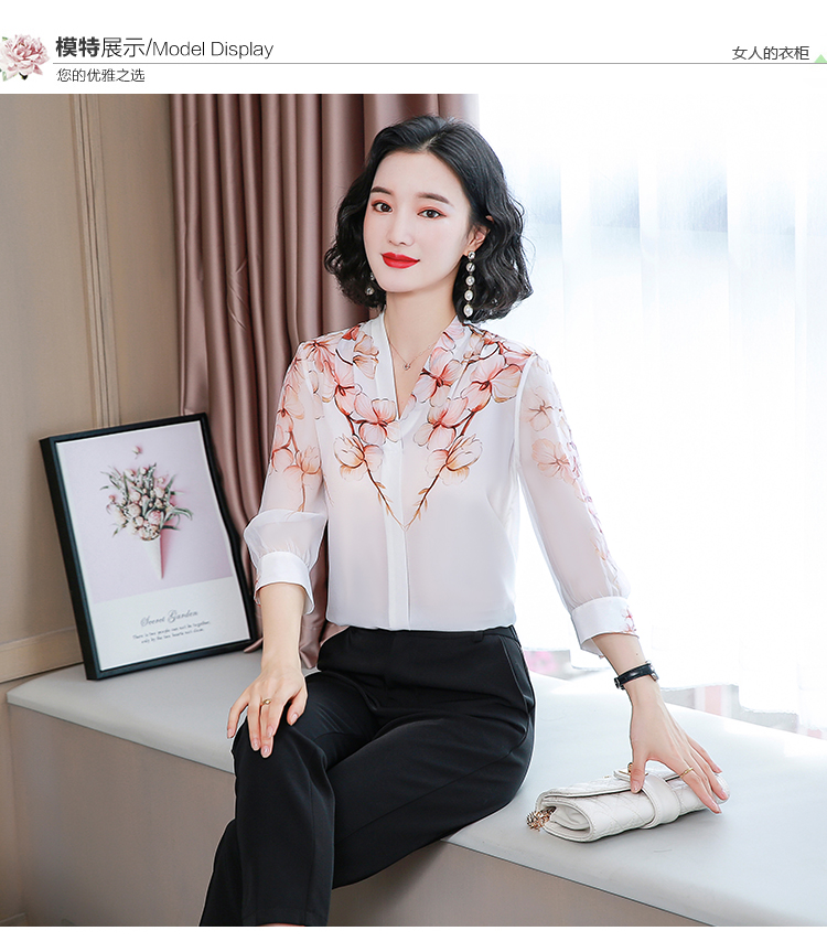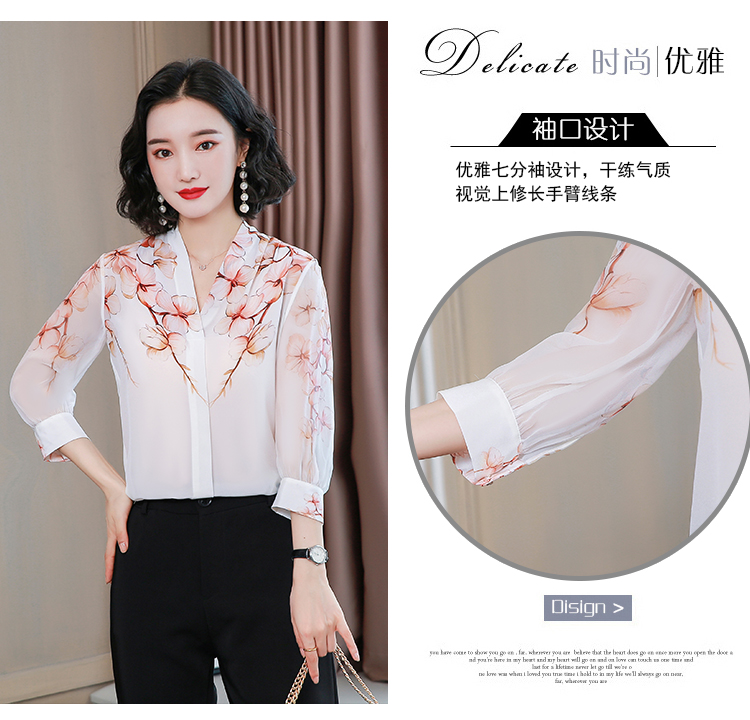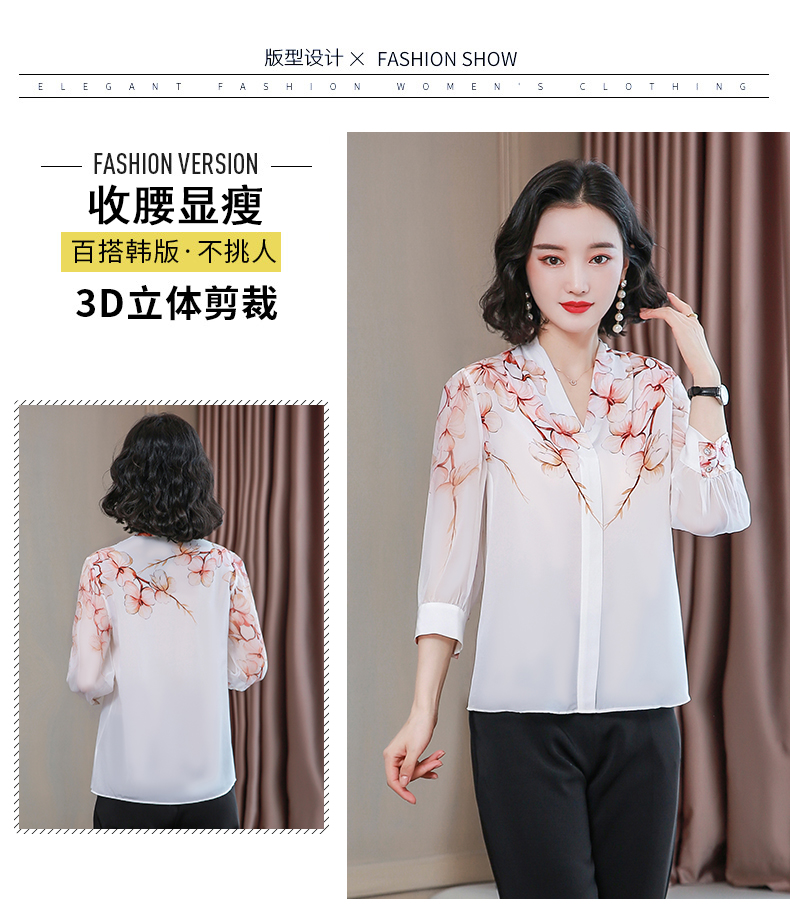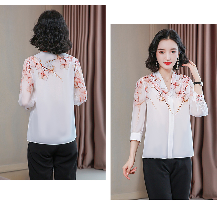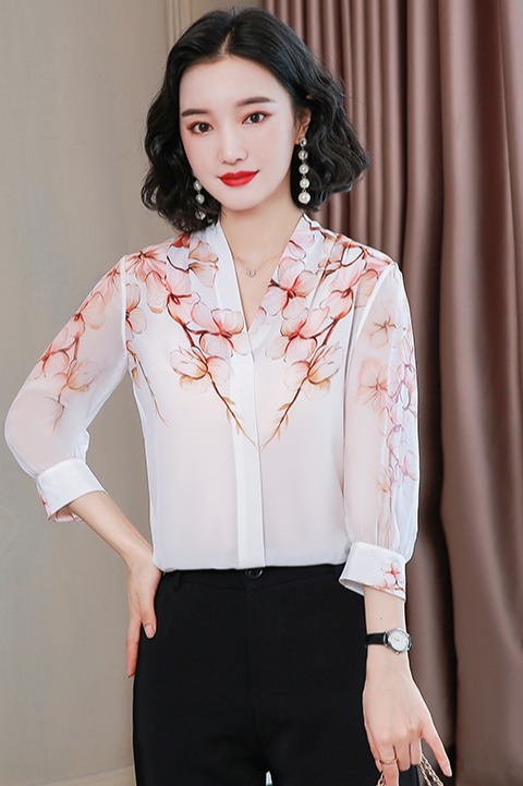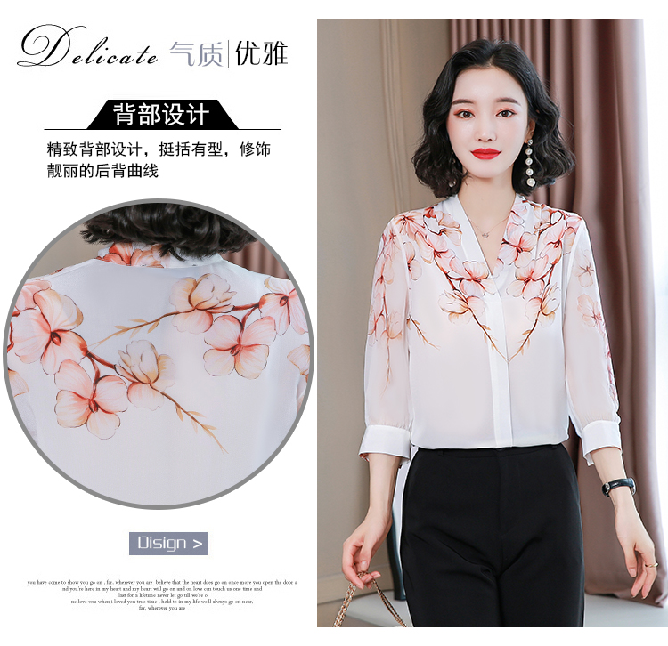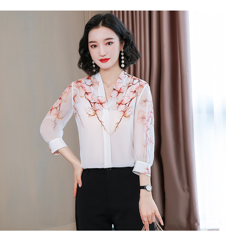 RY4313# 白色短袖真丝衬衫女2026年新款气质v领休闲宽松印花桑蚕丝上衣女