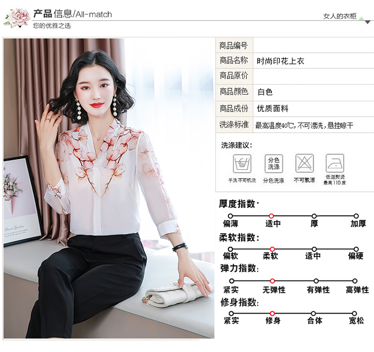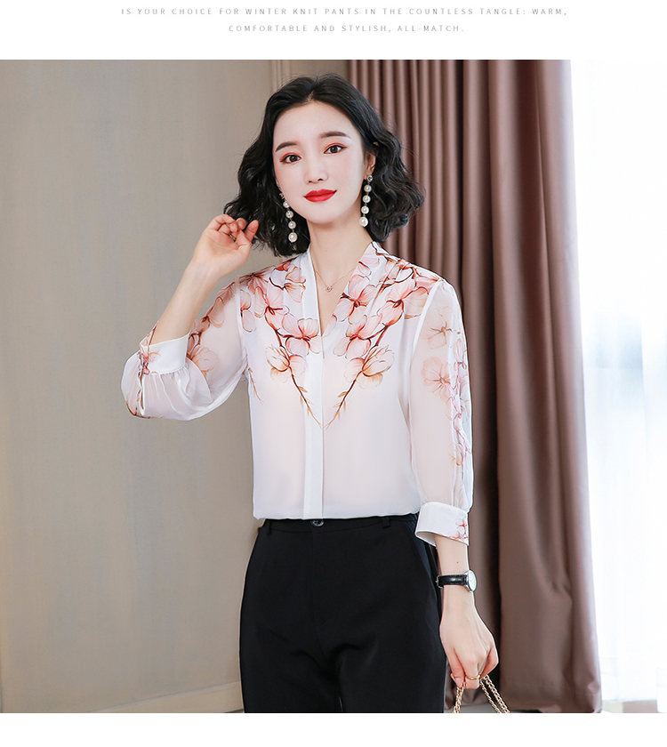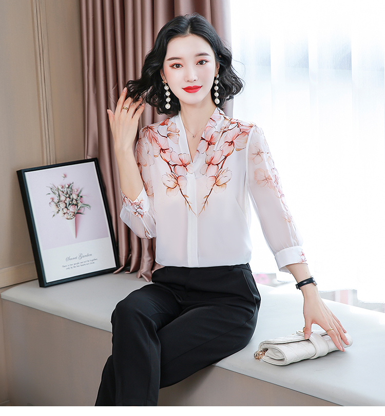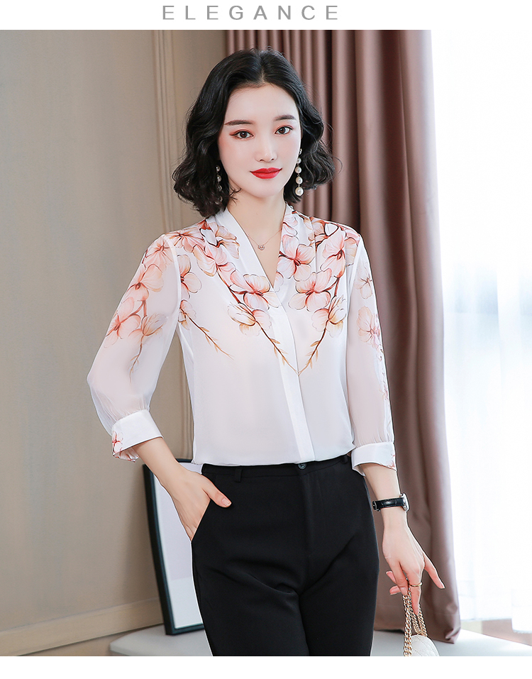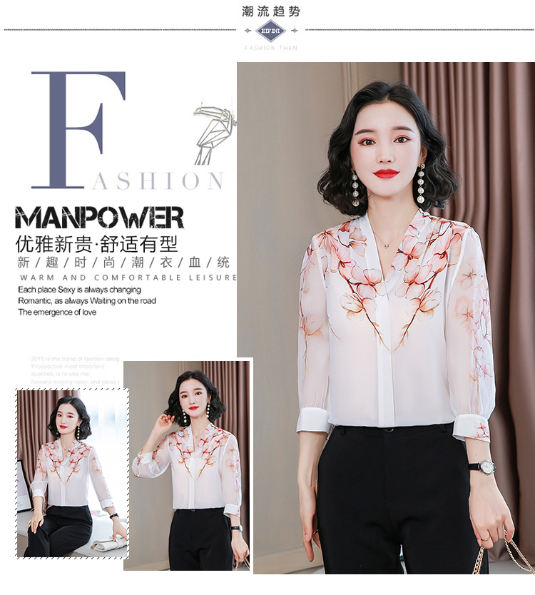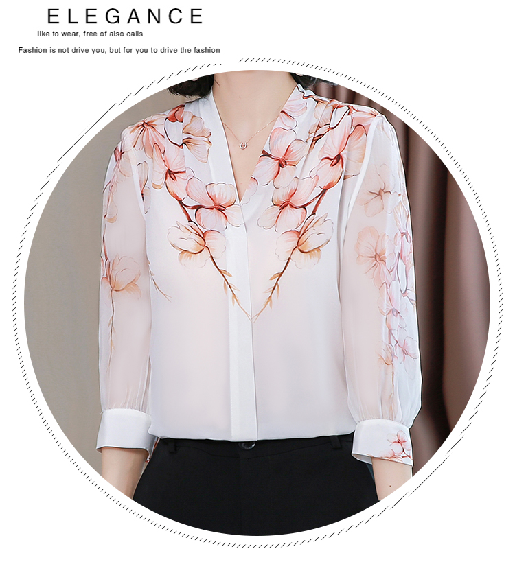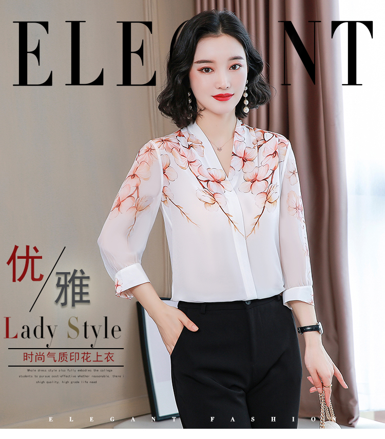 RY4313# 白色短袖真丝衬衫女2026年新款气质v领休闲宽松印花桑蚕丝上衣女