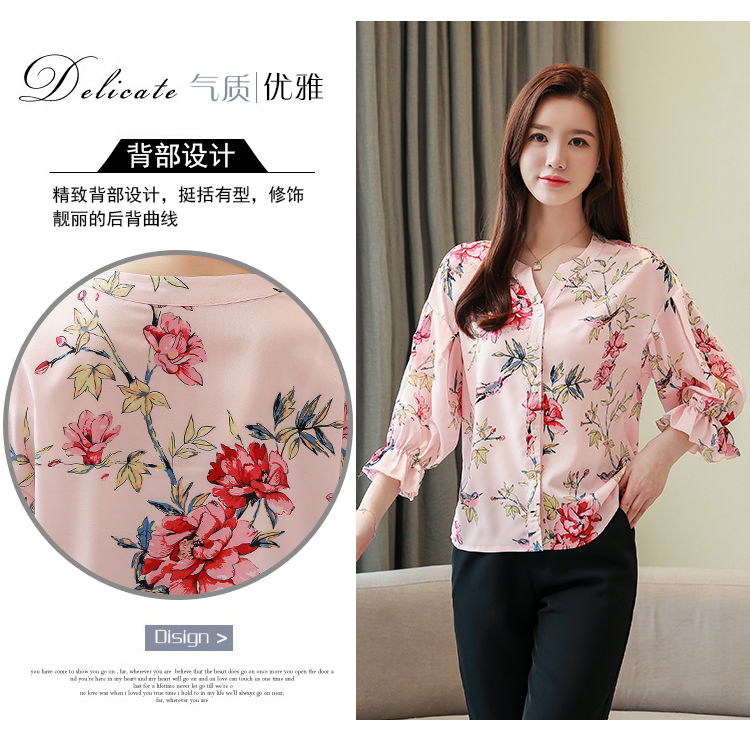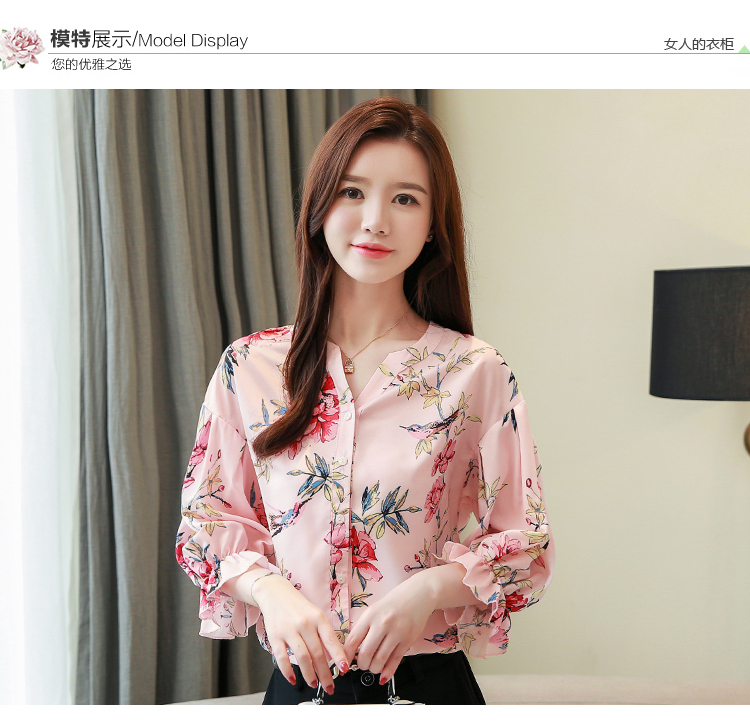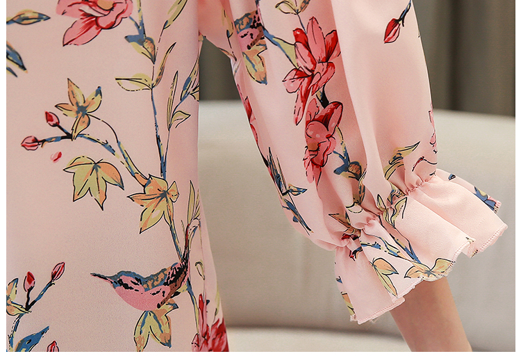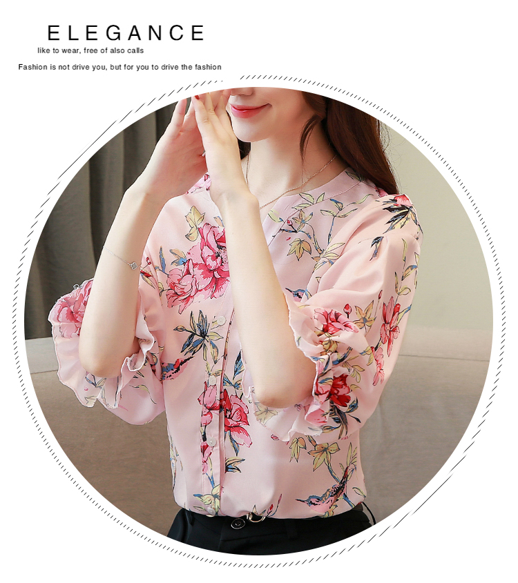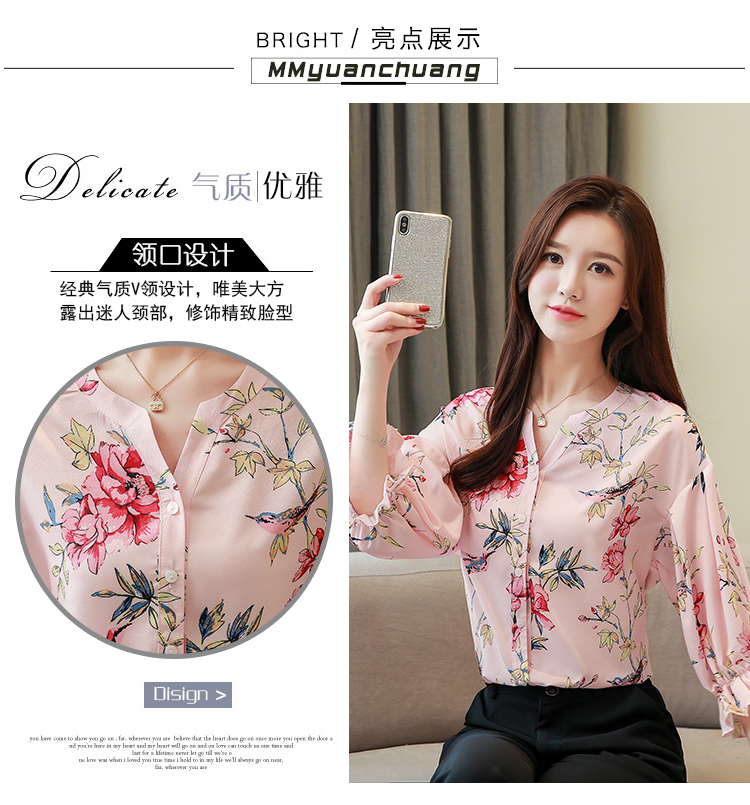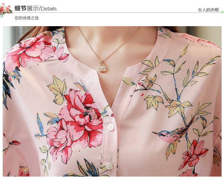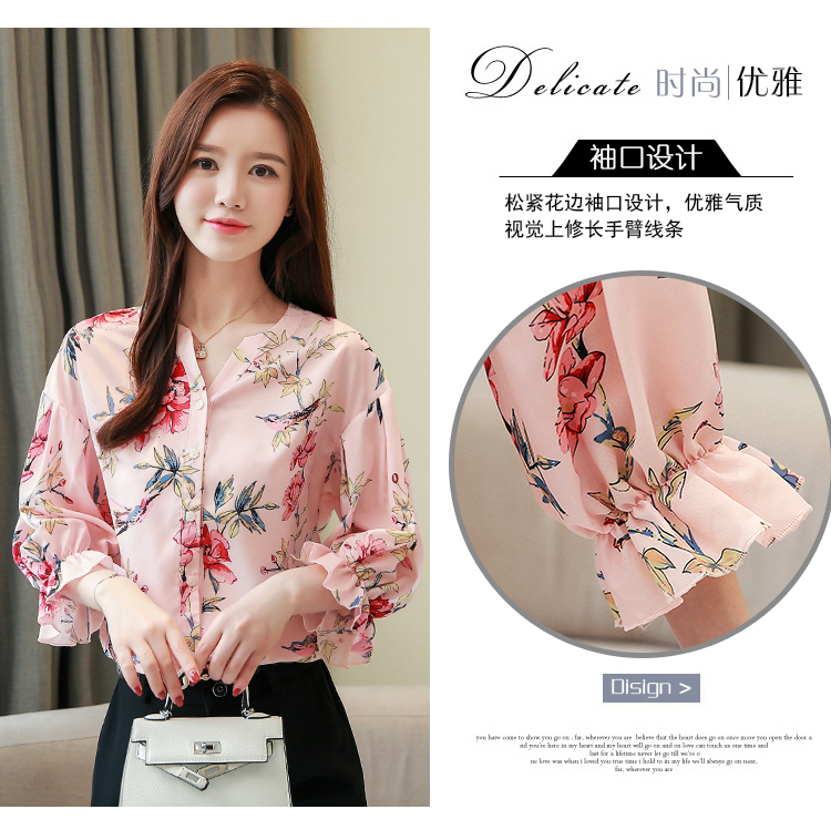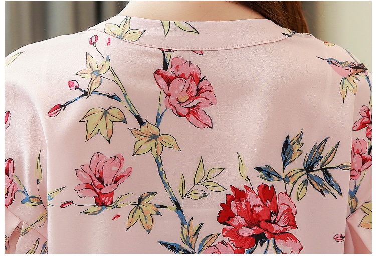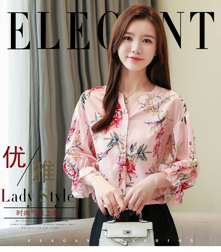 RY4314# 甜美印花真丝雪纺衬衫女2026夏新款灯笼袖名媛气质桑蚕丝上衣夏天