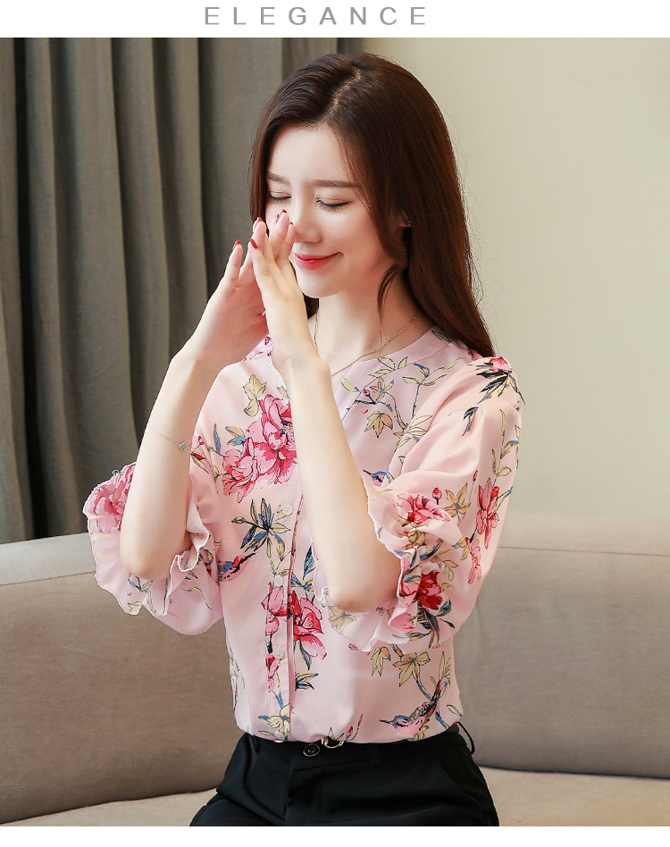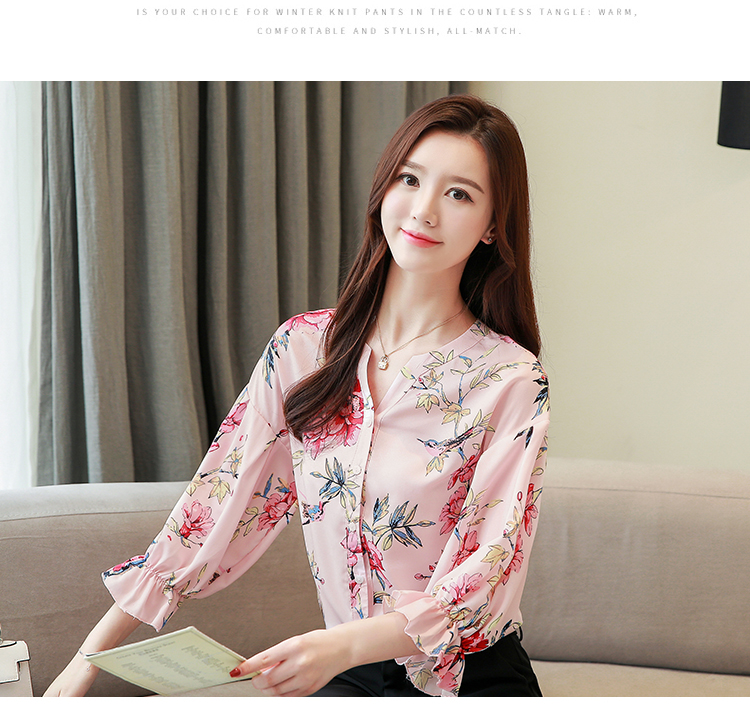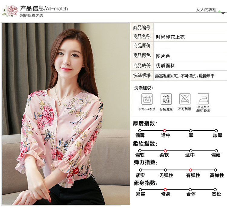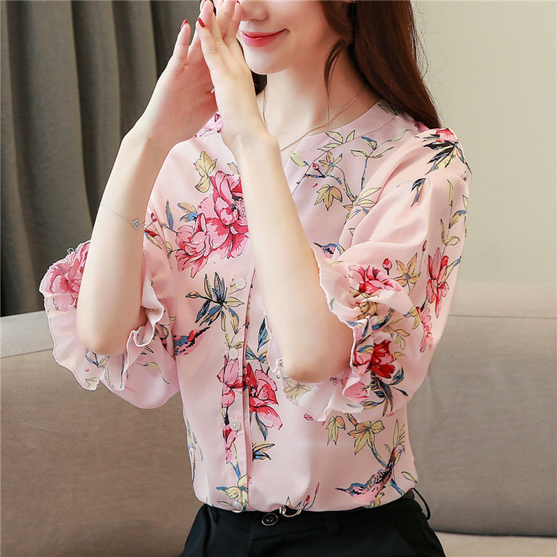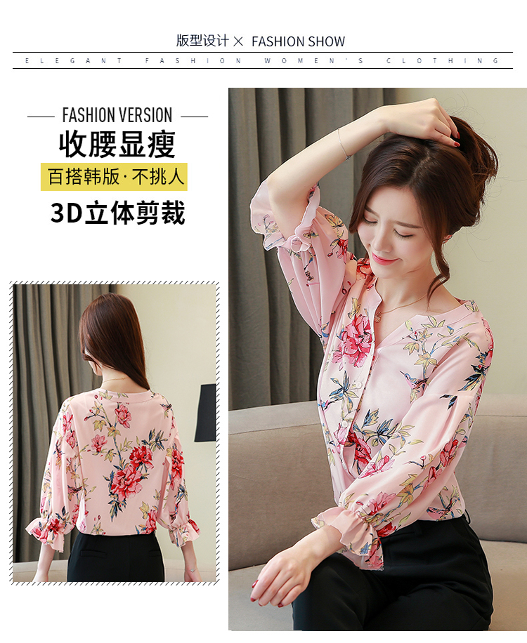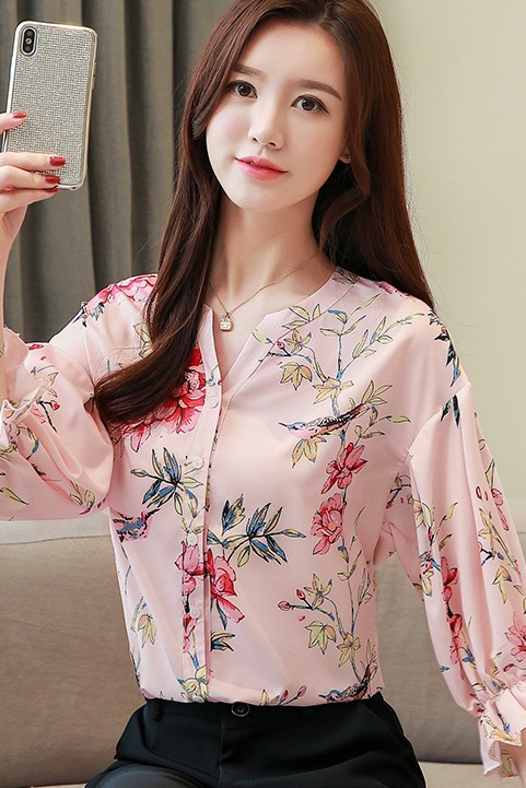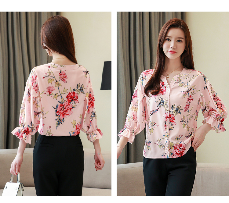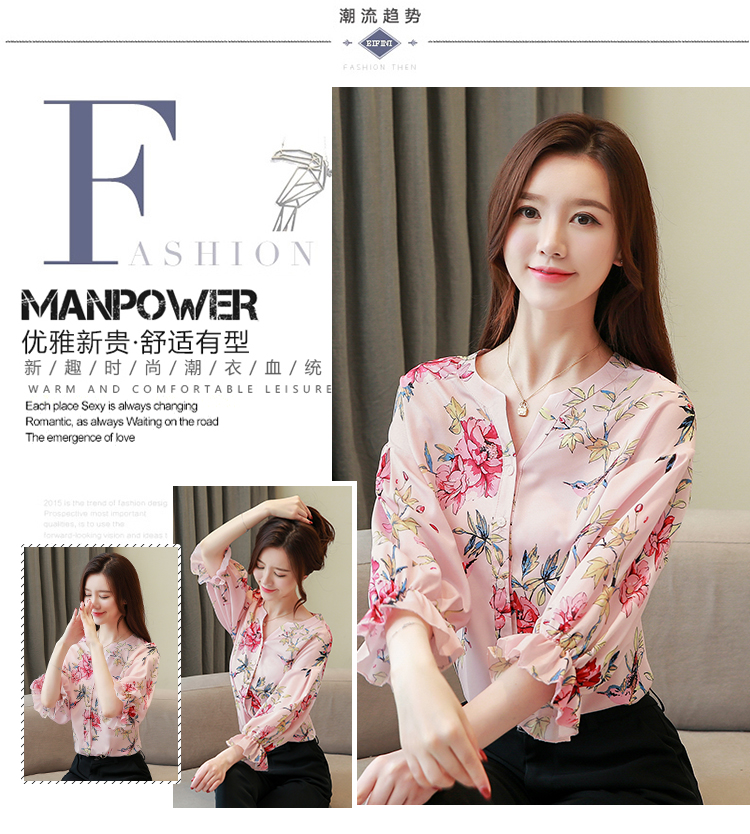 RY4314# 甜美印花真丝雪纺衬衫女2026夏新款灯笼袖名媛气质桑蚕丝上衣夏天