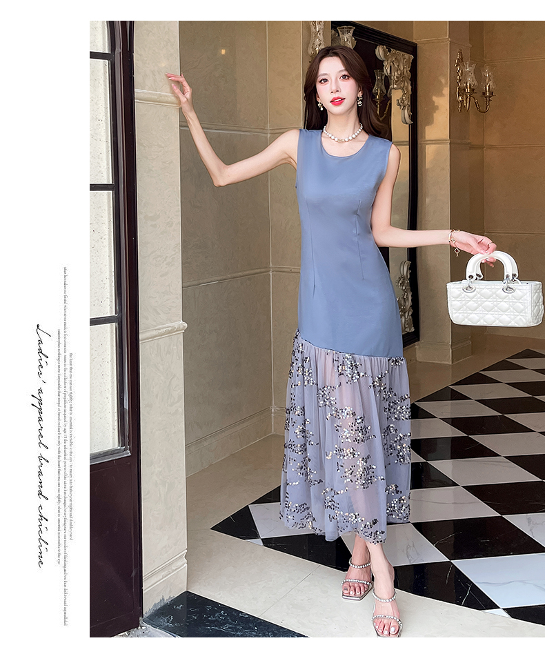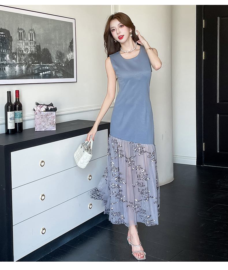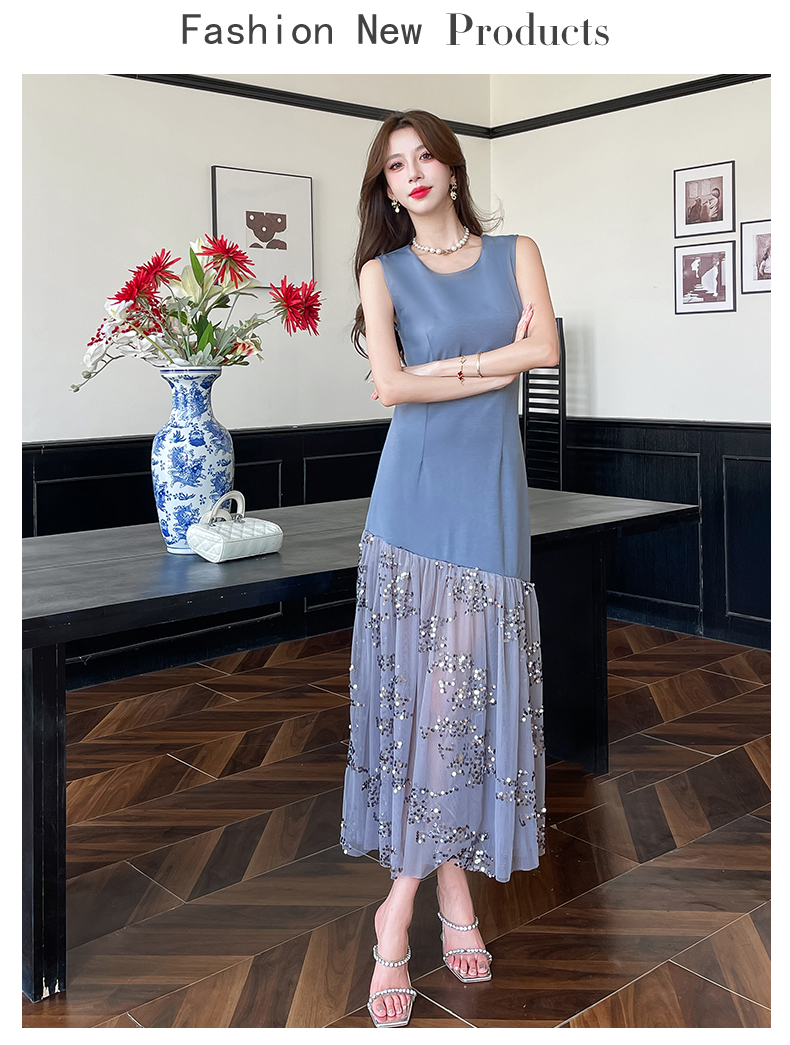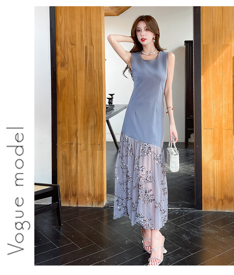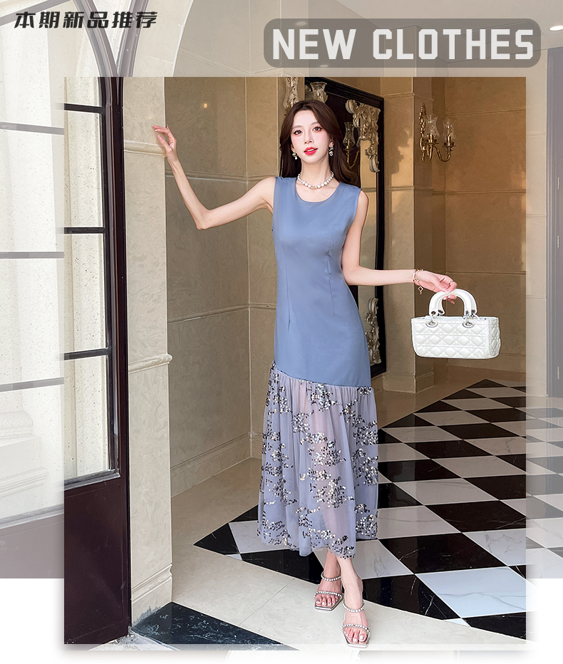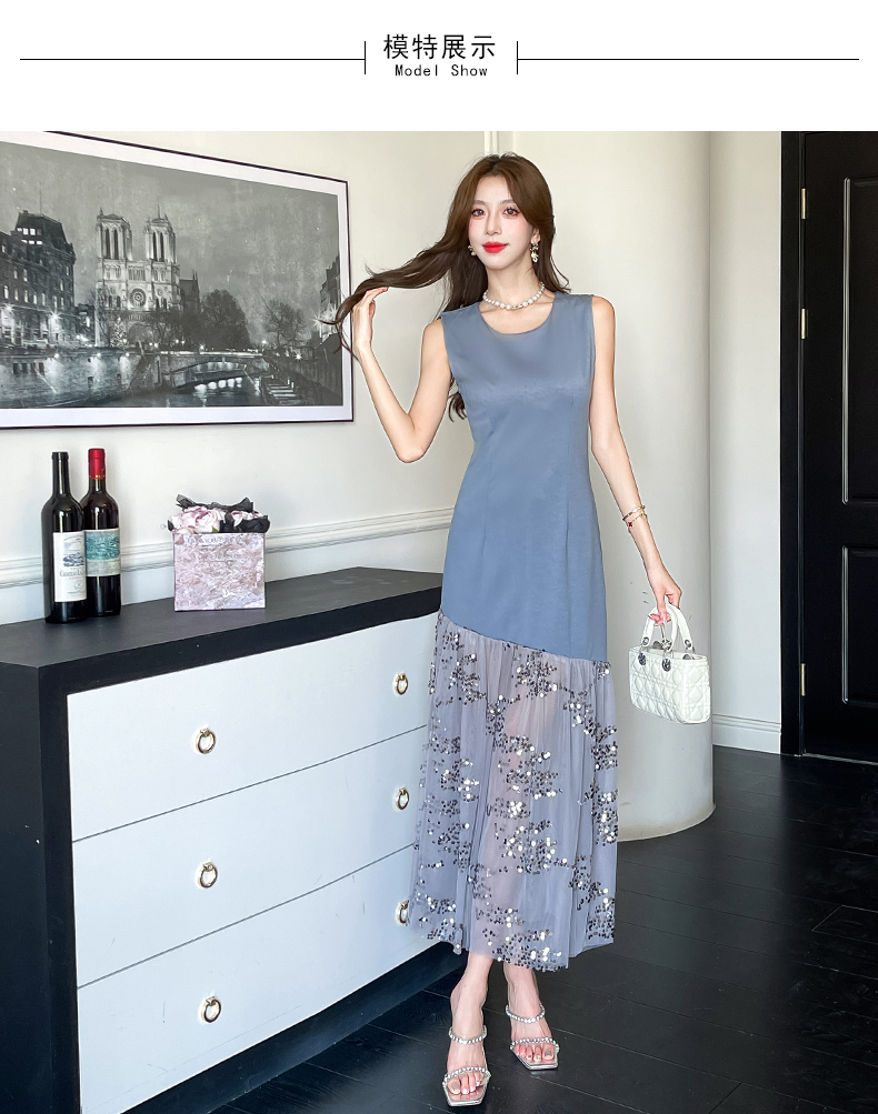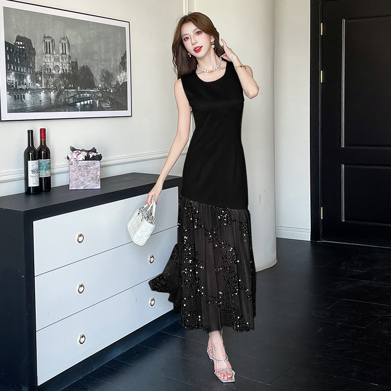 RY4324# 视频实拍2026夏季新款时尚韩版亮片拼接性感镂空长裙连衣裙
