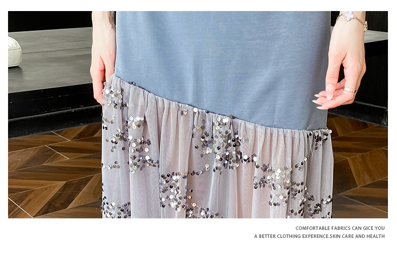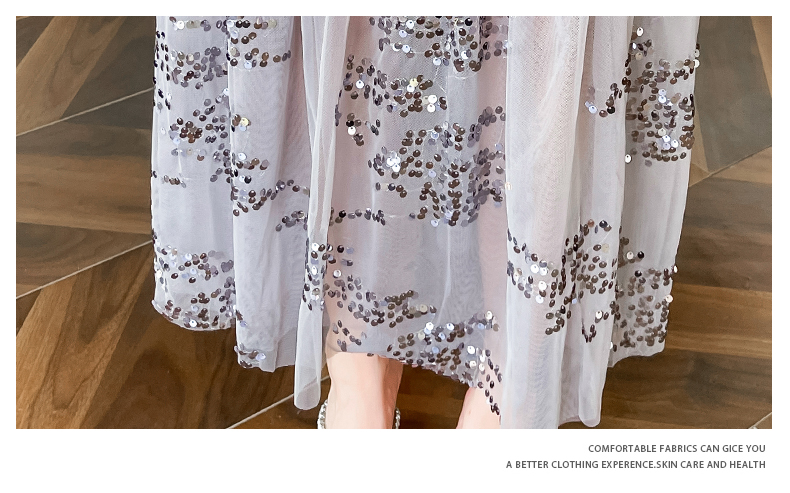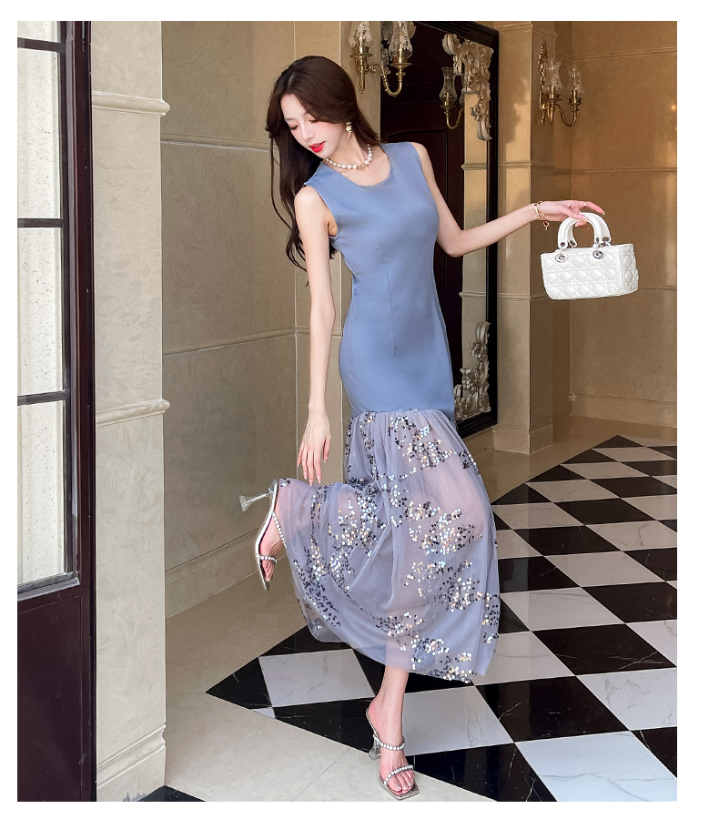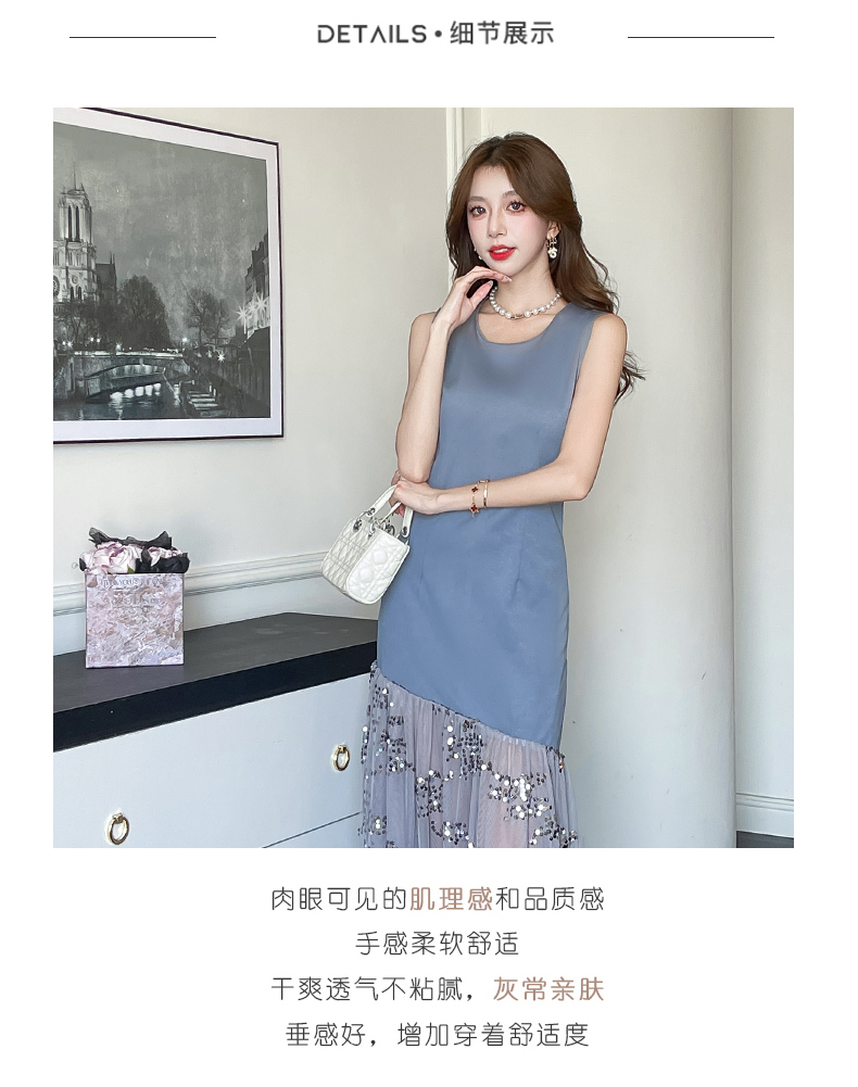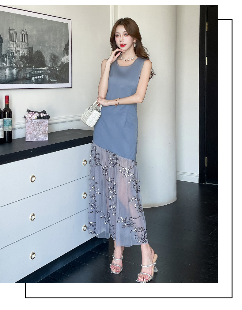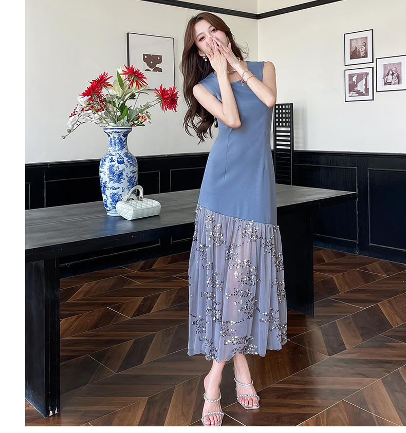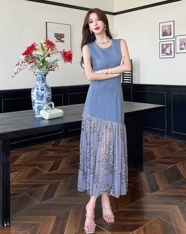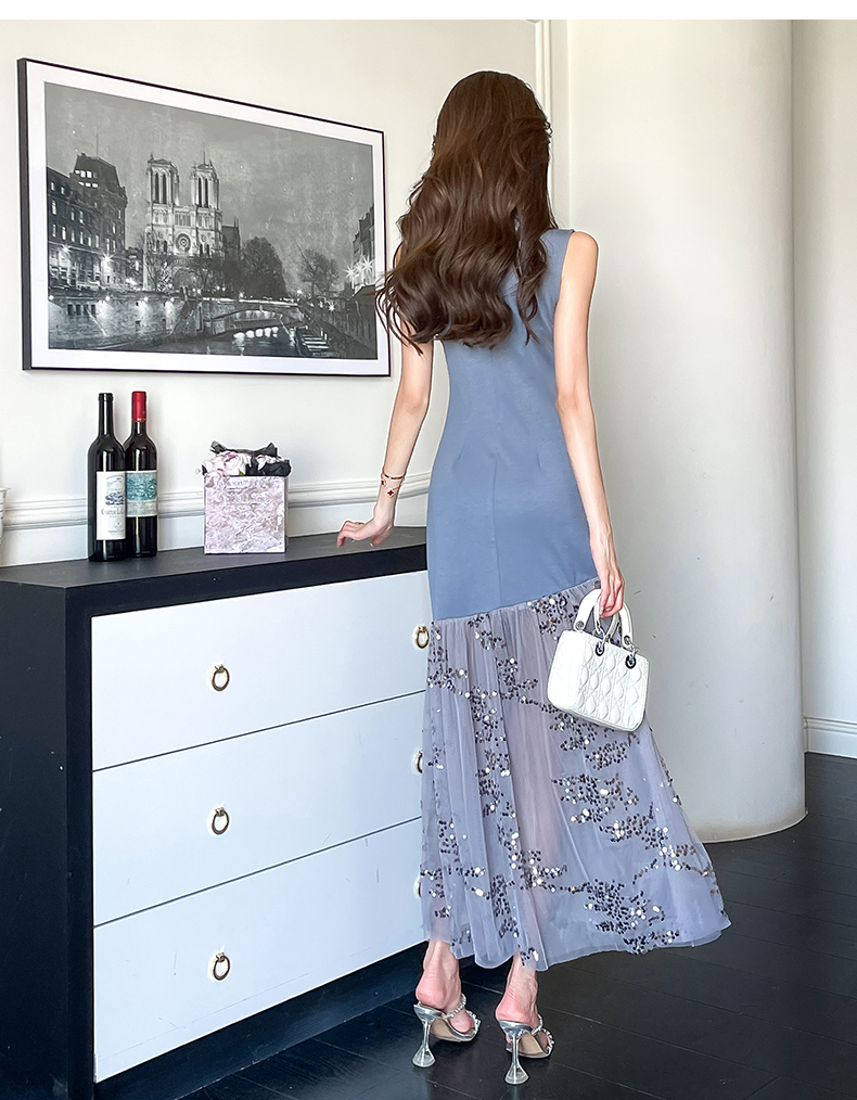 RY4324# 视频实拍2026夏季新款时尚韩版亮片拼接性感镂空长裙连衣裙