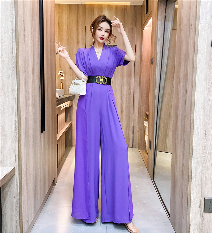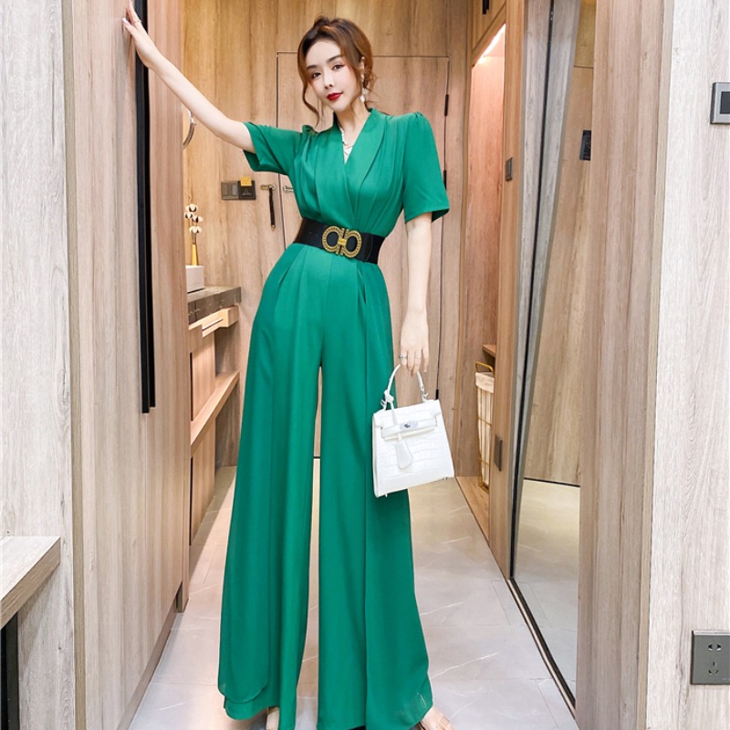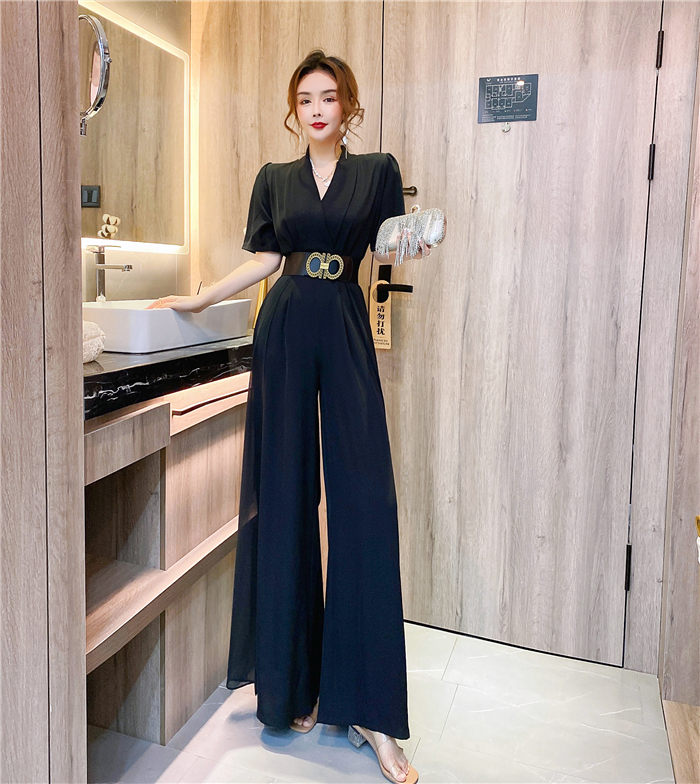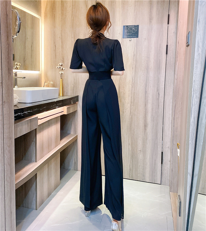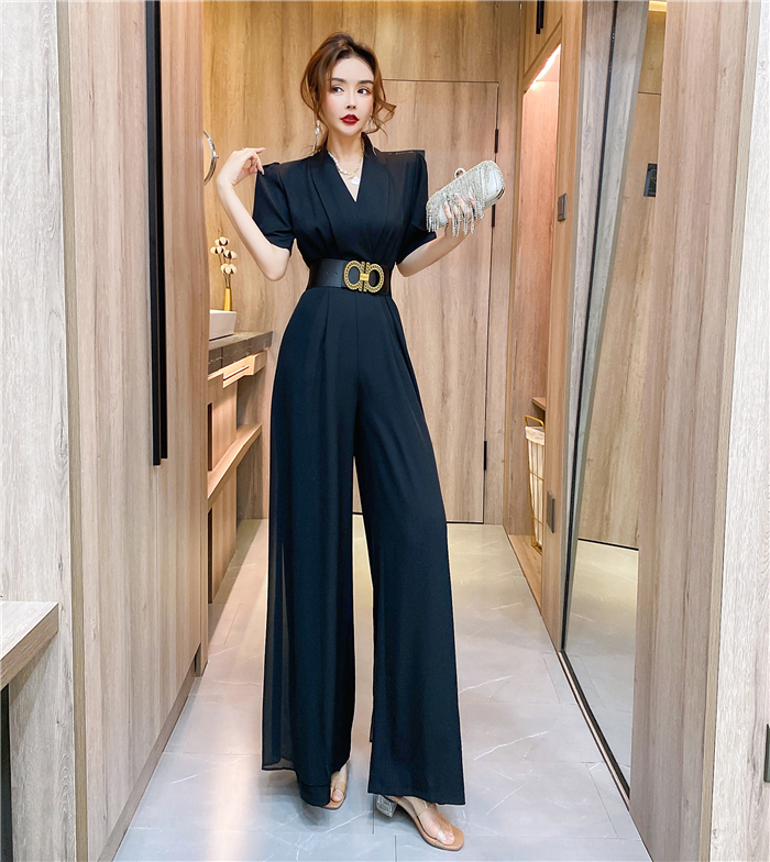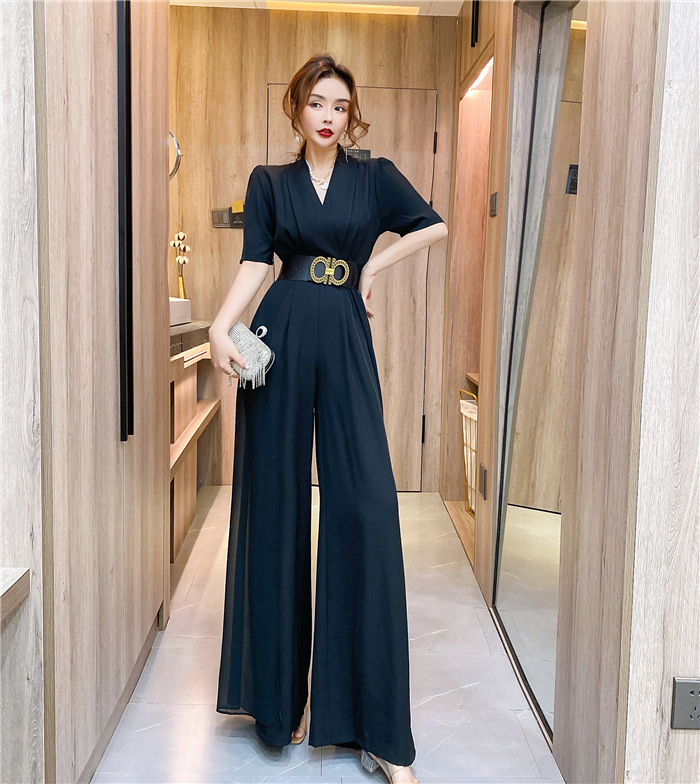 RY4331# 实拍2026夏季新款网红炸街气质洋气v领阔腿收腰连体裤长裤