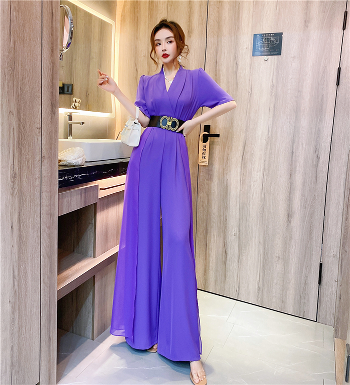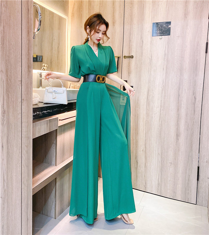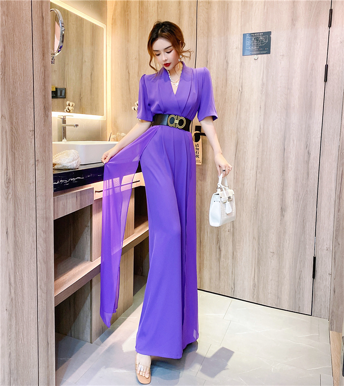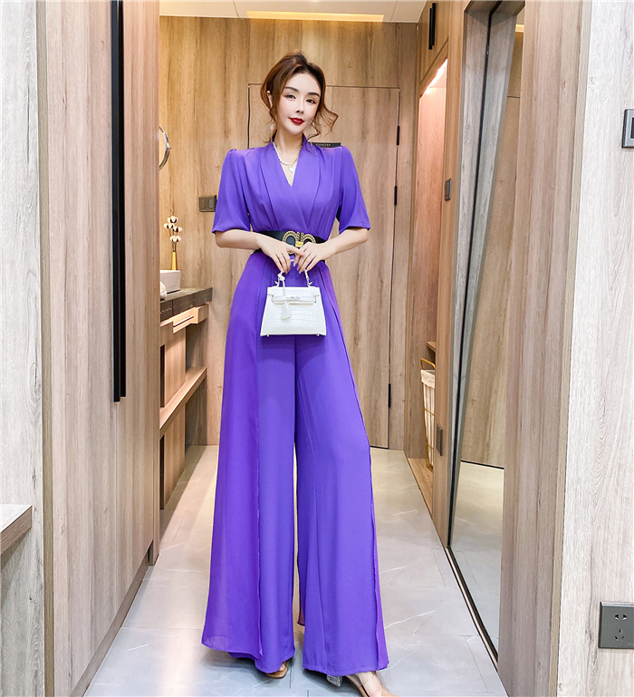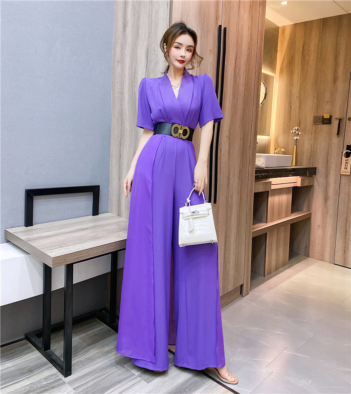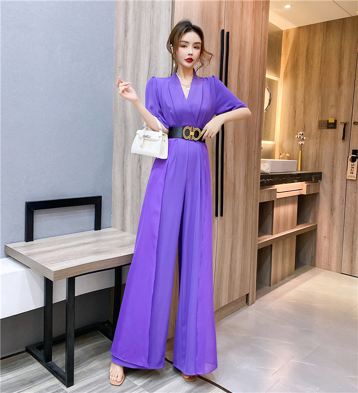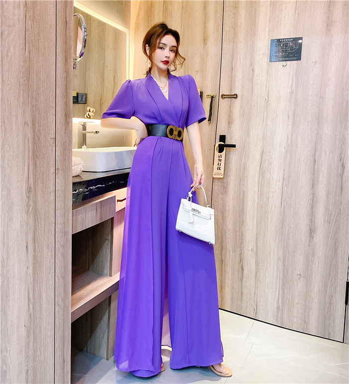 RY4331# 实拍2026夏季新款网红炸街气质洋气v领阔腿收腰连体裤长裤