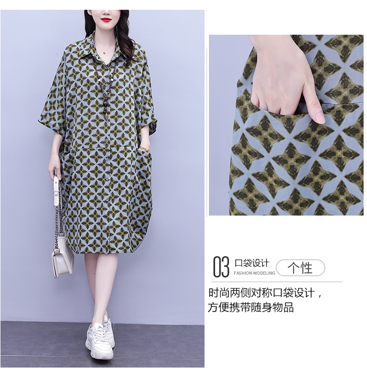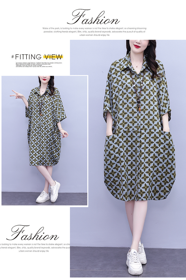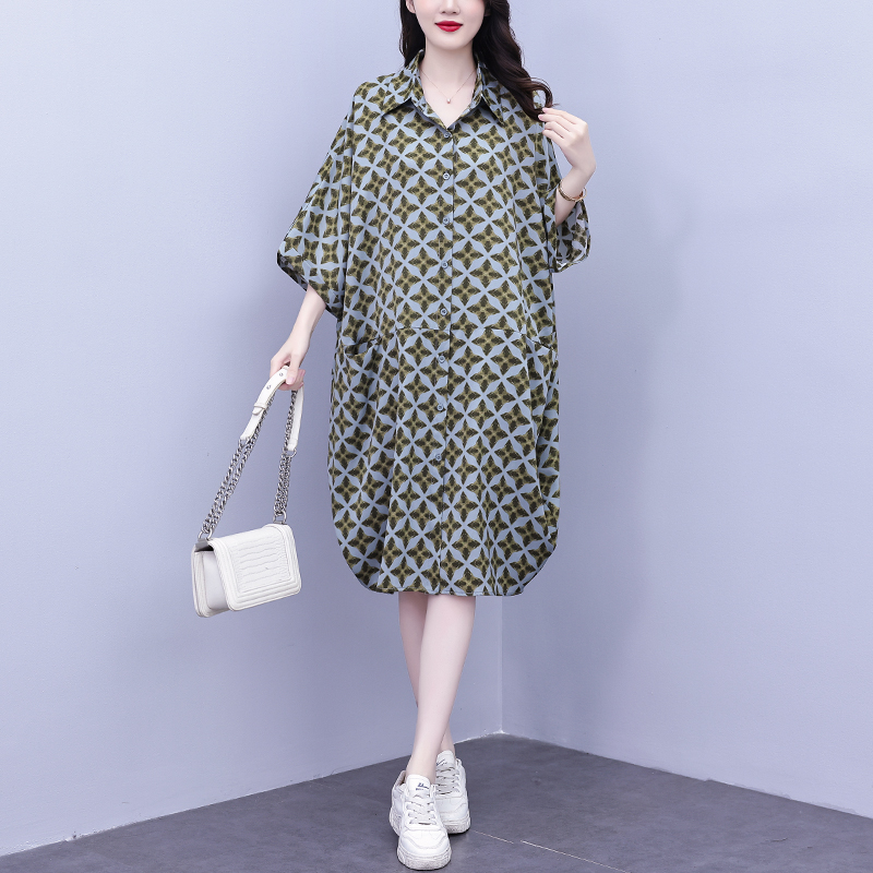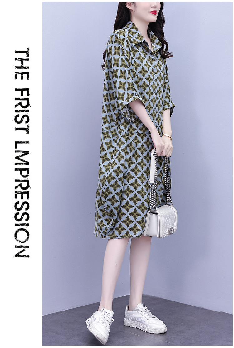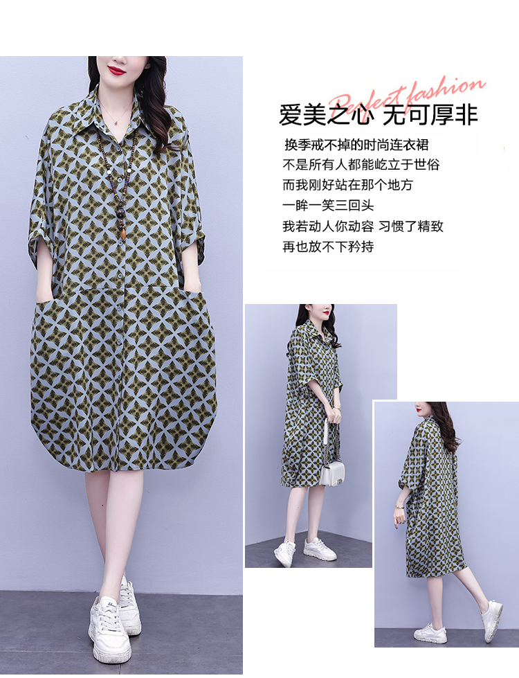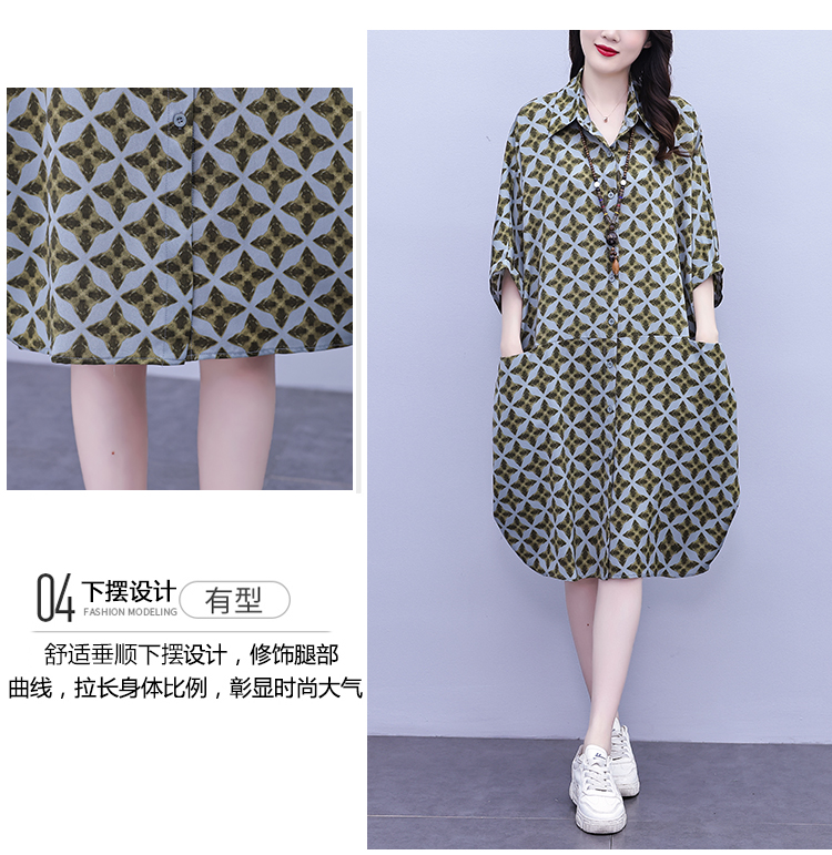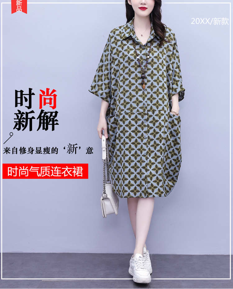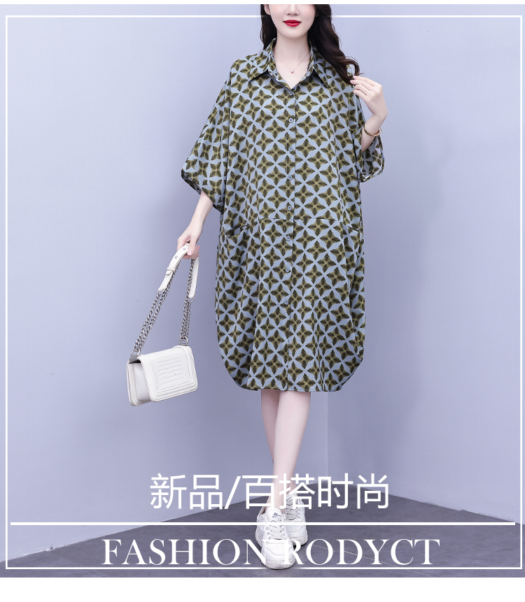 RY4351# 2026夏季新款韩版胖MM大码POLO领遮肉衬衫连衣裙中长款休闲宽松型