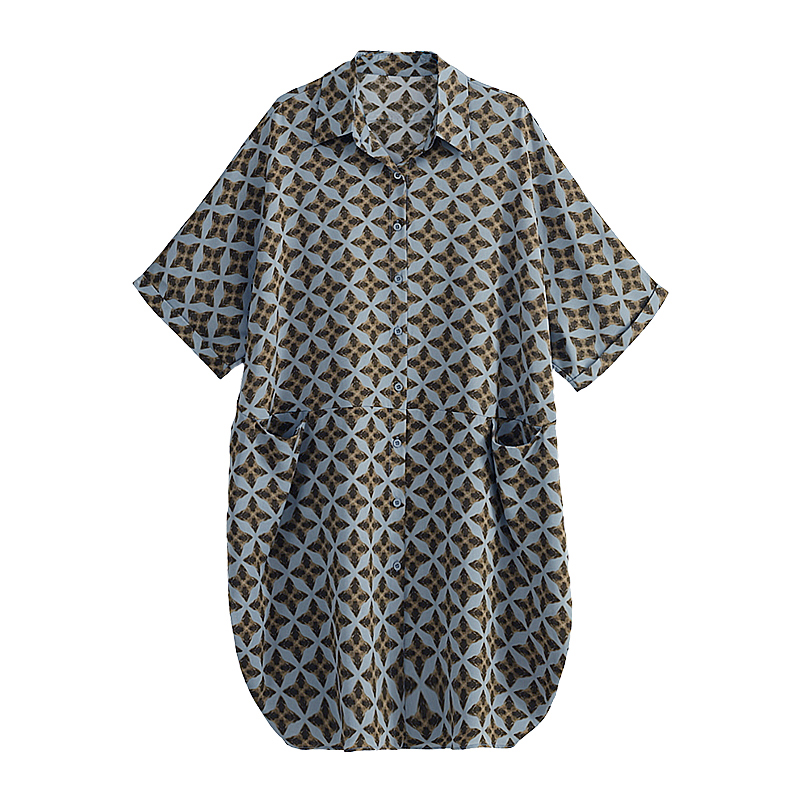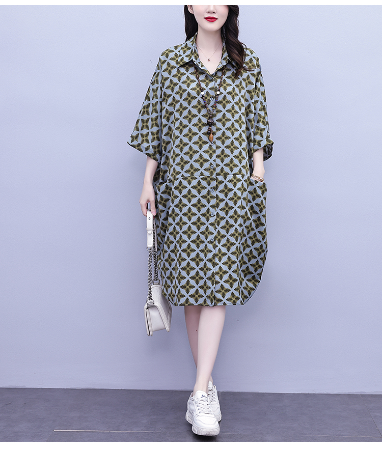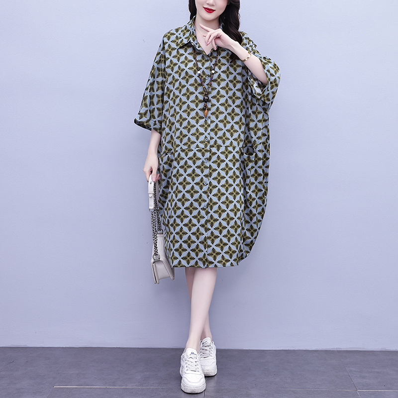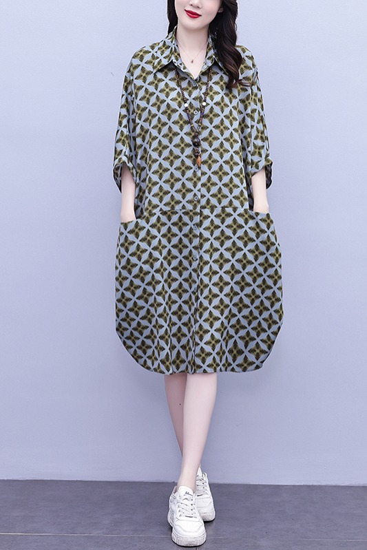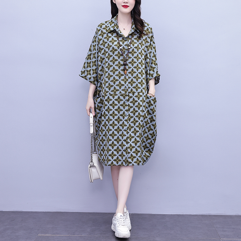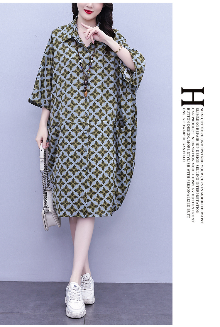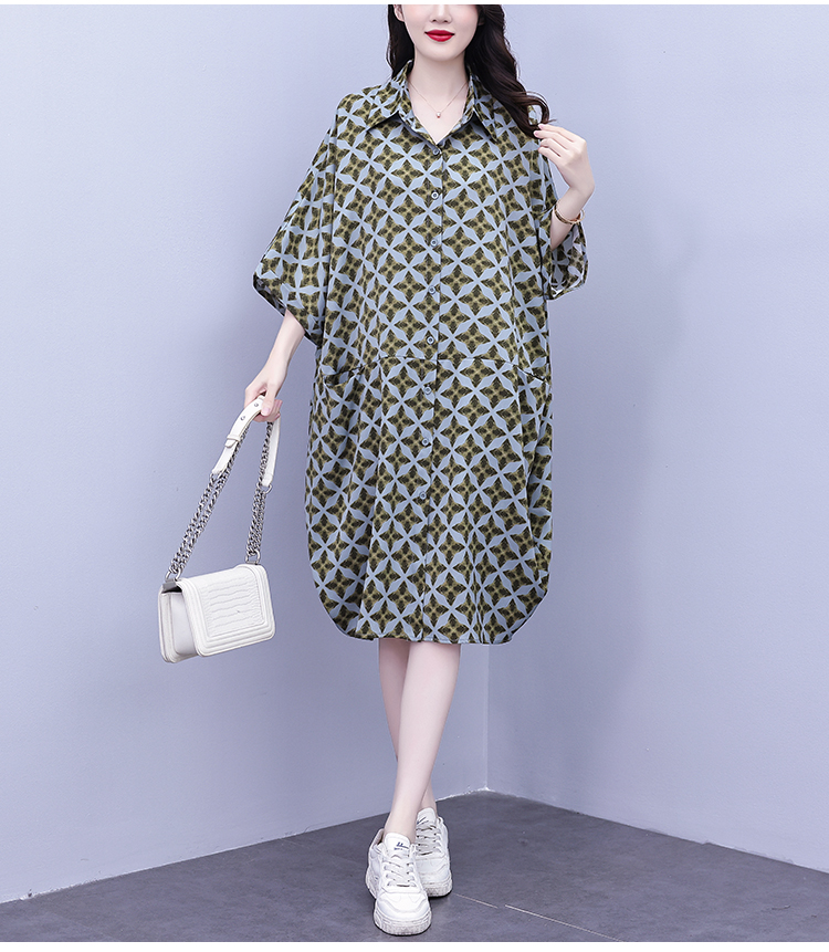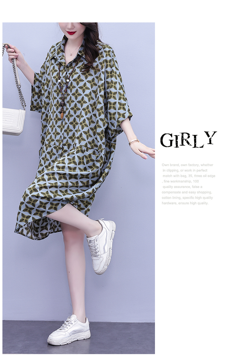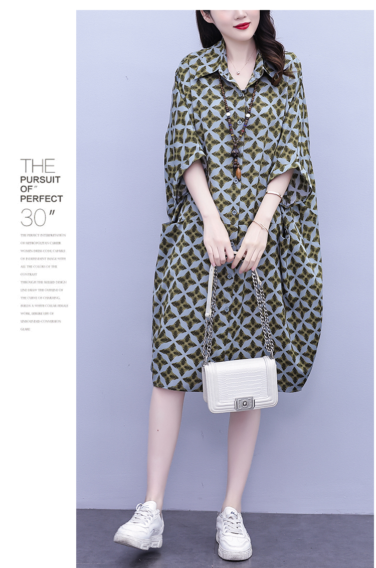 RY4351# 2026夏季新款韩版胖MM大码POLO领遮肉衬衫连衣裙中长款休闲宽松型