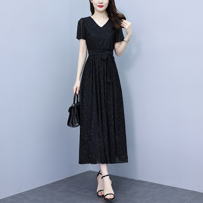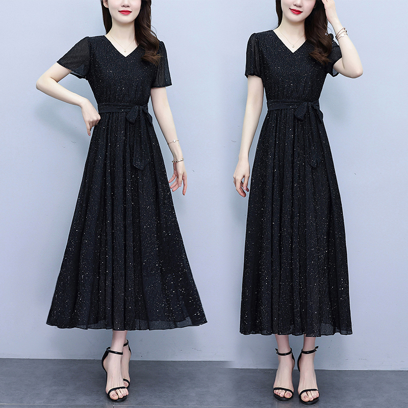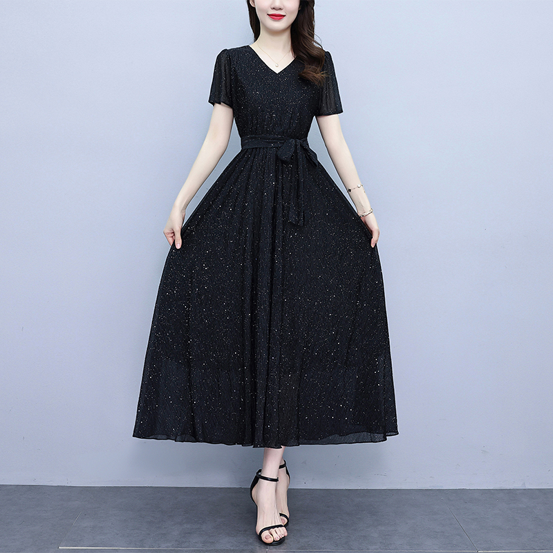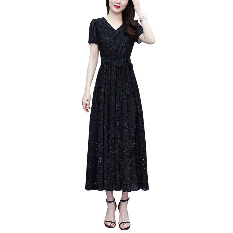 MY14222#夏季新款亮片工艺雪纺连衣裙长裙