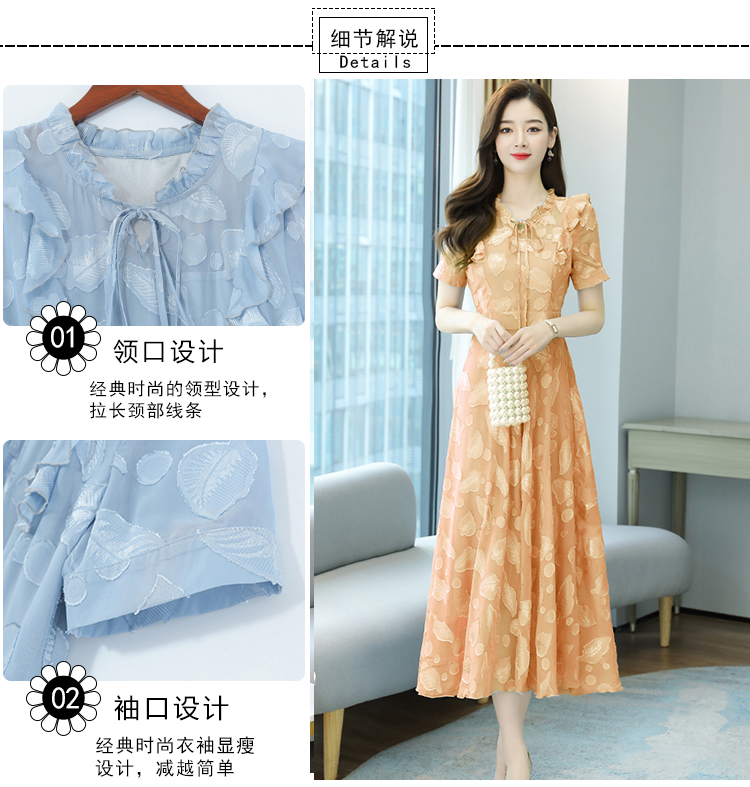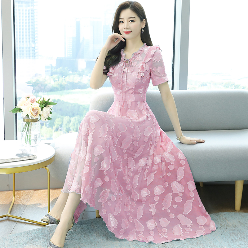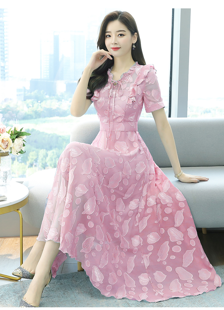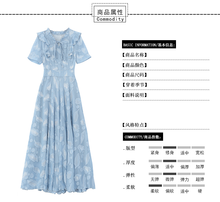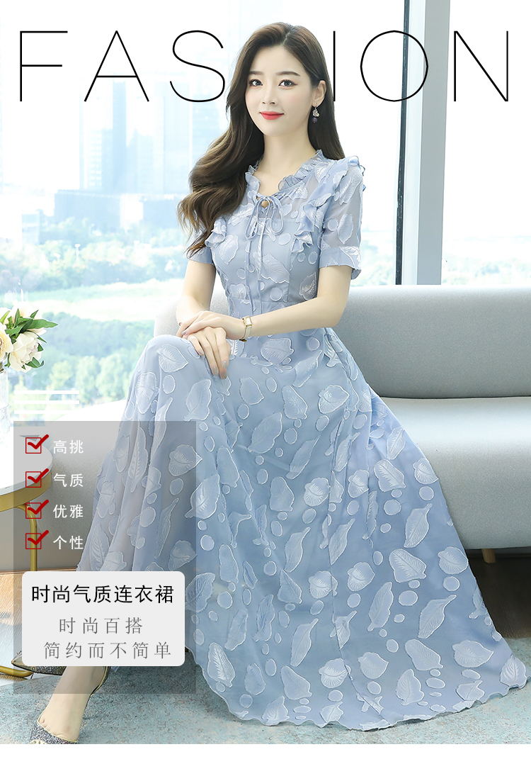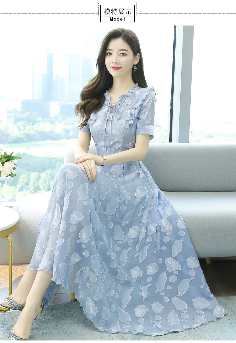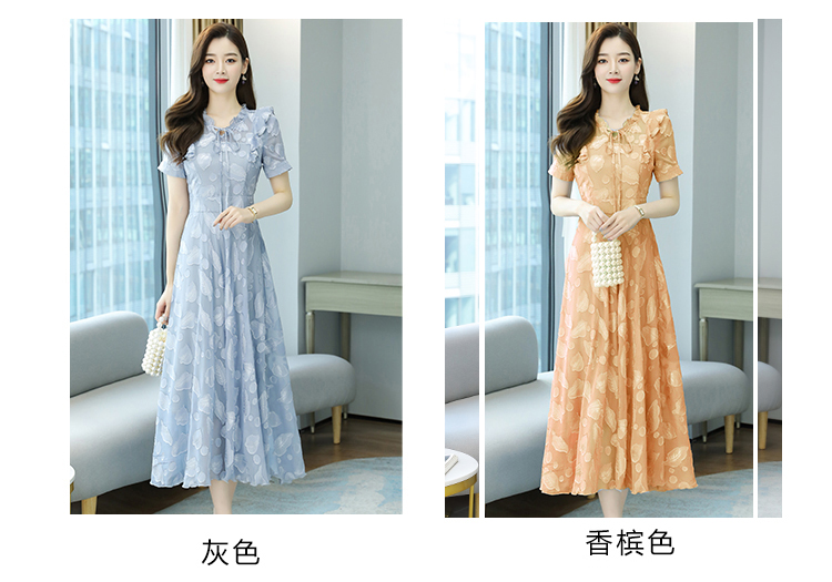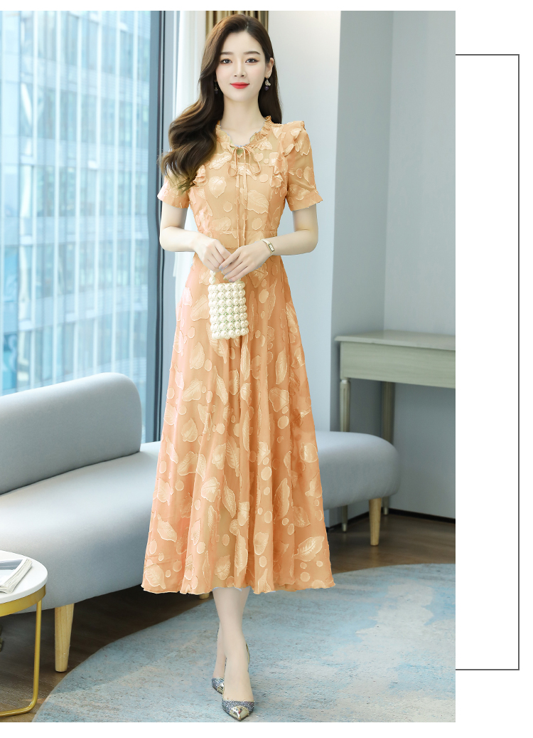 RY2243#雪纺连衣裙2026新款夏流行裙子长款提花花收腰大摆裙女