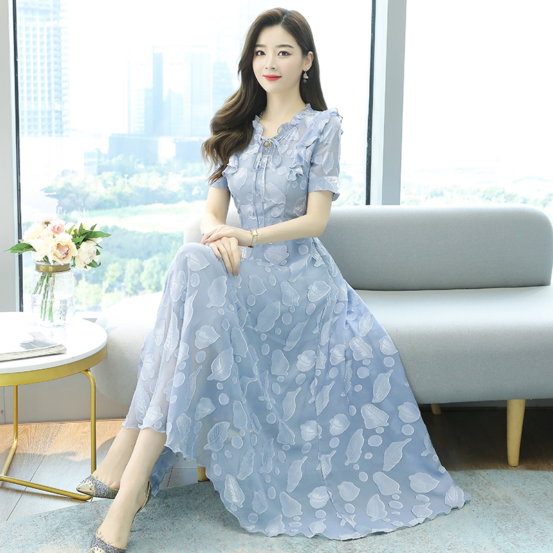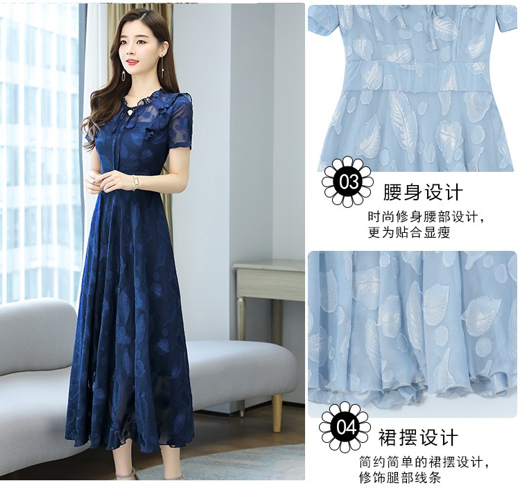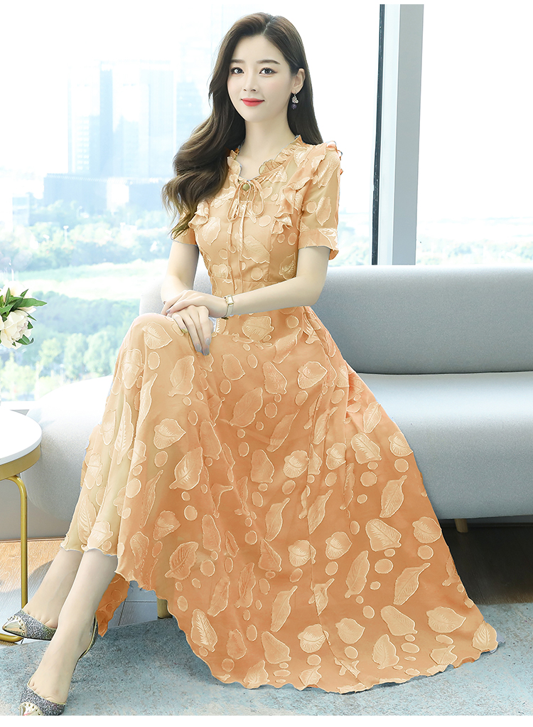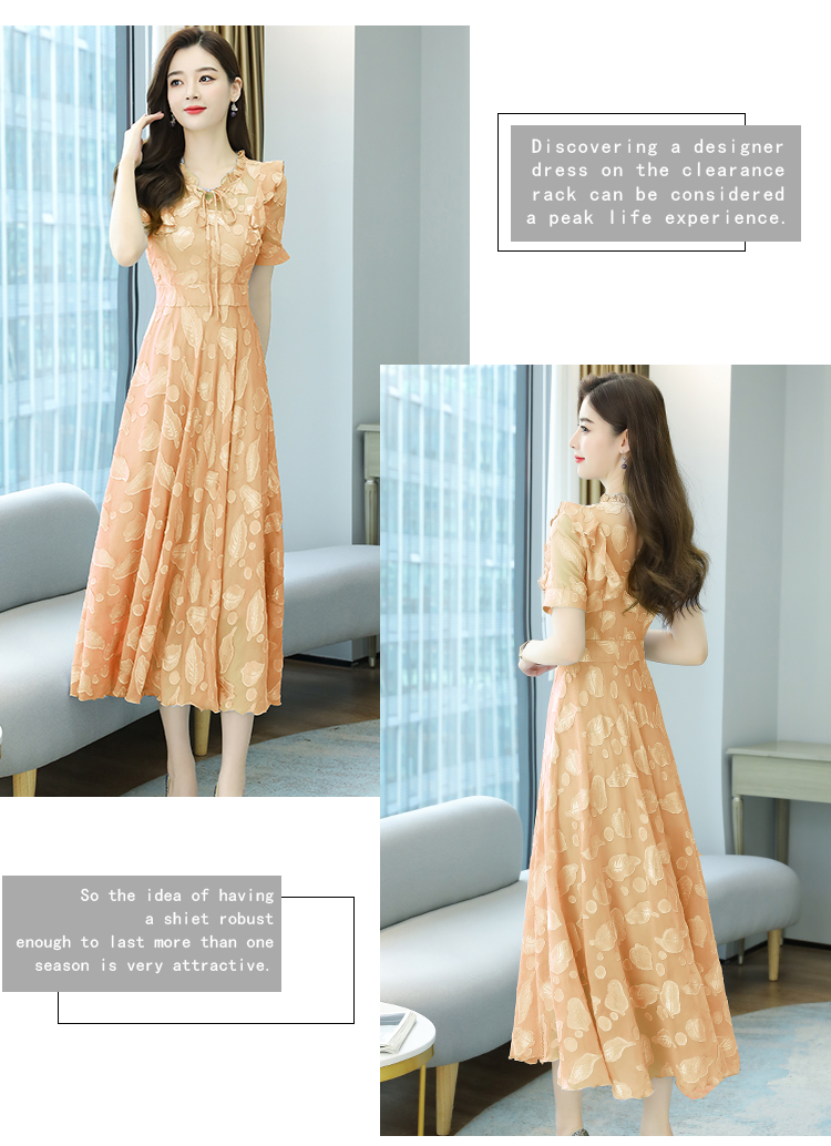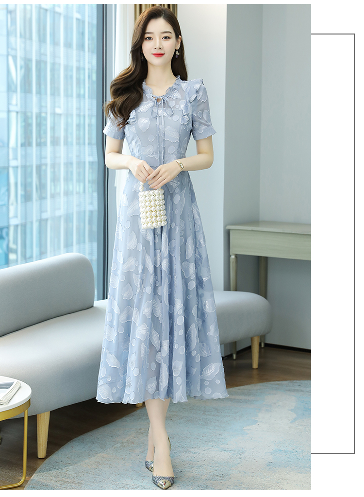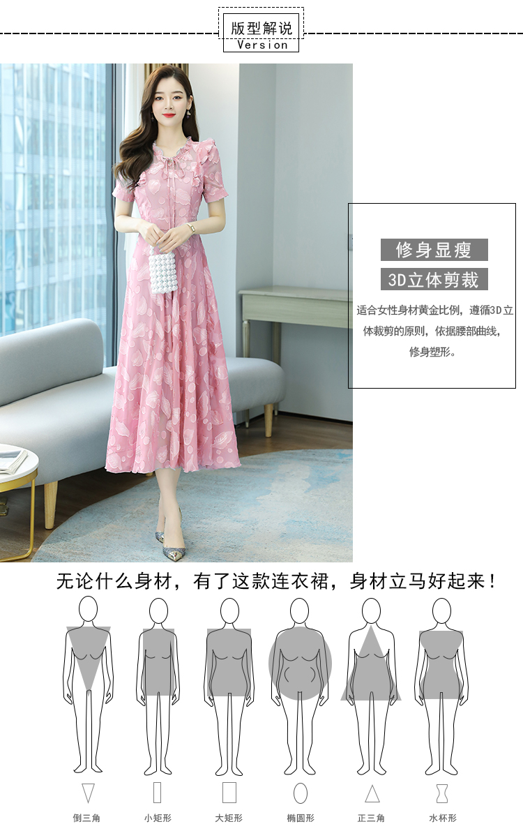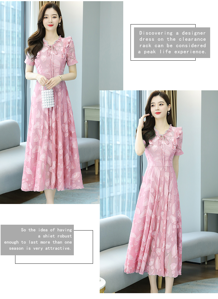 RY2243#雪纺连衣裙2026新款夏流行裙子长款提花花收腰大摆裙女