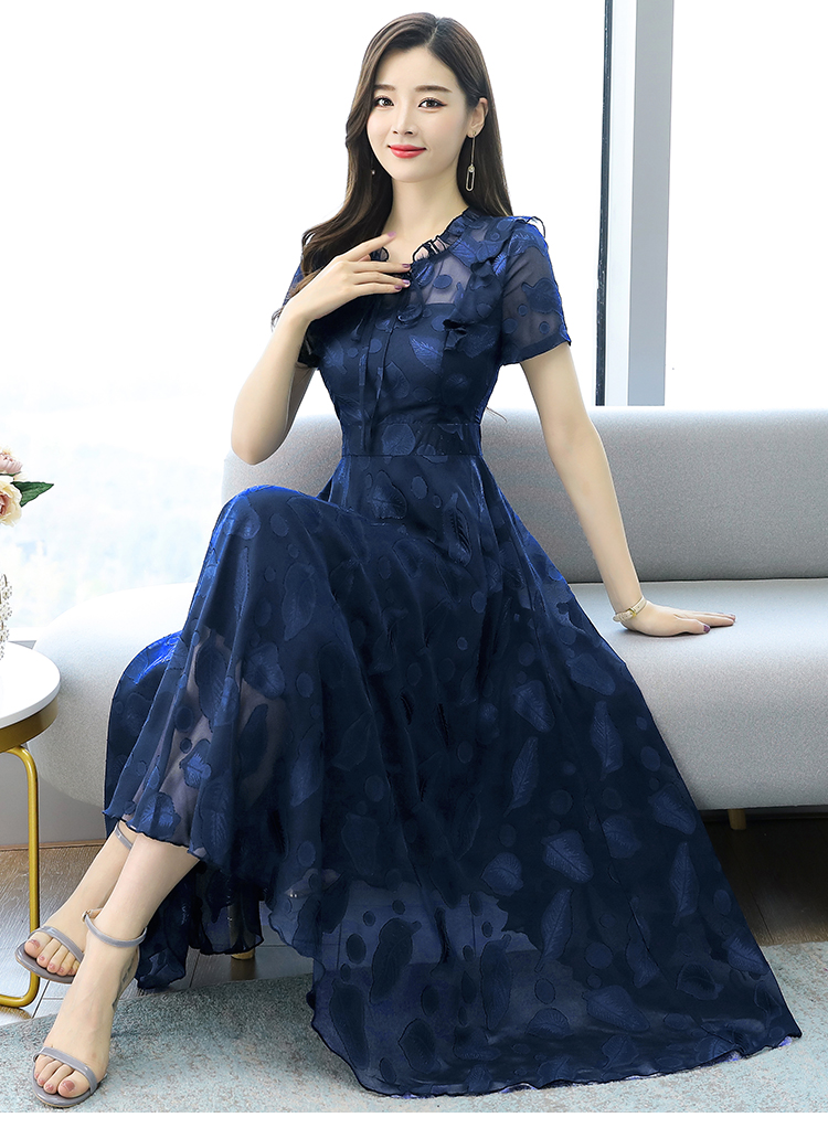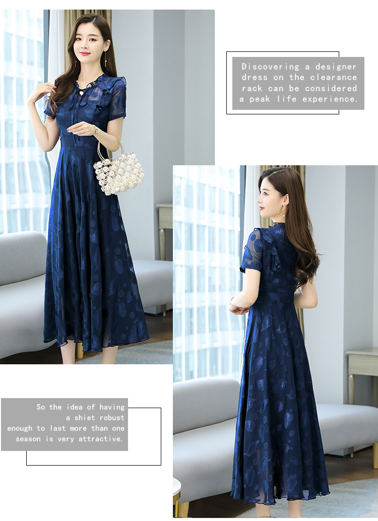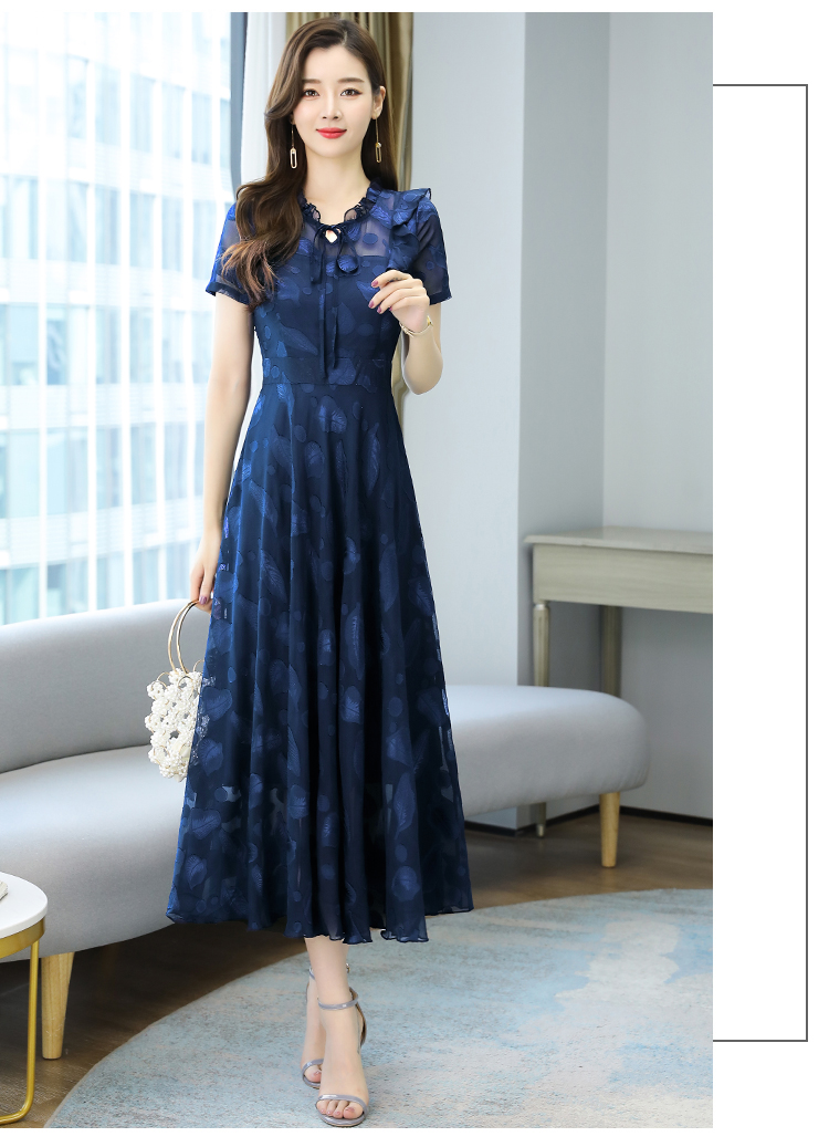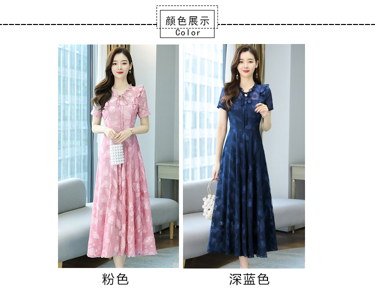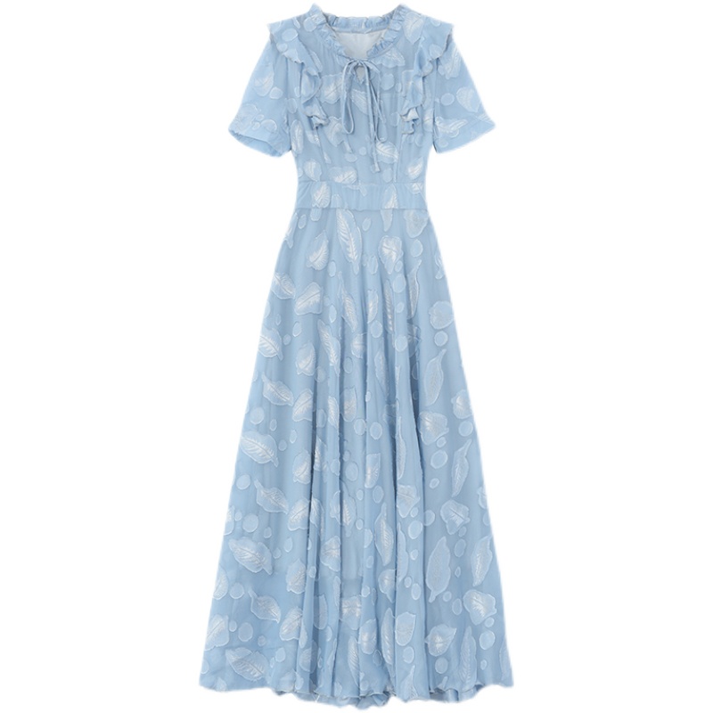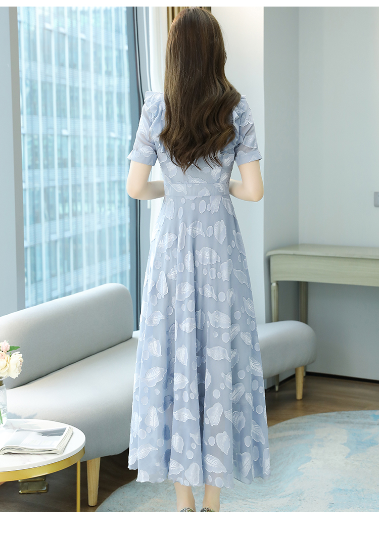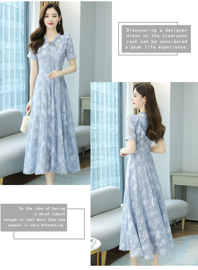 RY2243#雪纺连衣裙2026新款夏流行裙子长款提花花收腰大摆裙女