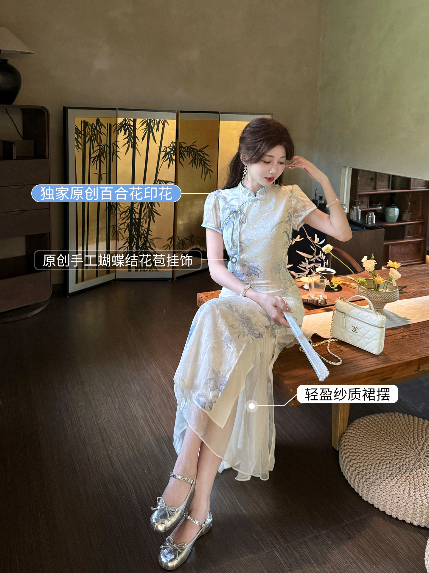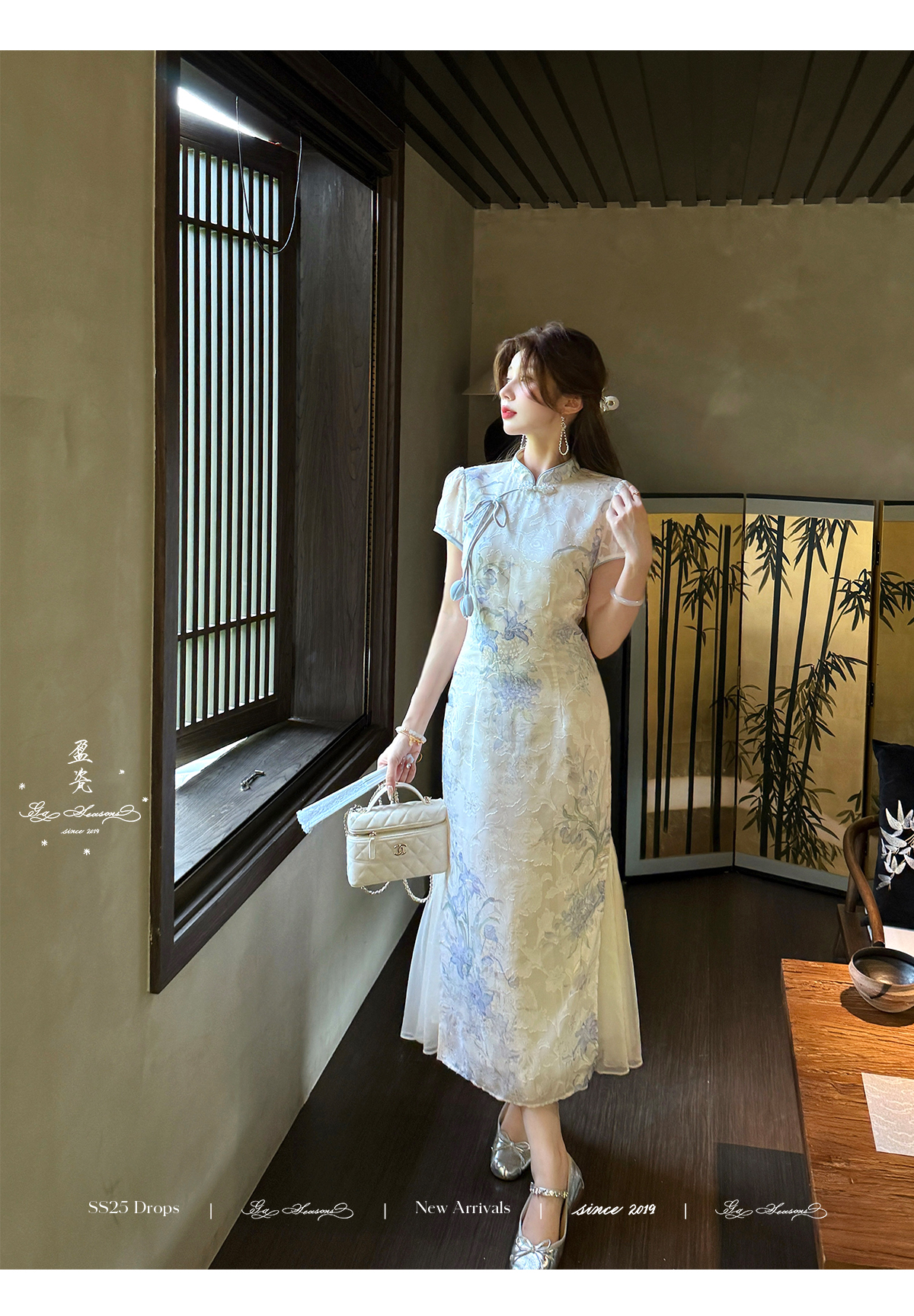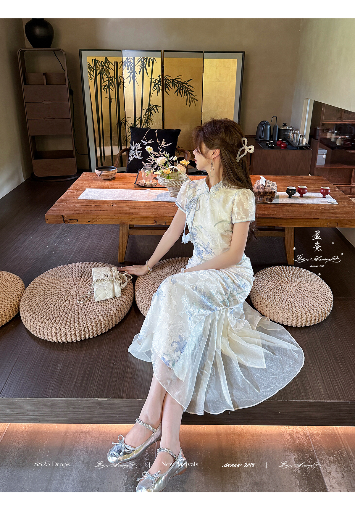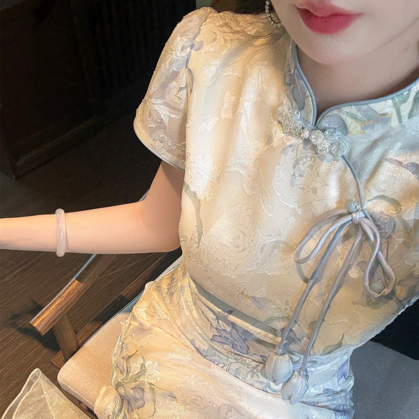 RY2244#一梦江南新中式国风夏日收腰盘扣雪纺旗袍仙气优雅连衣裙女