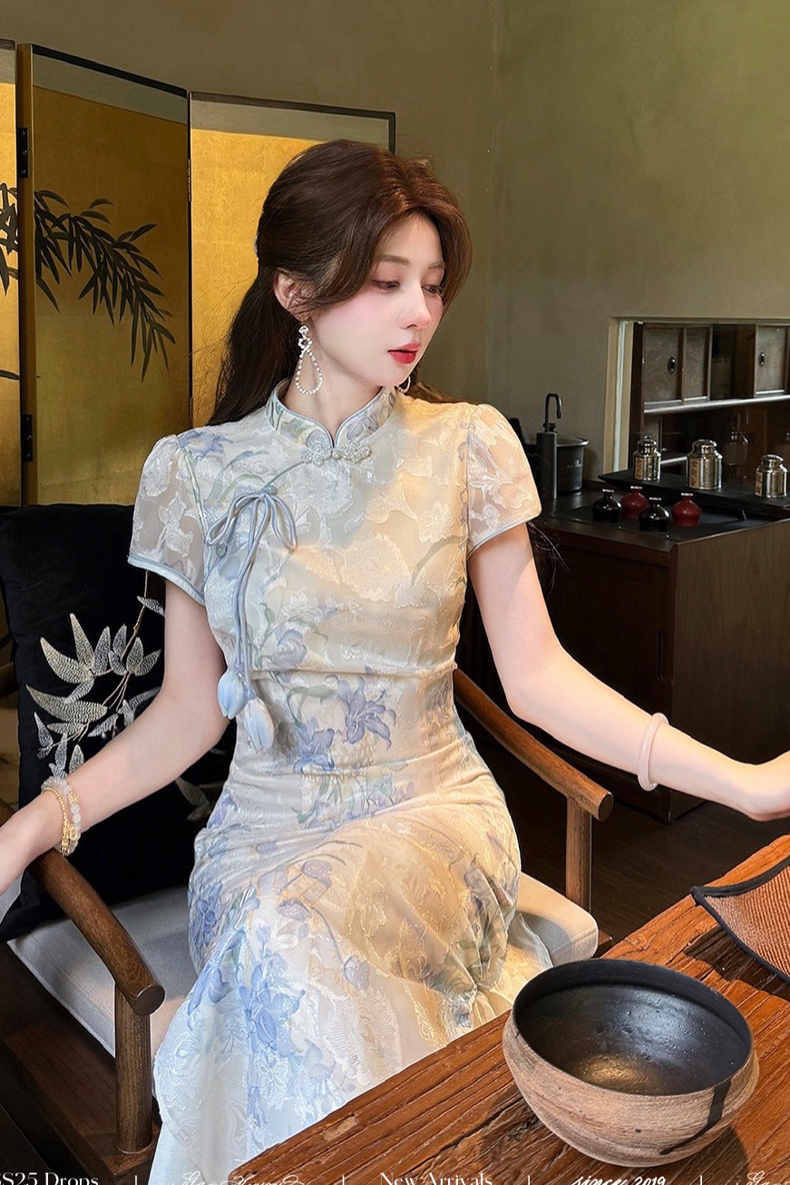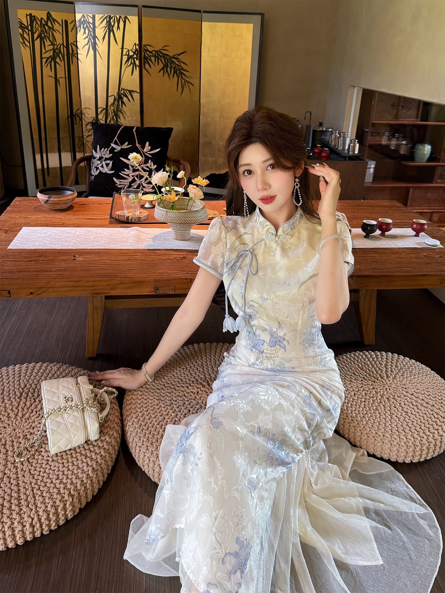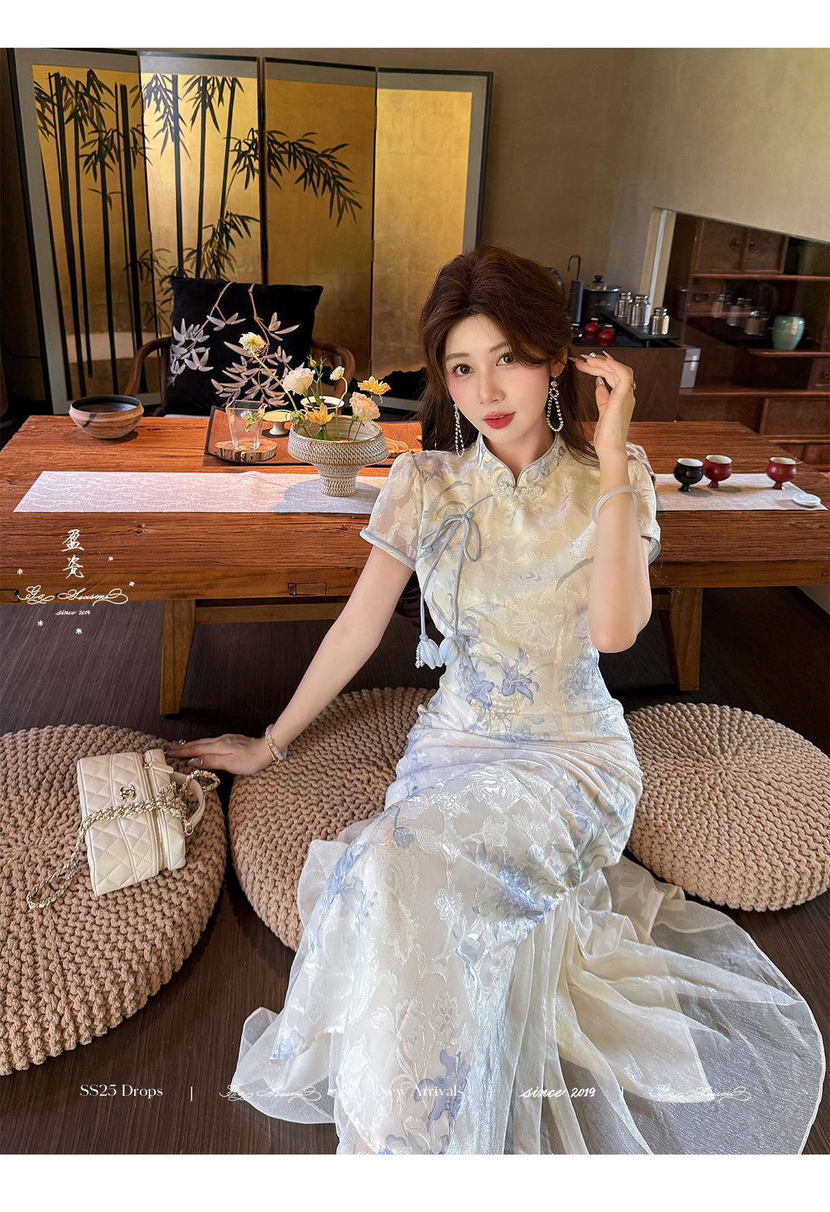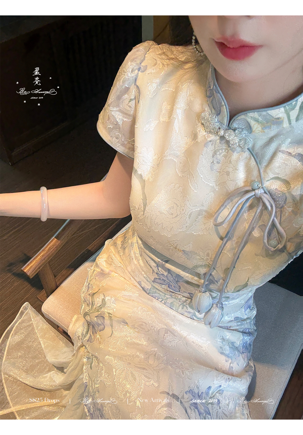 RY2244#一梦江南新中式国风夏日收腰盘扣雪纺旗袍仙气优雅连衣裙女