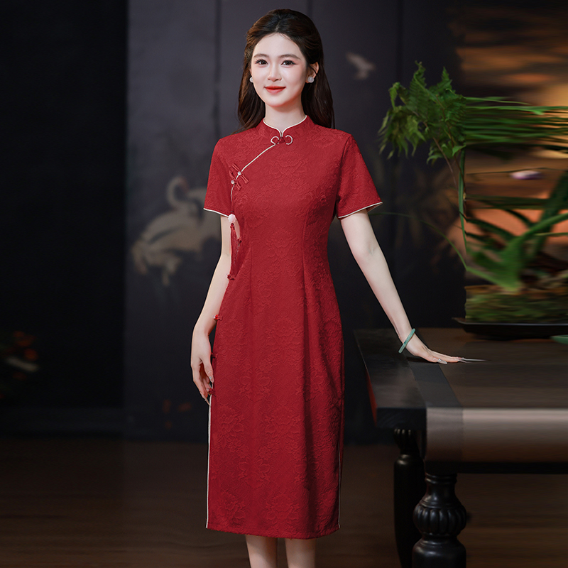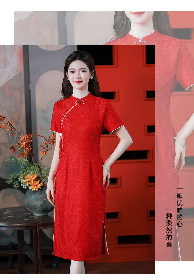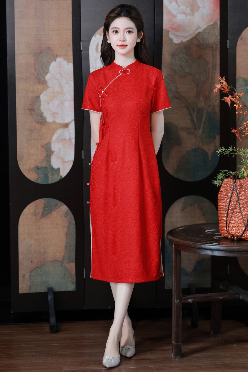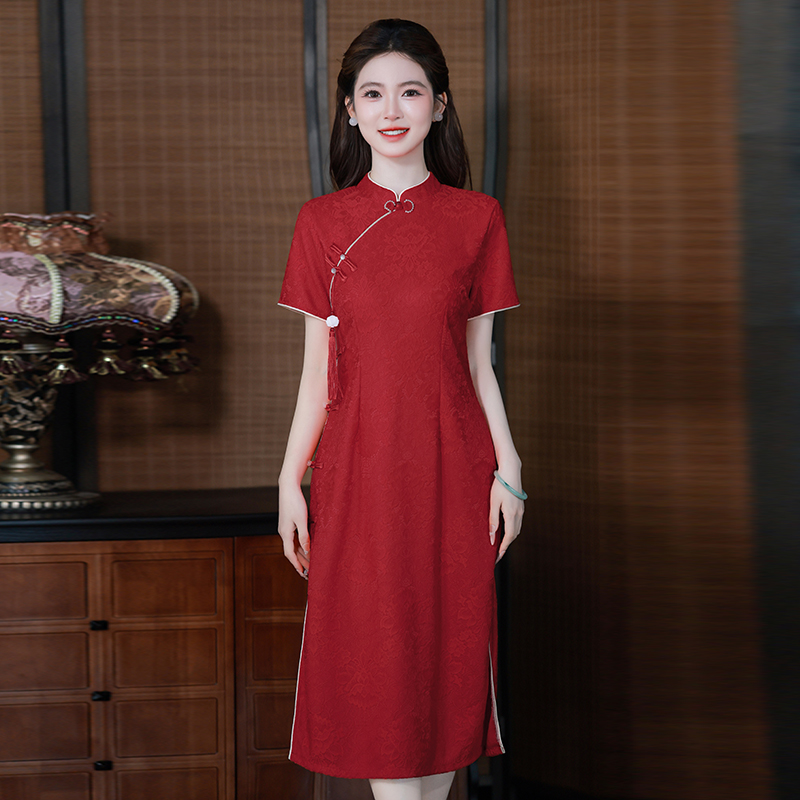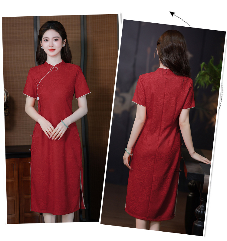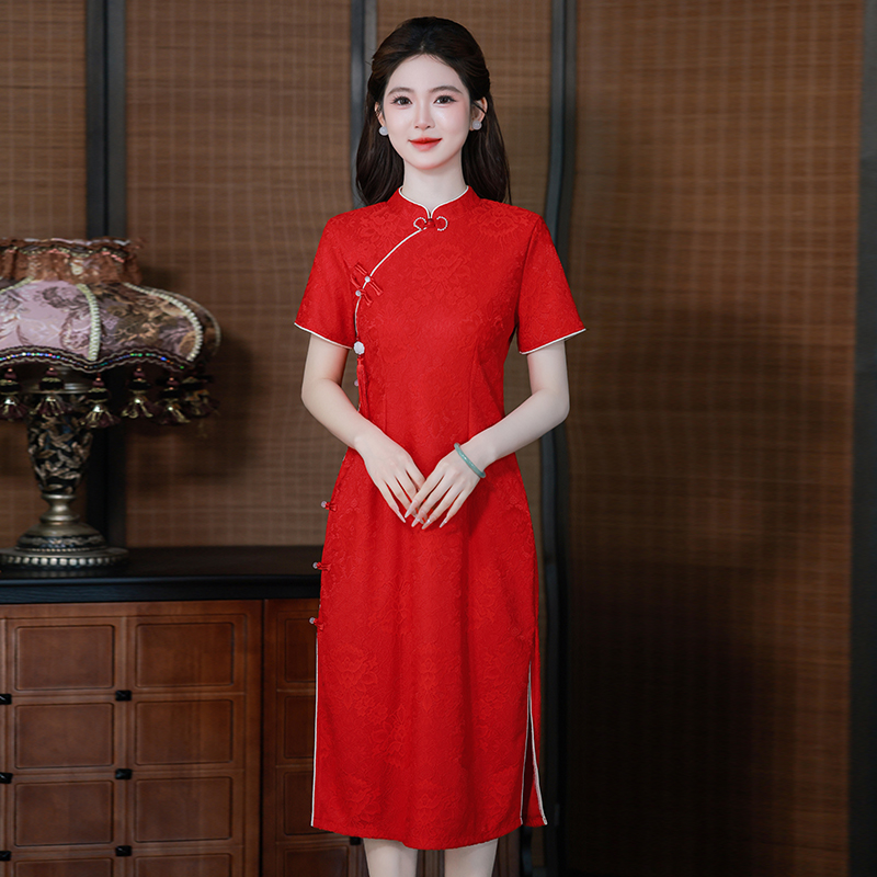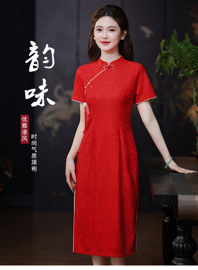 RY2635# 实拍红色旗袍外嫁女回娘家高考送考日常改良年轻新中式大码连衣裙