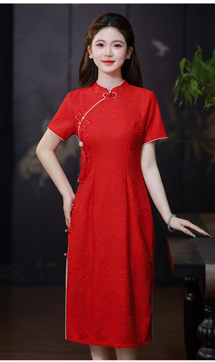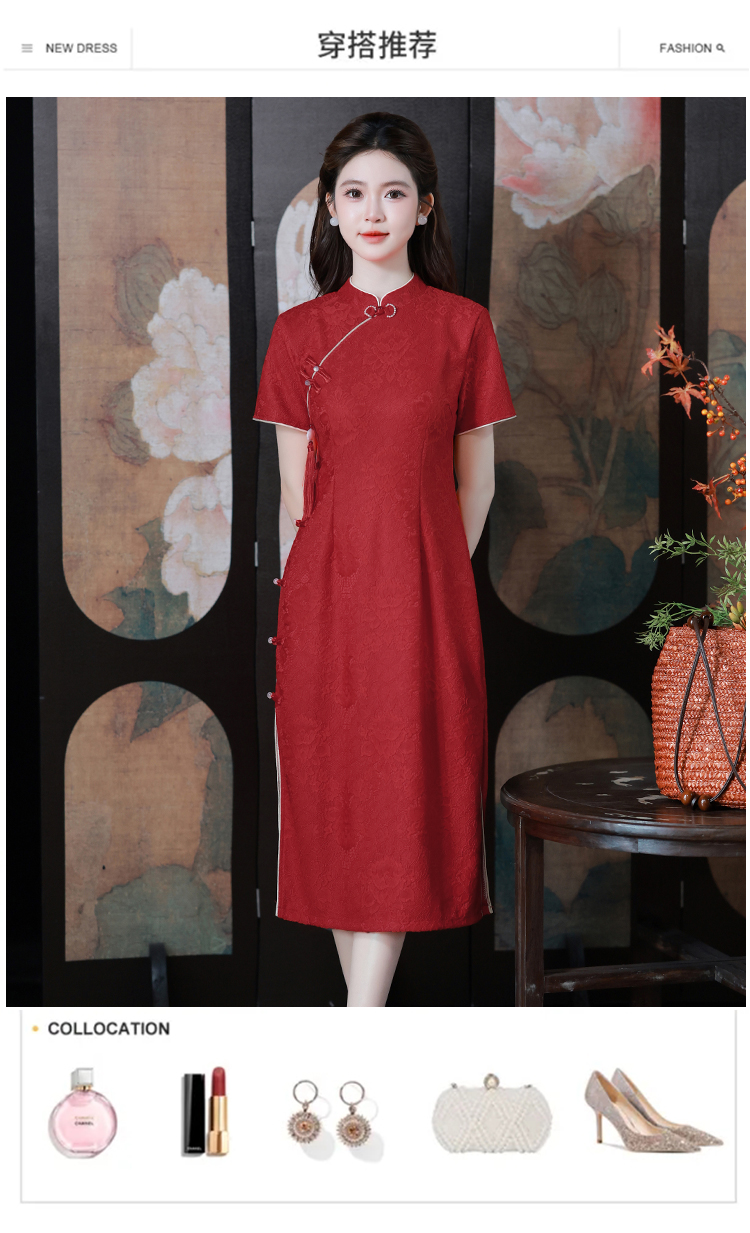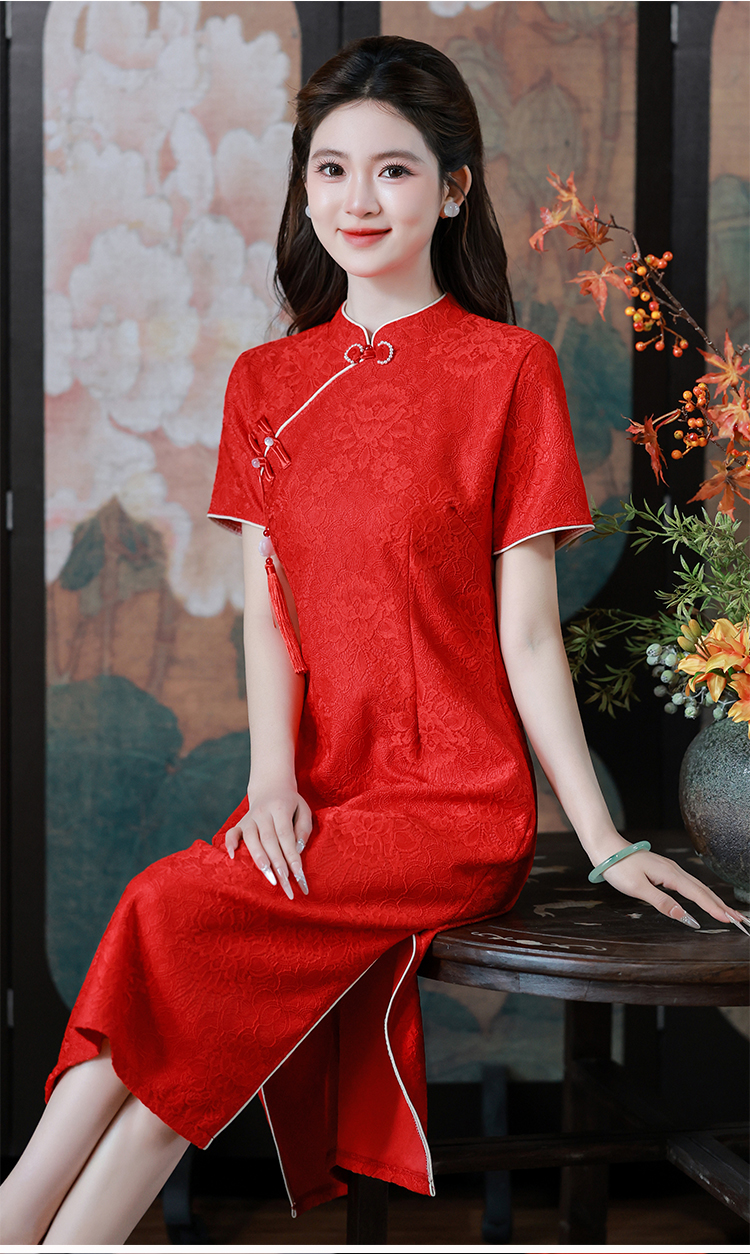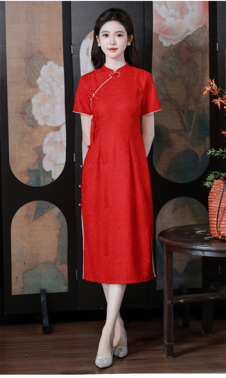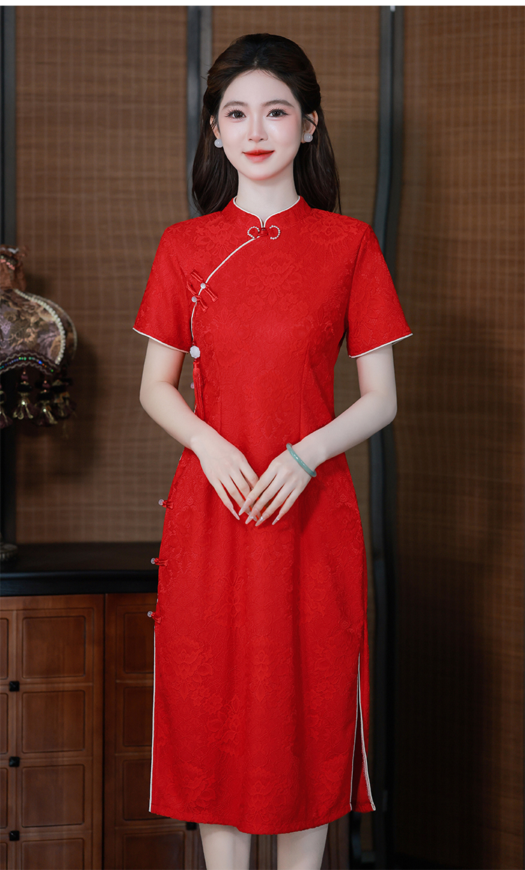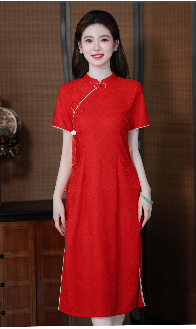 RY2635# 实拍红色旗袍外嫁女回娘家高考送考日常改良年轻新中式大码连衣裙