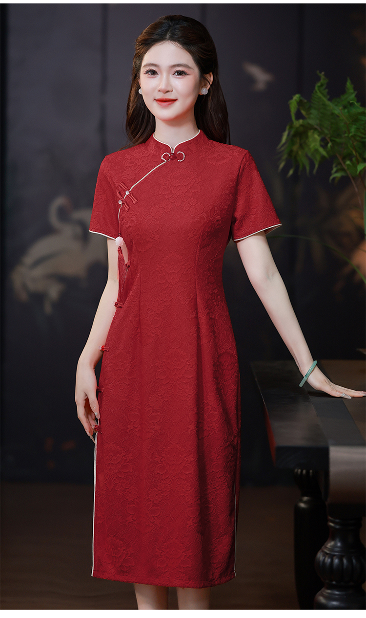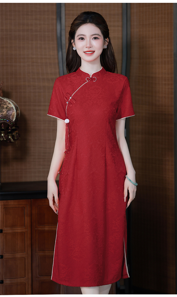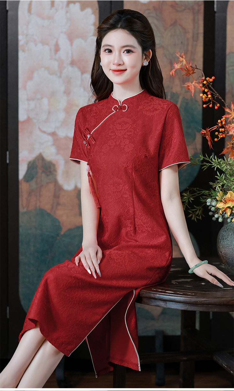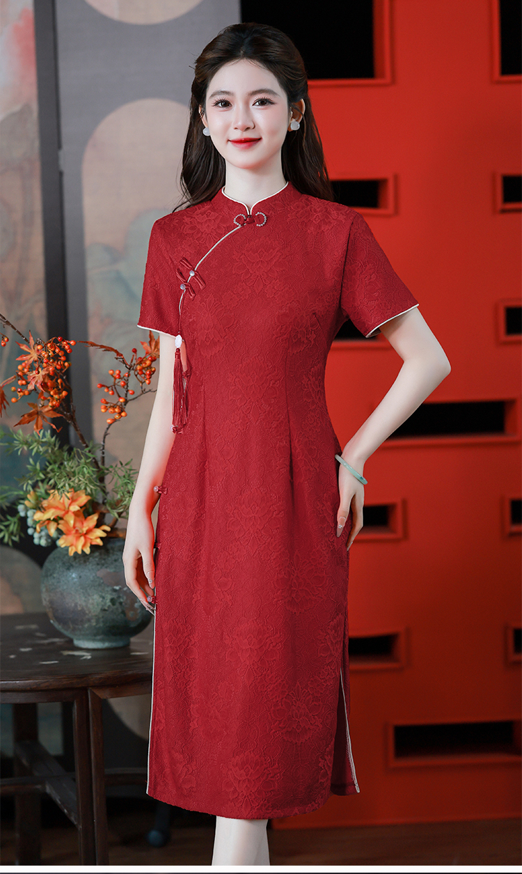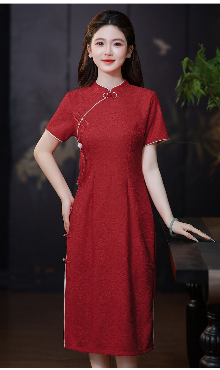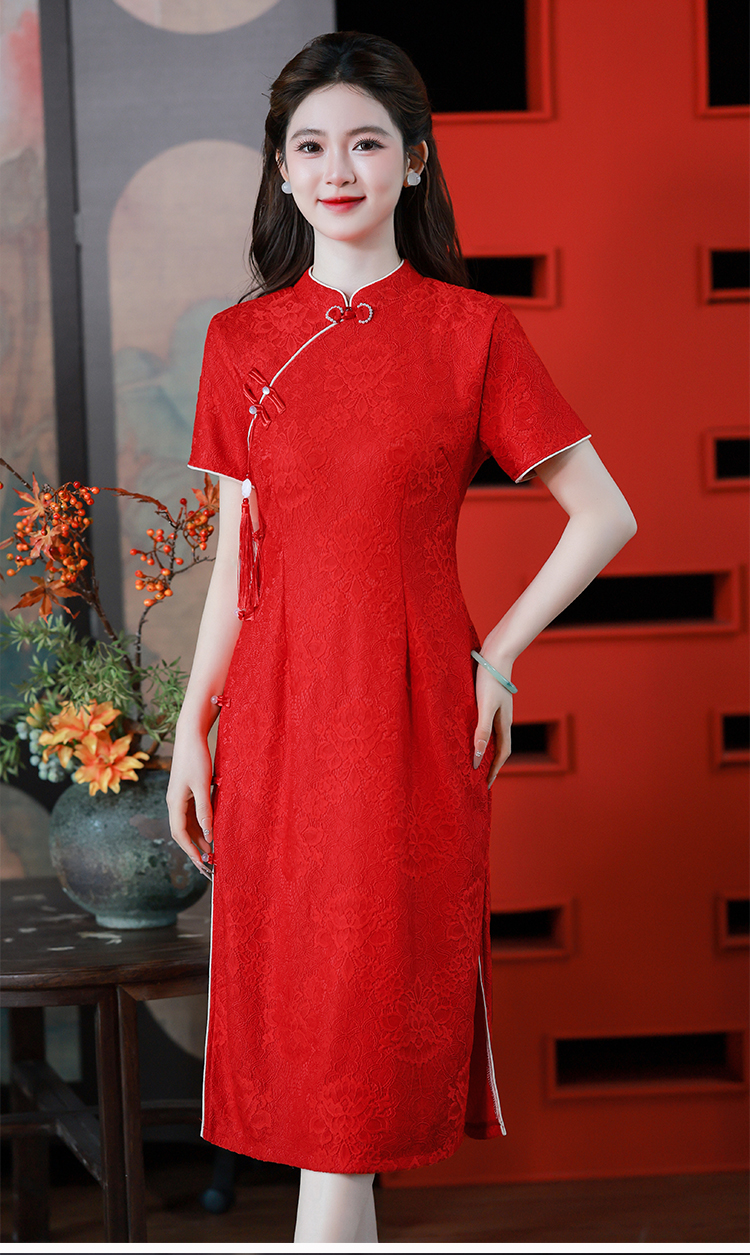 RY2635# 实拍红色旗袍外嫁女回娘家高考送考日常改良年轻新中式大码连衣裙