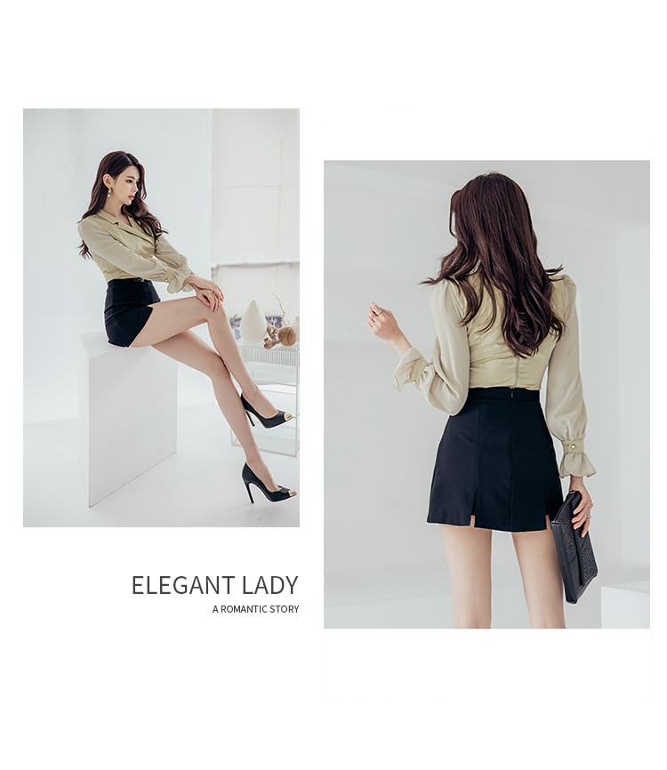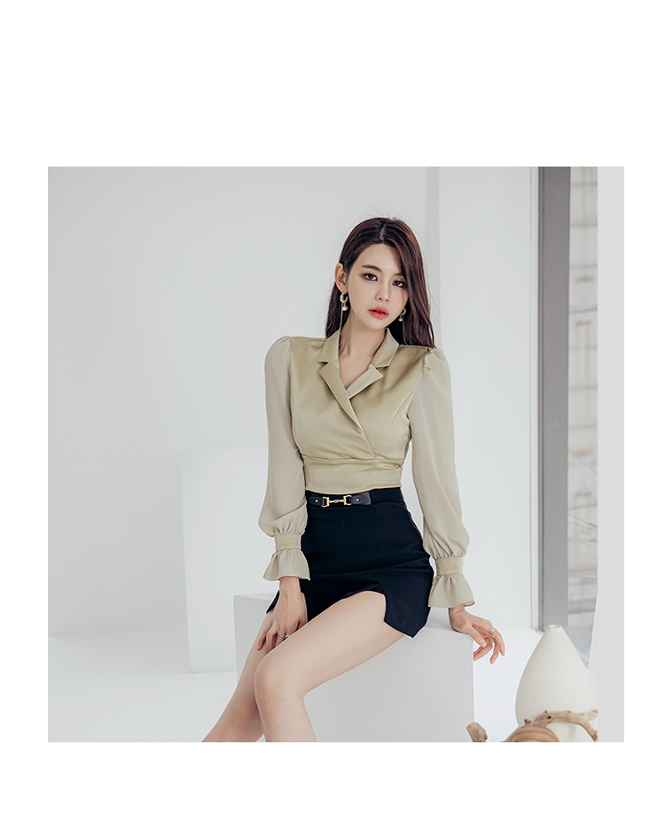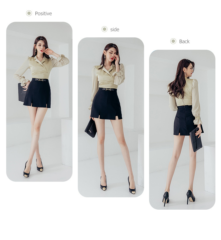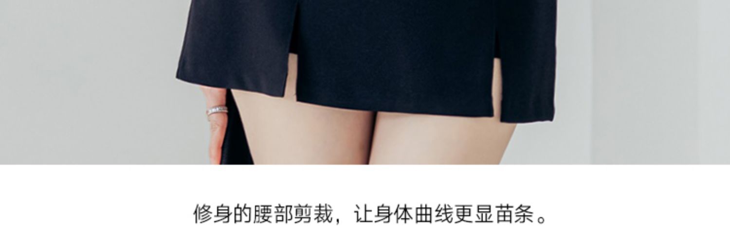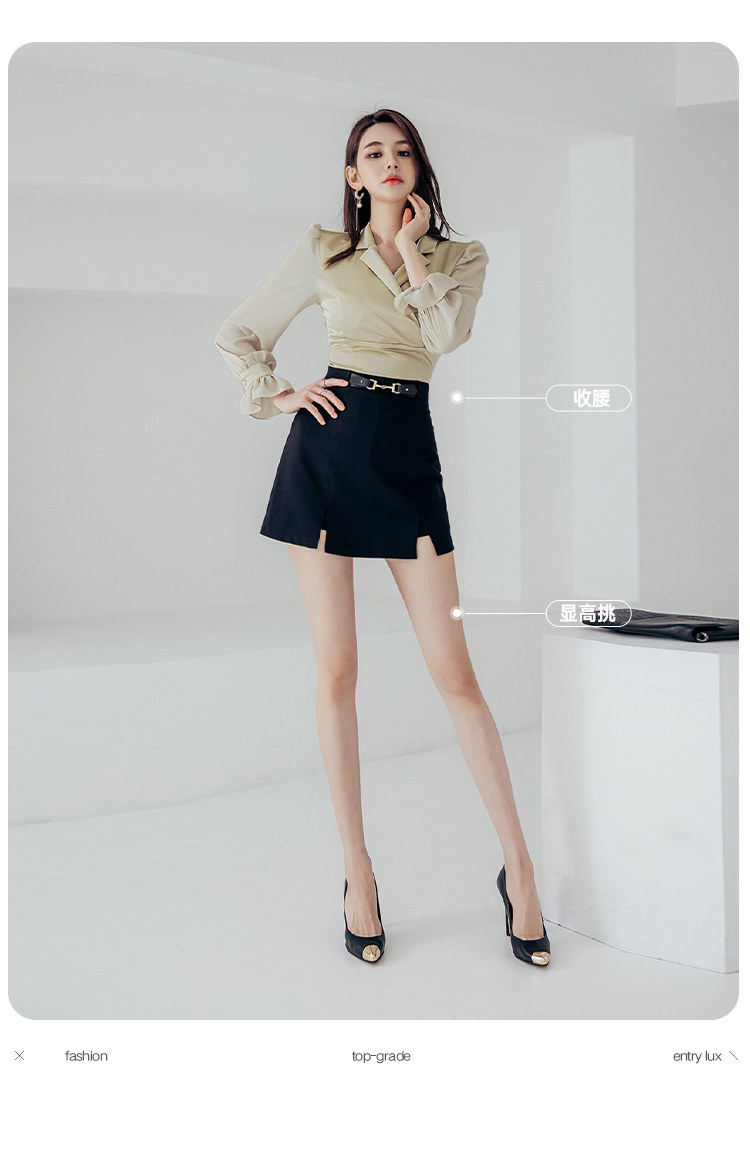 RY2675# 2026新款气质通勤翻领收腰上衣+开叉短裙两件套 女显瘦轻熟风套装