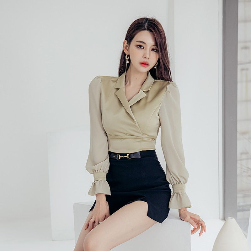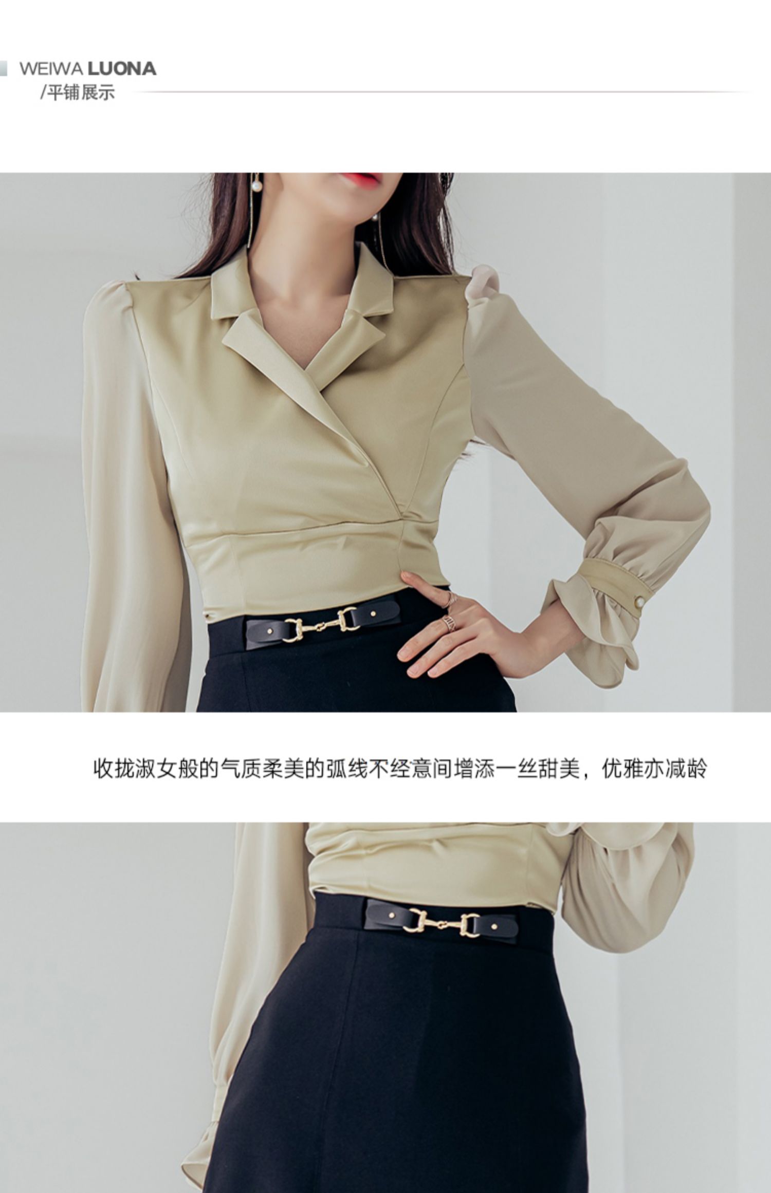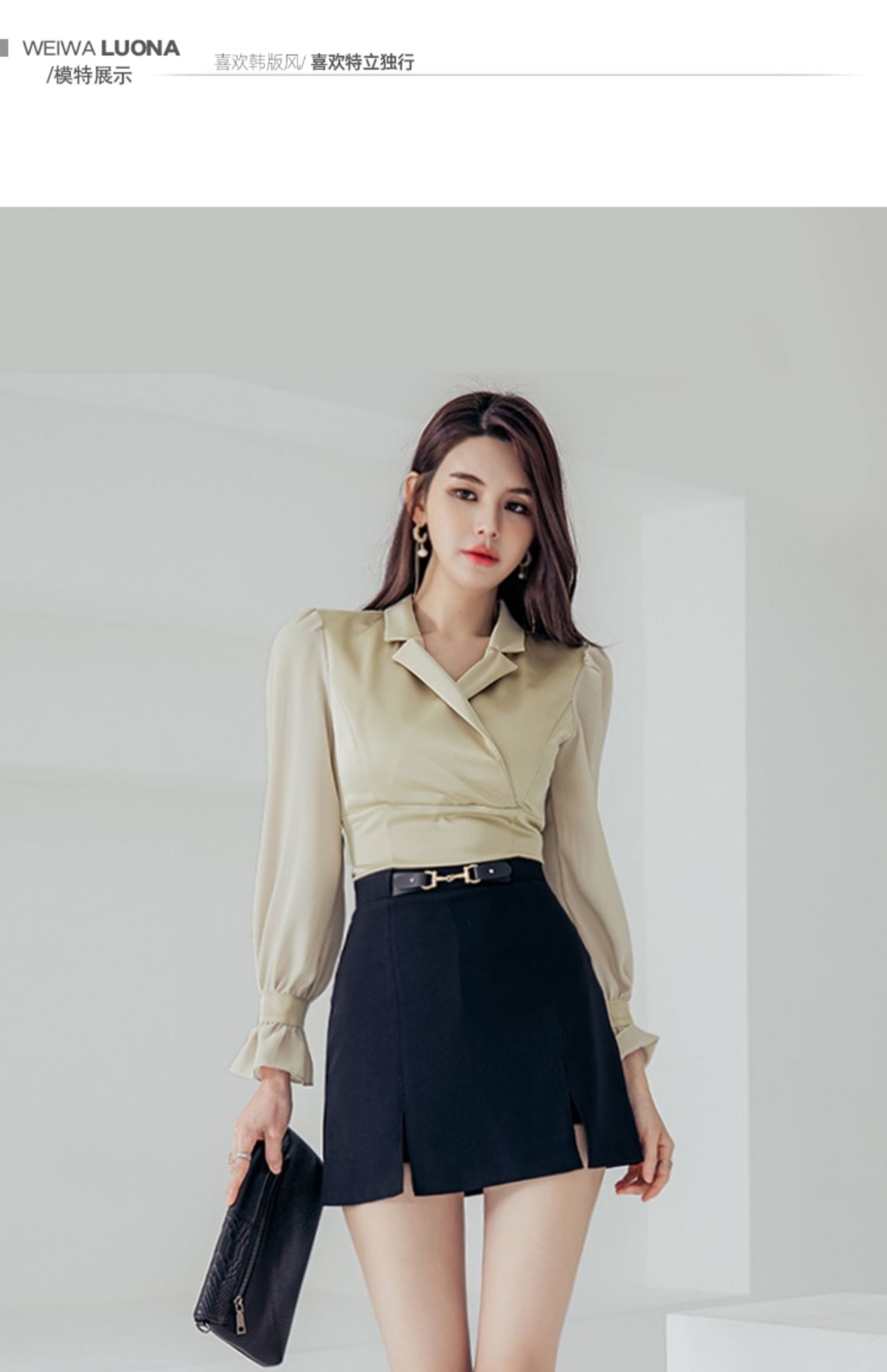 RY2675# 2026新款气质通勤翻领收腰上衣+开叉短裙两件套 女显瘦轻熟风套装