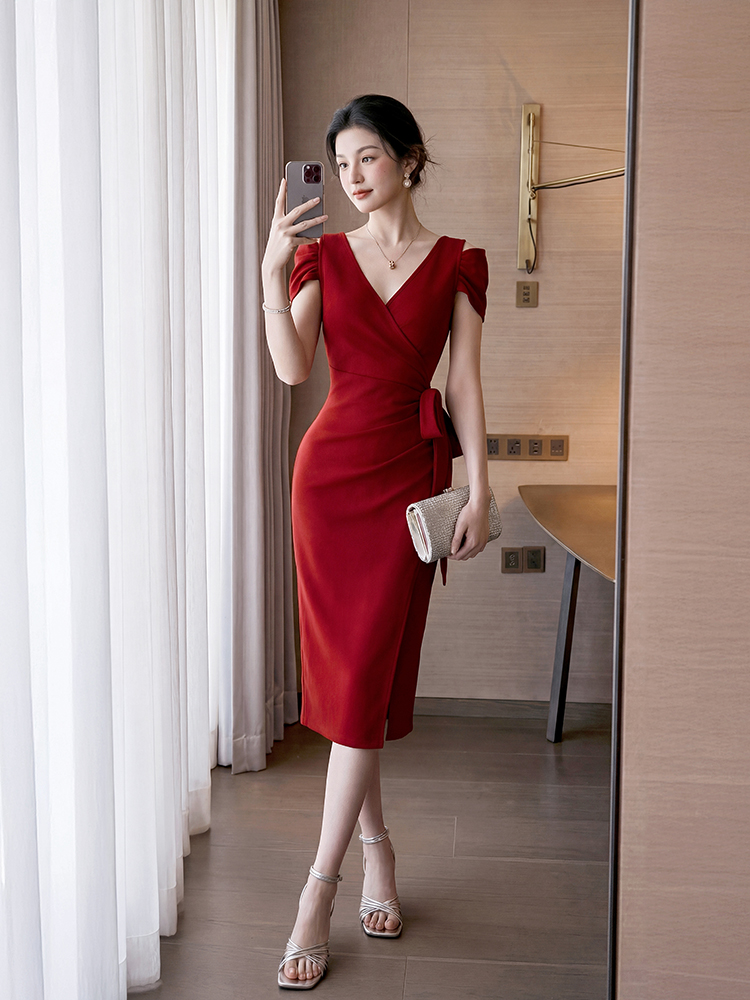 RY2694# 实拍+视频 2026新款气质时尚性感露肩低胸深v领连衣裙中长款
