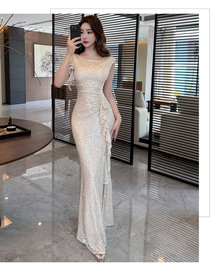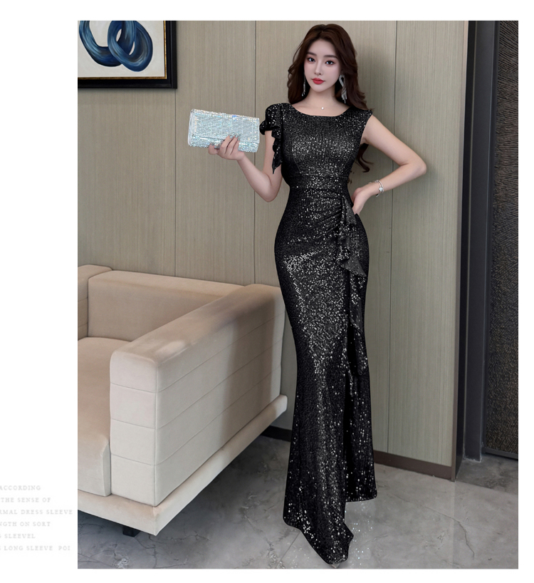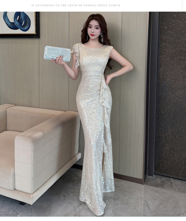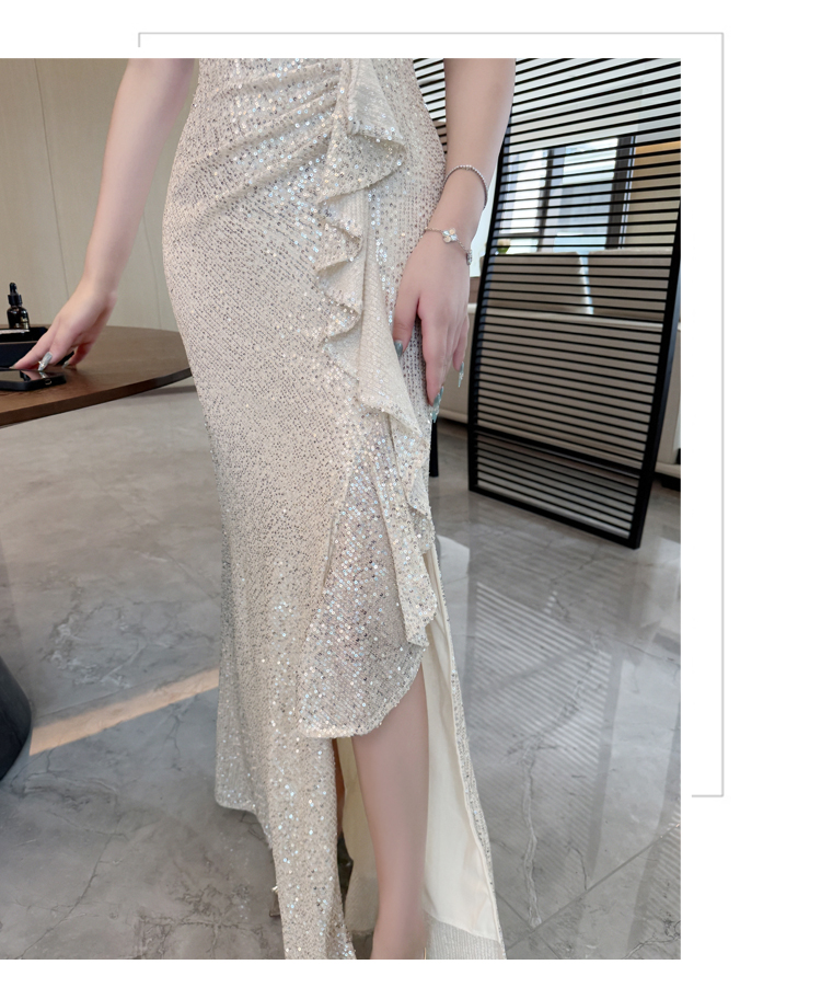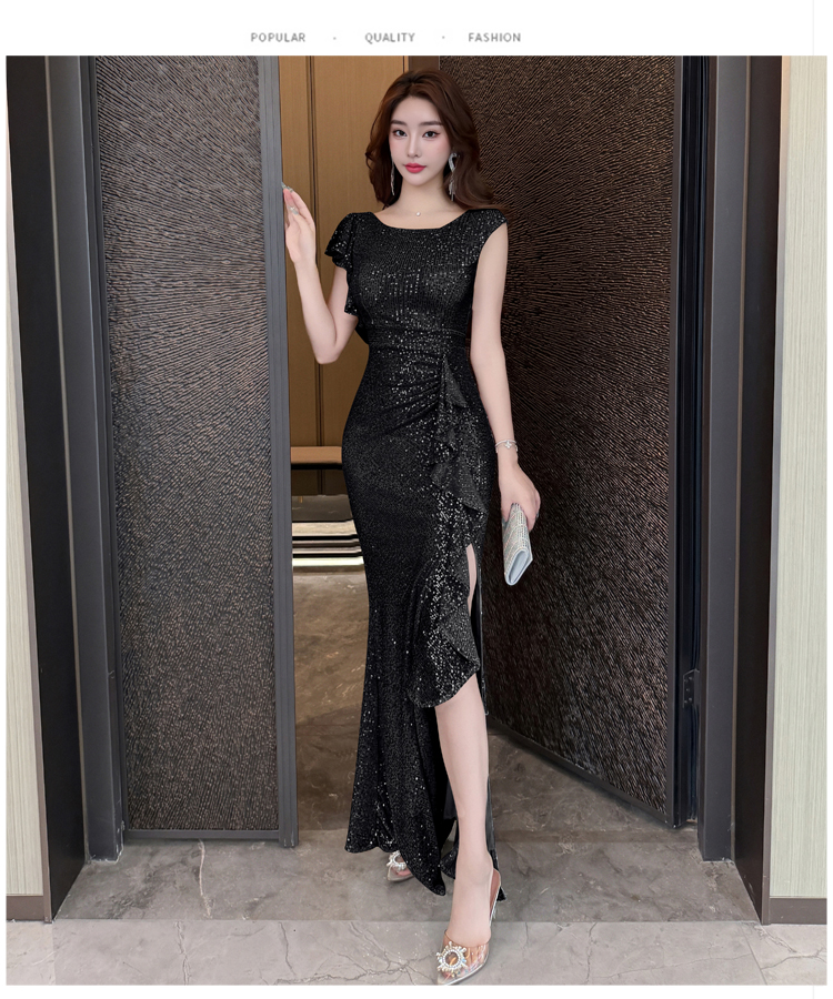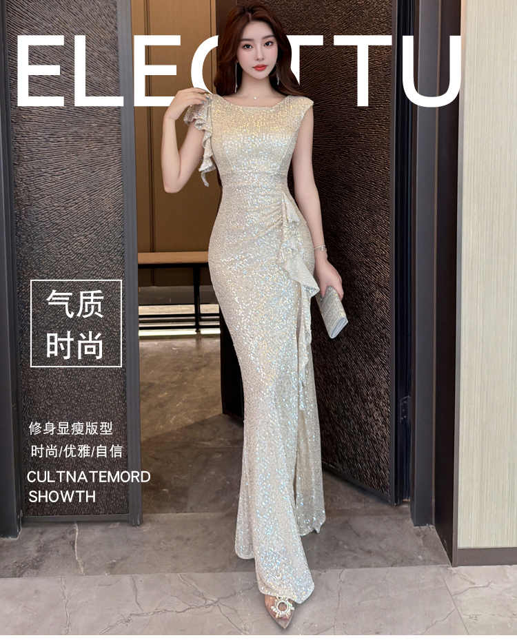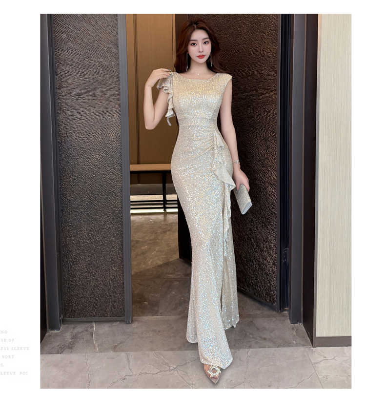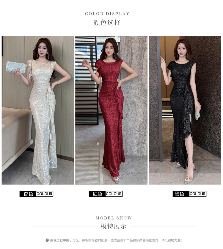 RY2695# 实拍+视频 高端亮片连衣裙女气质高级感宴会开叉鱼尾长裙晚礼服