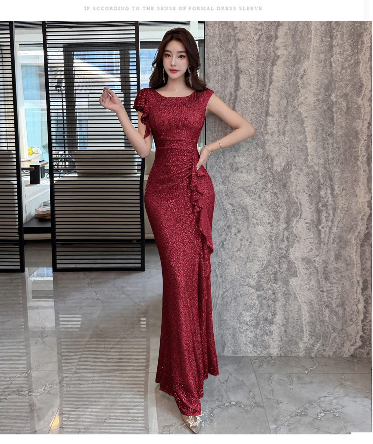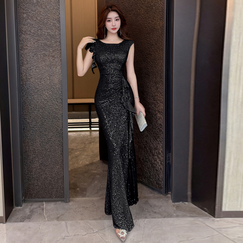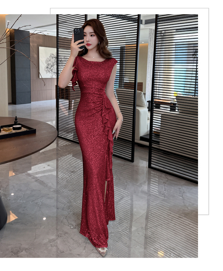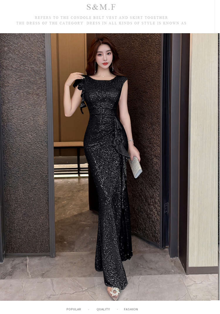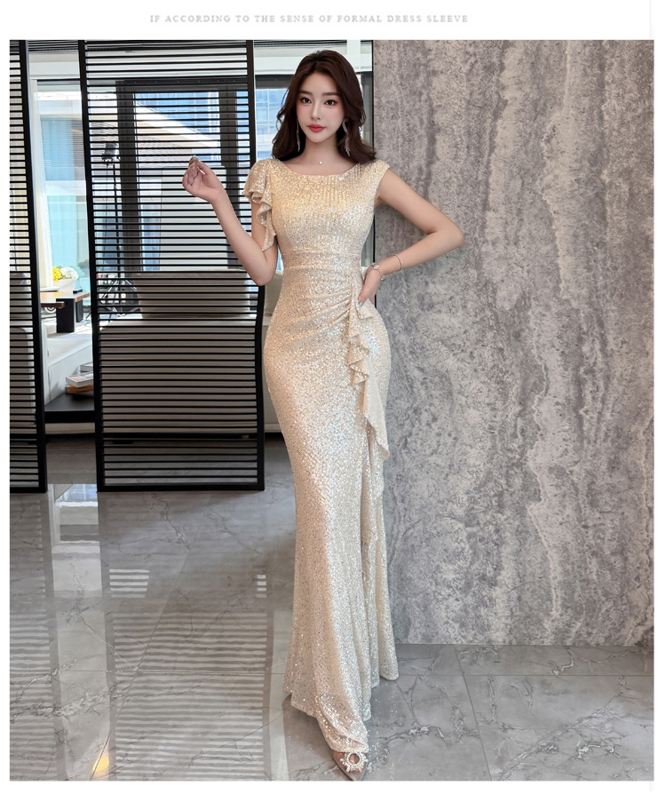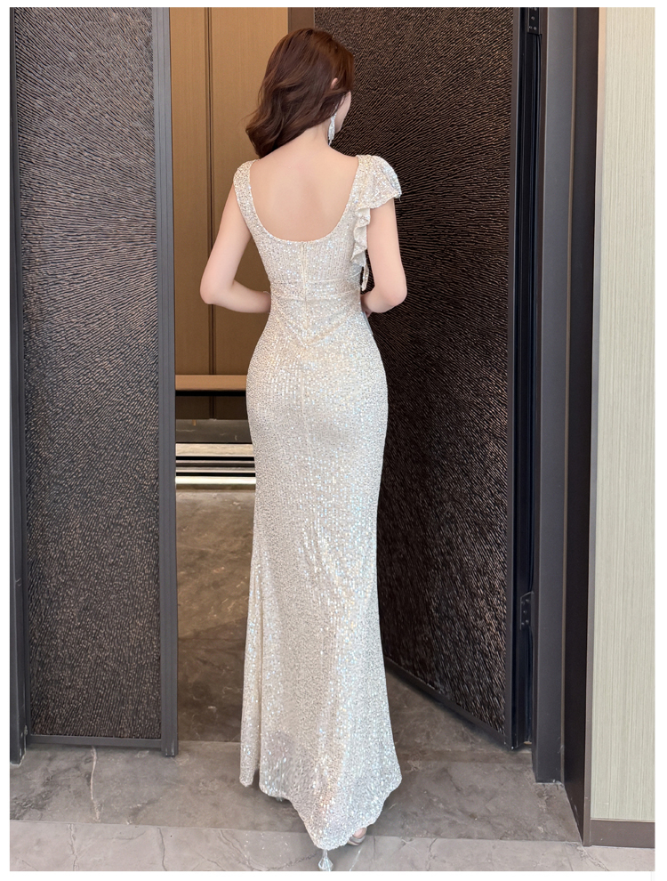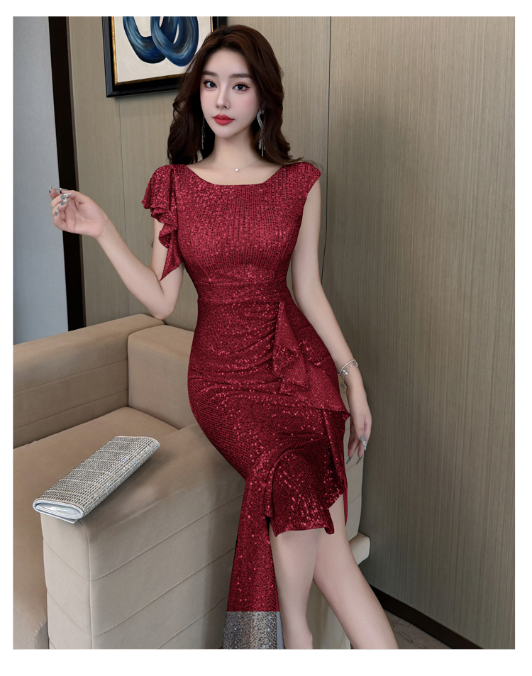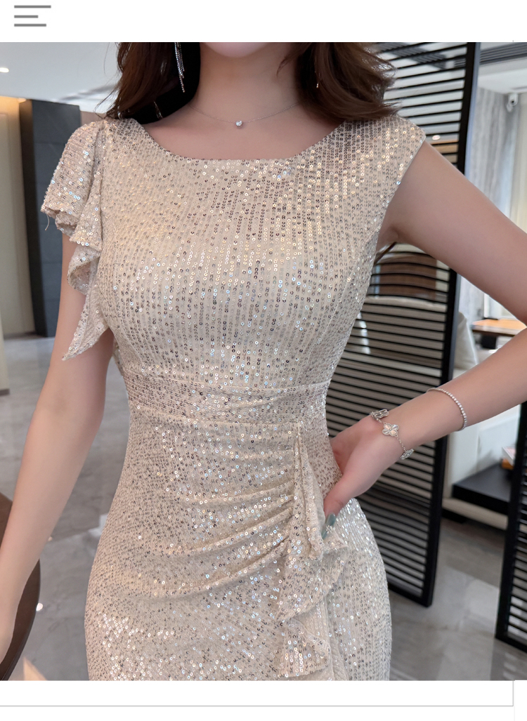 RY2695# 实拍+视频 高端亮片连衣裙女气质高级感宴会开叉鱼尾长裙晚礼服