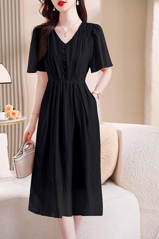 RY2722# 实拍纳米条透气系带短袖V领连衣裙夏季2026新款收腰显瘦气质裙子