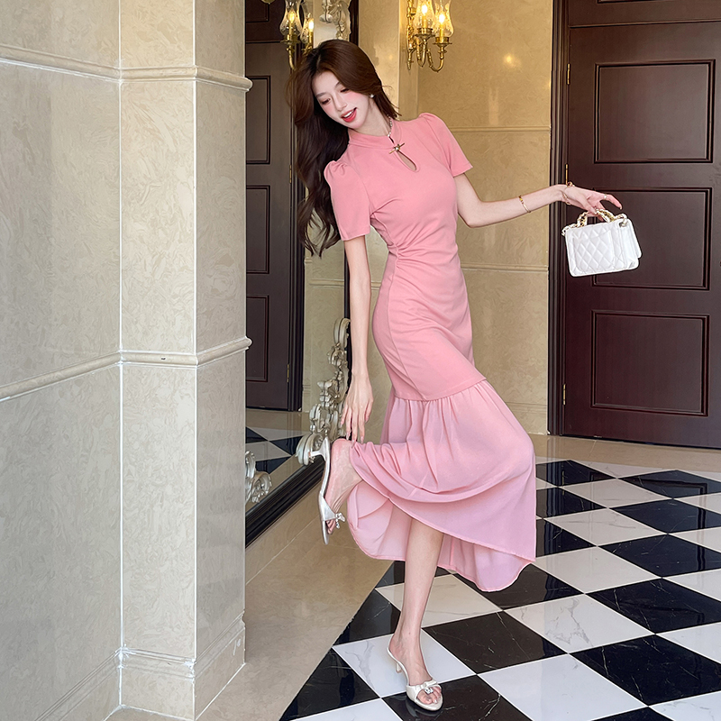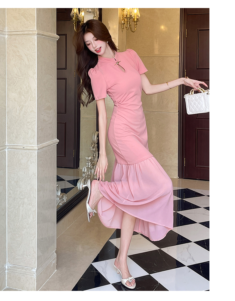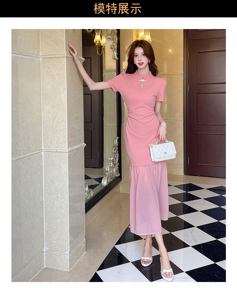 RY2736# 视频实拍2026夏季新款时尚网红钉珠御姐收腰长裙显瘦连衣裙