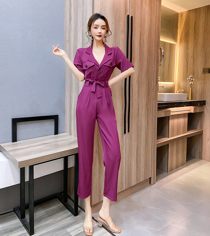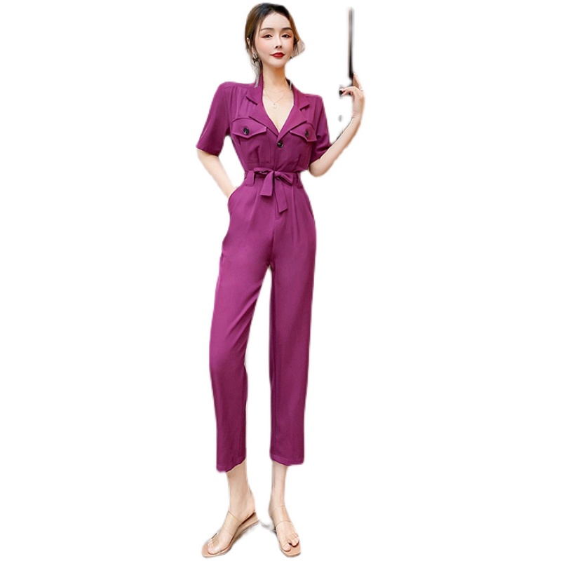 RY2737# 实拍2026夏季新款时尚气质单排扣配腰带显瘦长裤收腰连体裤