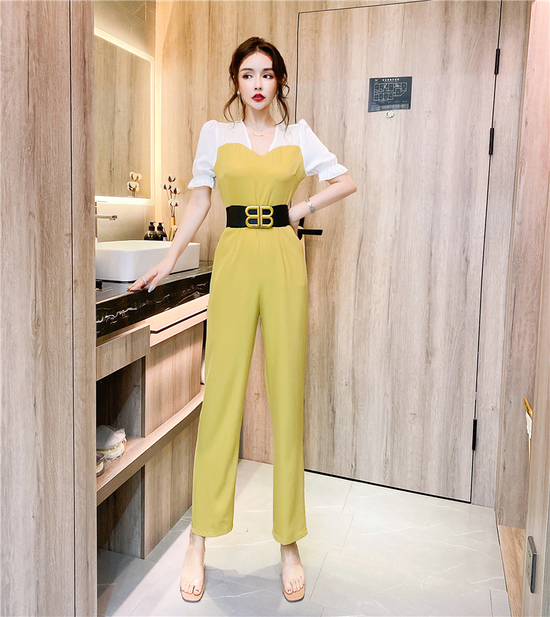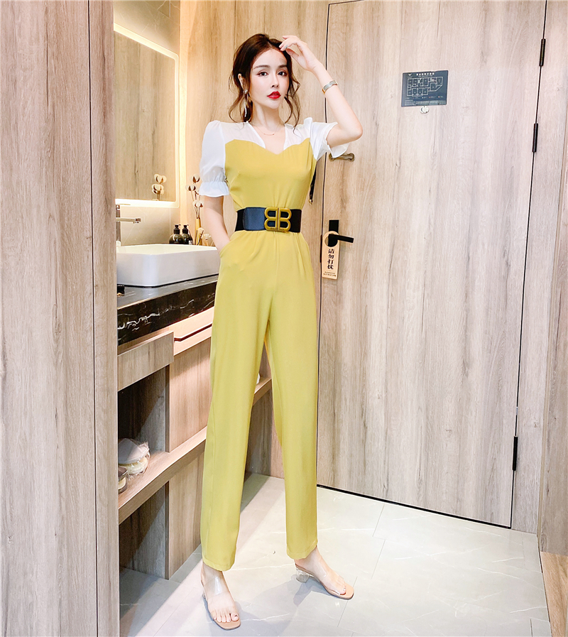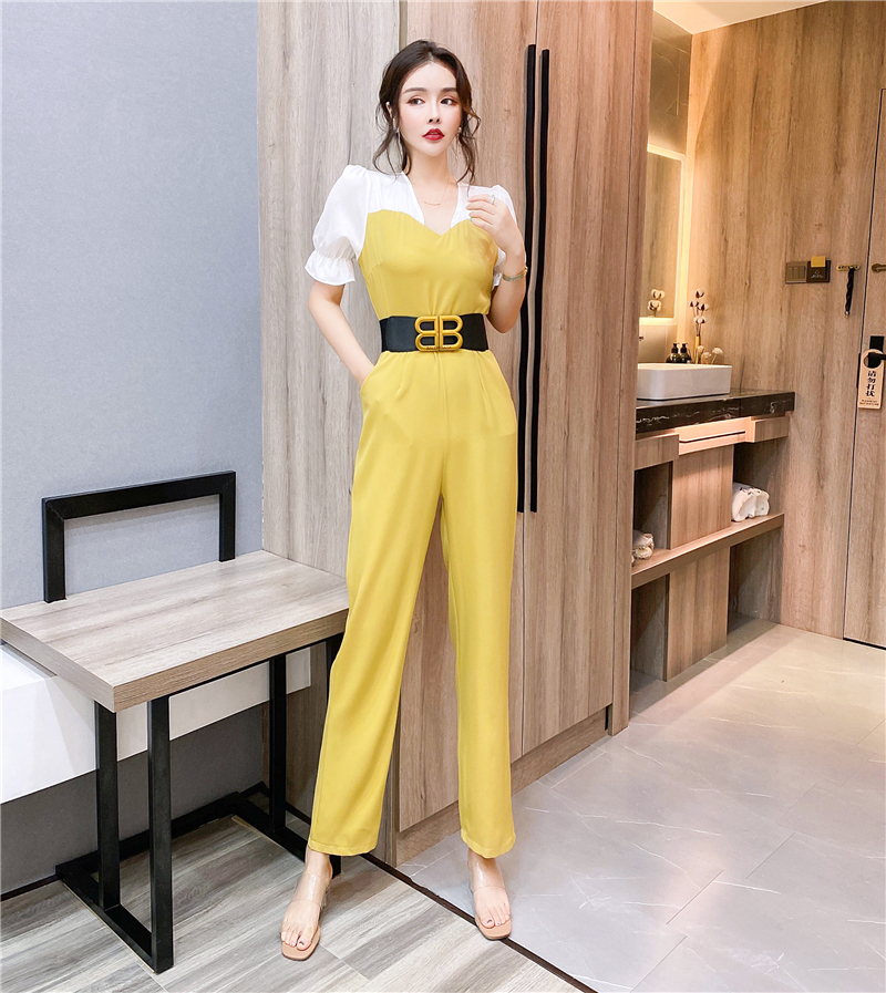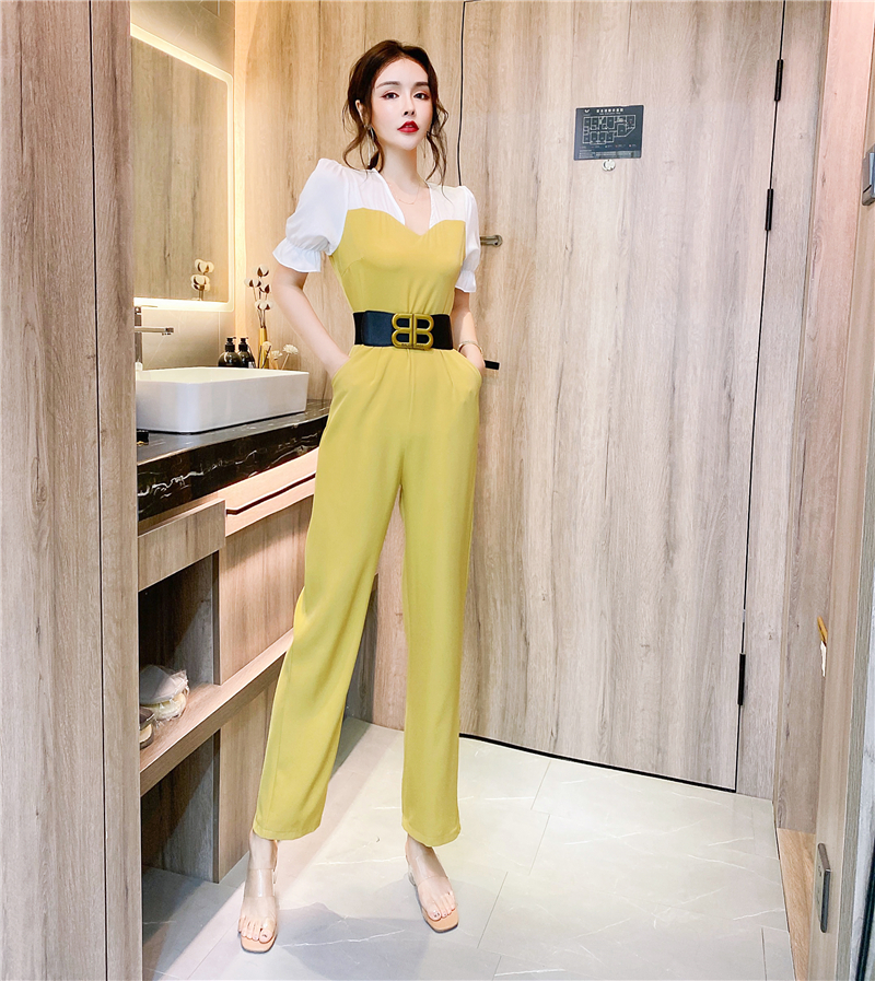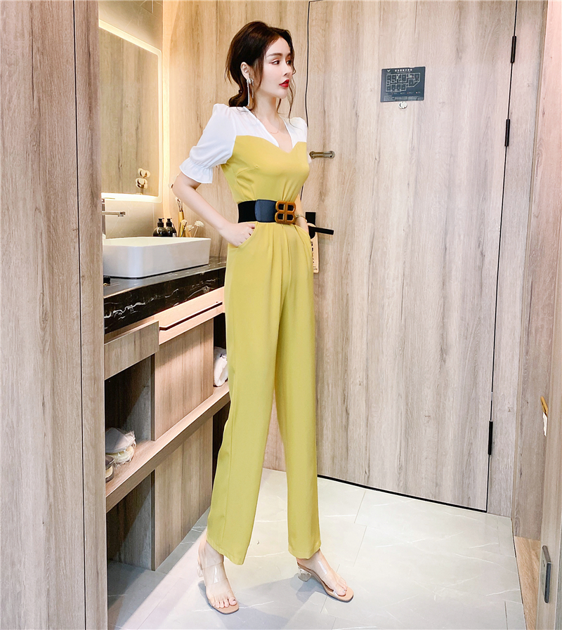 RY2740# 实拍2026夏季时尚洋气V领网红撞色腰带收腰显瘦连体裤长裤