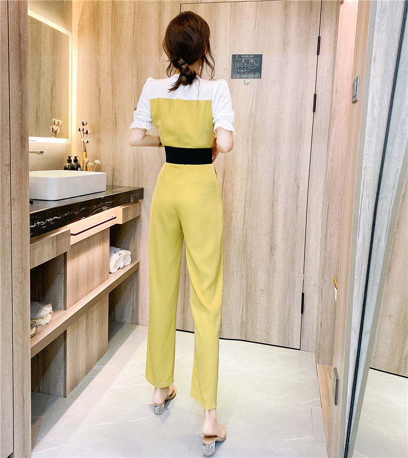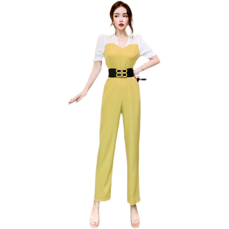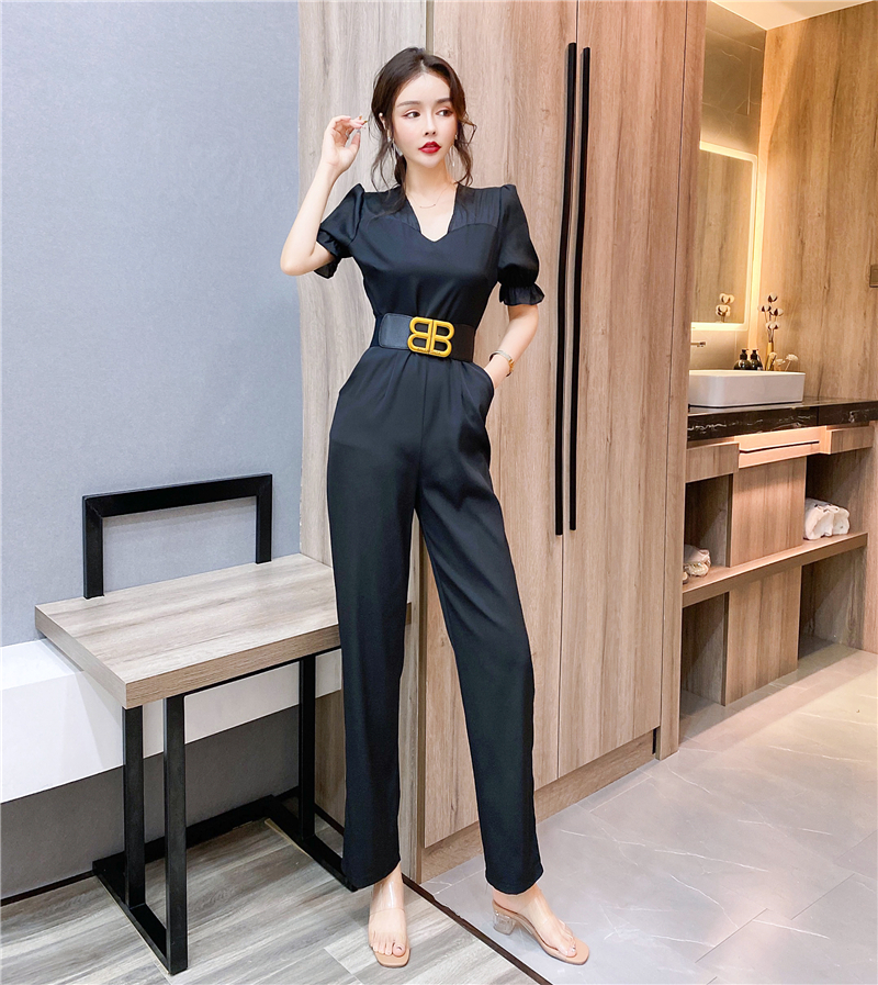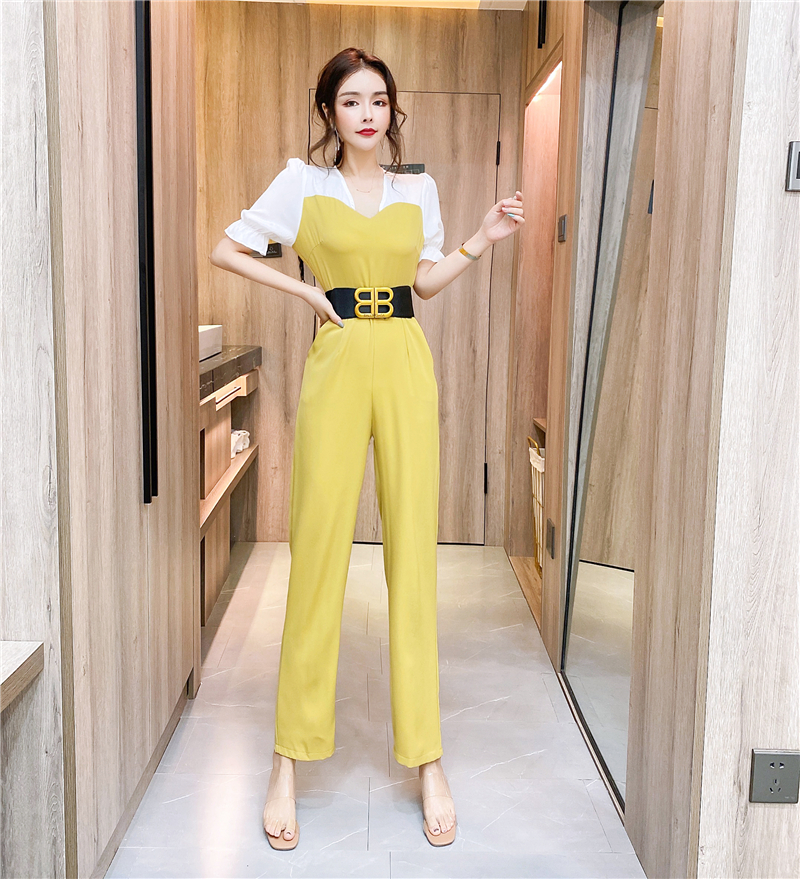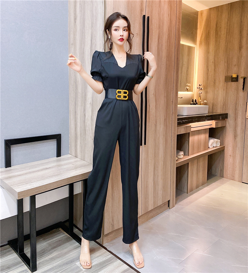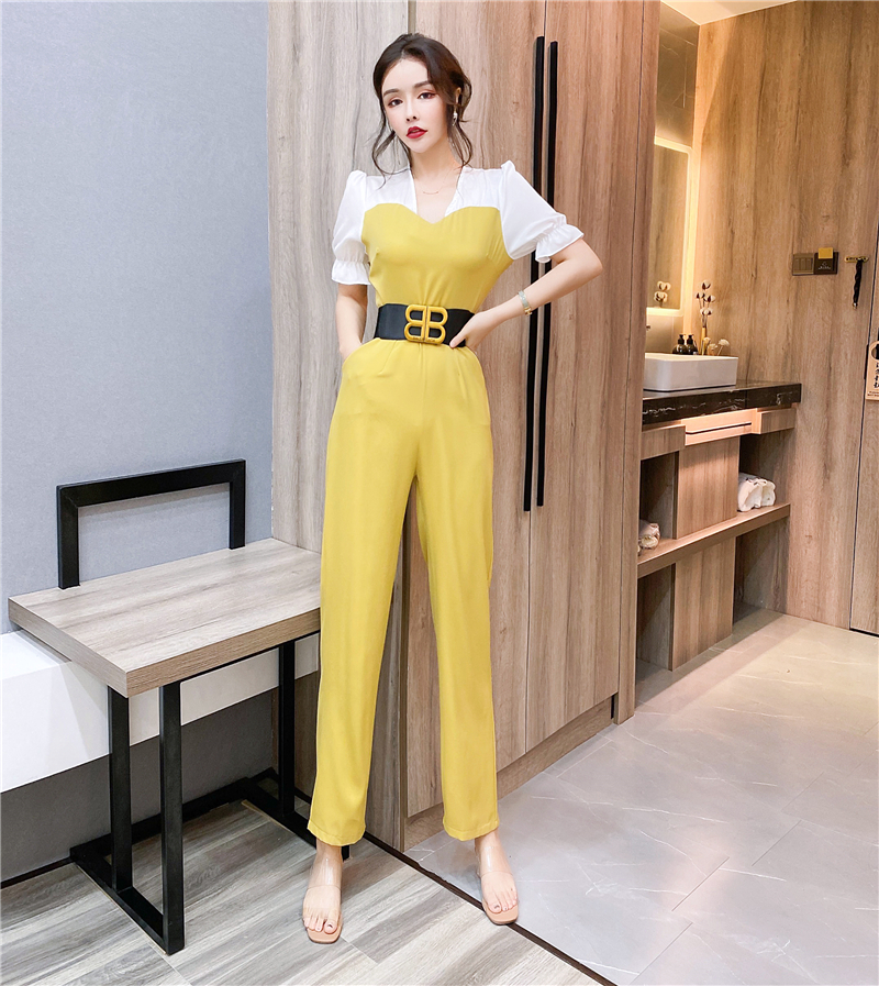 RY2740# 实拍2026夏季时尚洋气V领网红撞色腰带收腰显瘦连体裤长裤