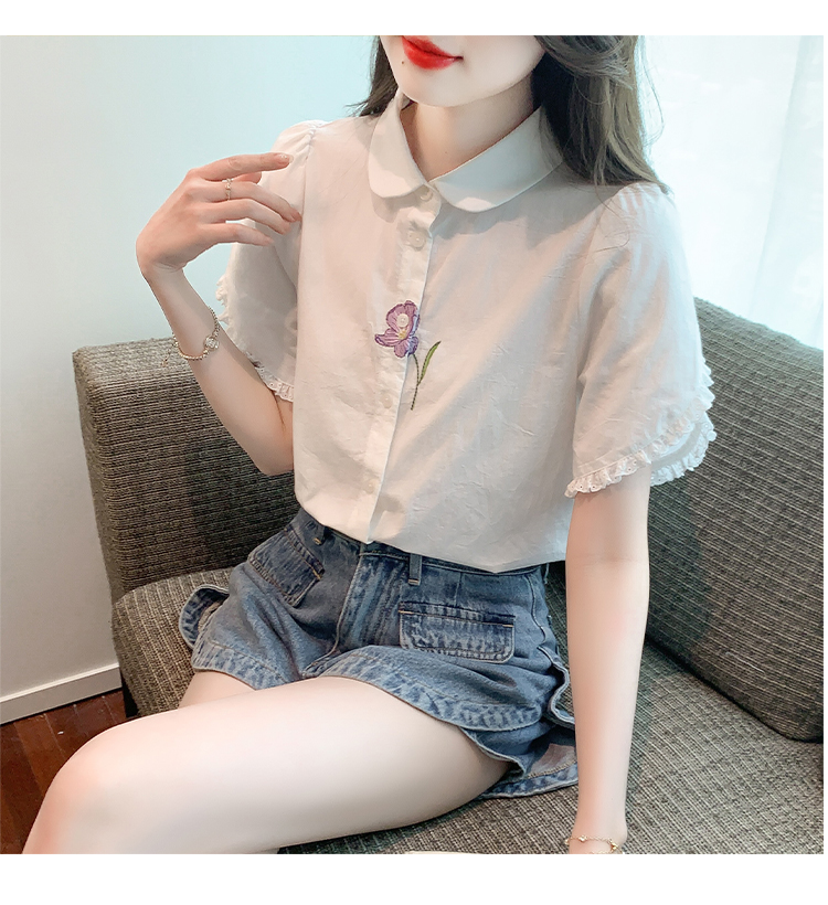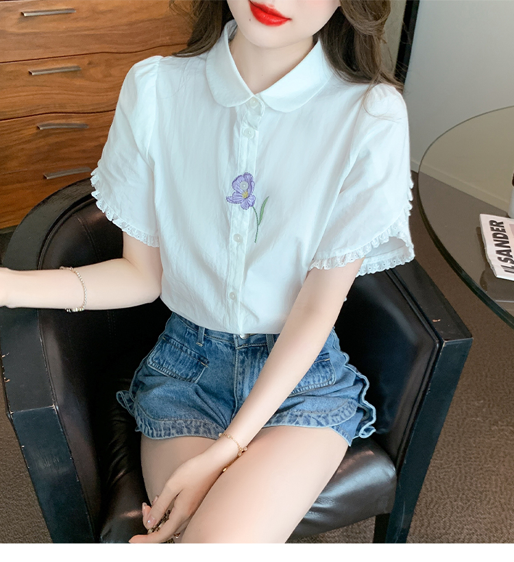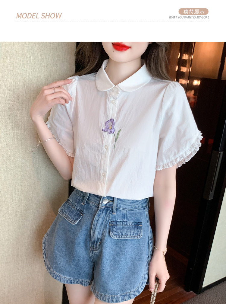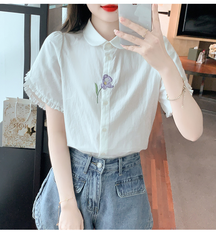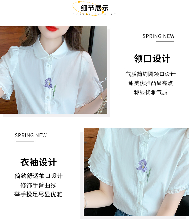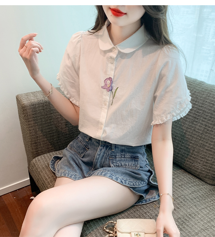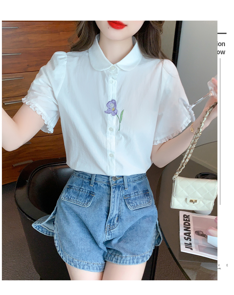 RM5100#法式文艺白色衬衫雪纺衫女士泡泡袖纯色短袖衬衣上衣