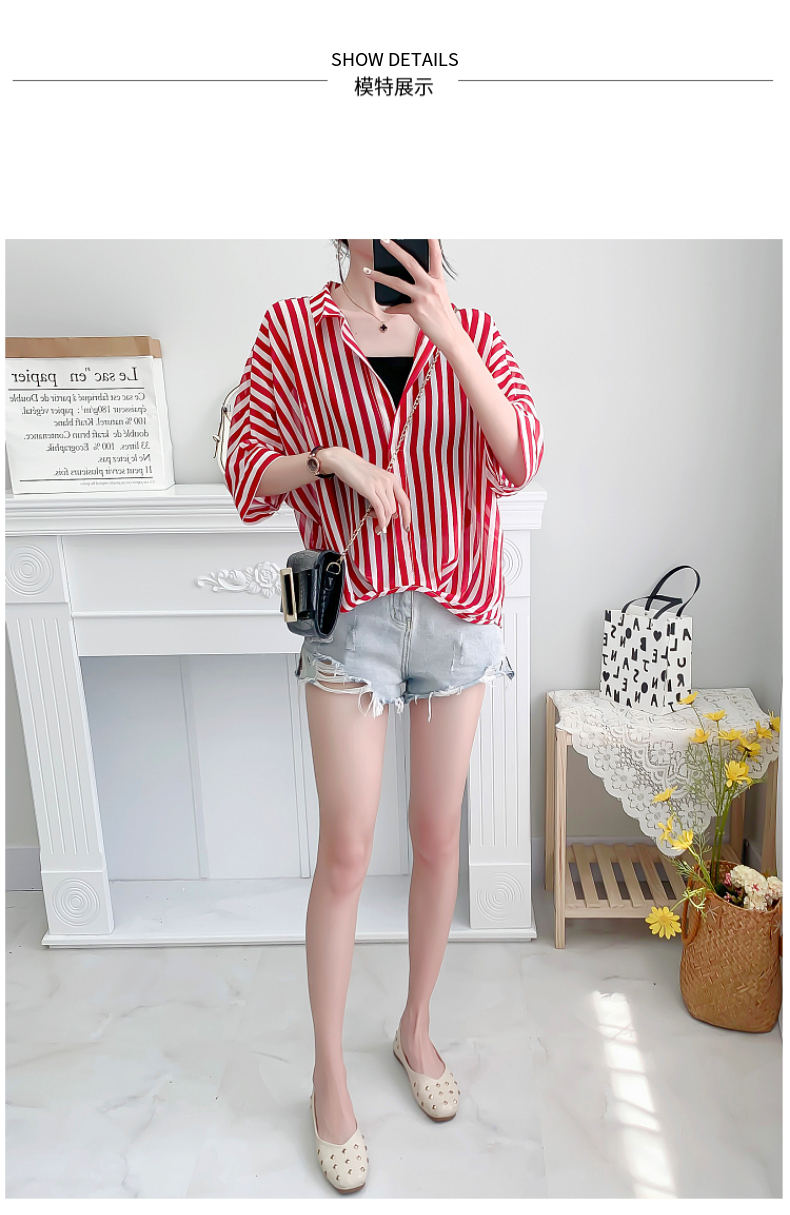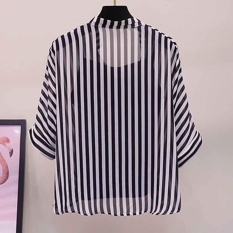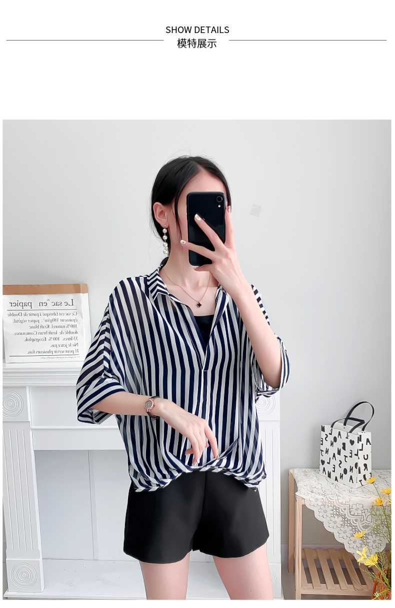 RM5114#夏装宽松雪纺衫蝙蝠袖藏肉显瘦衬衫女防晒衣上衣+内搭背心