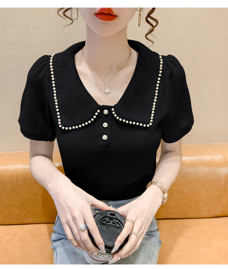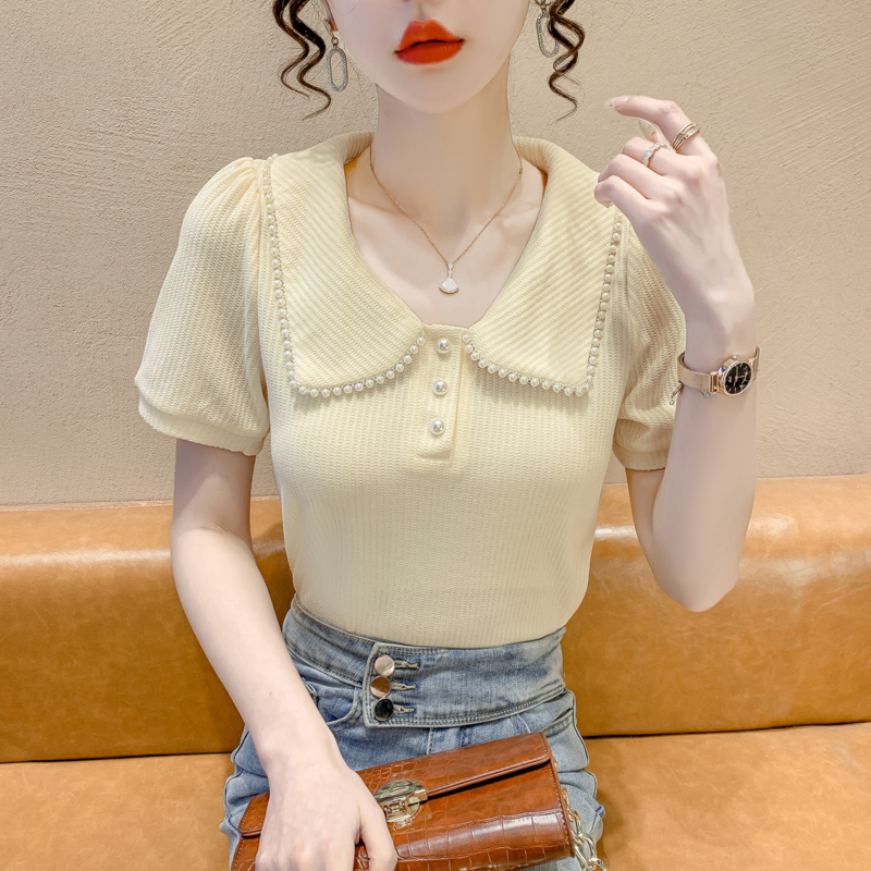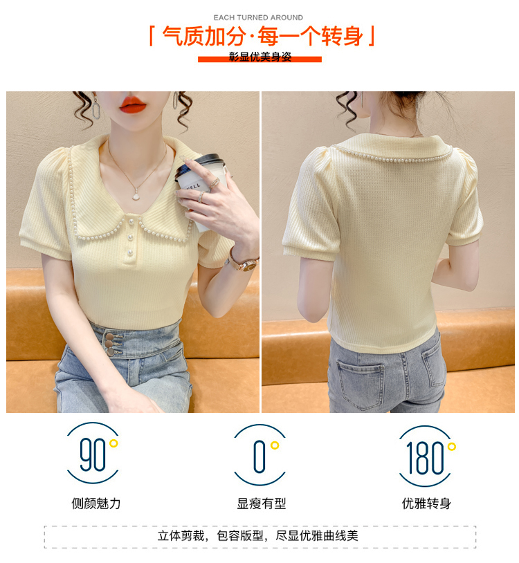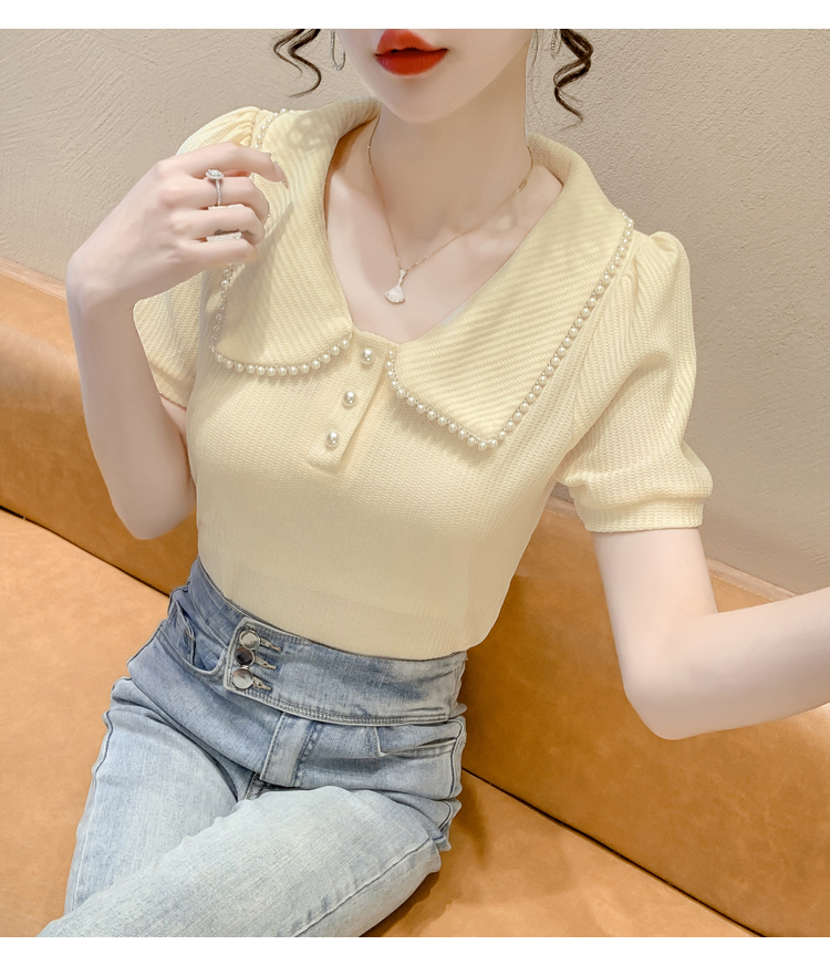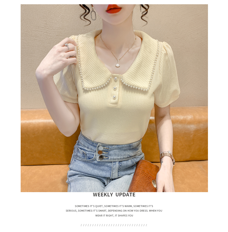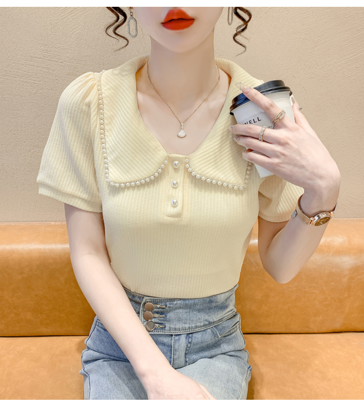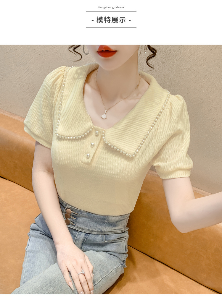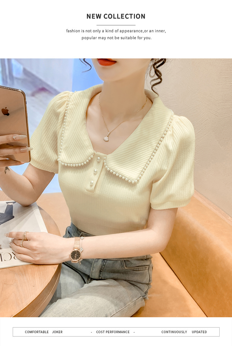 RM5192#夏季新款韩版青春甜美气质百搭泡泡袖娃娃领修身显瘦短袖上衣