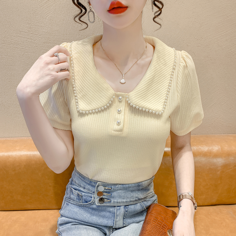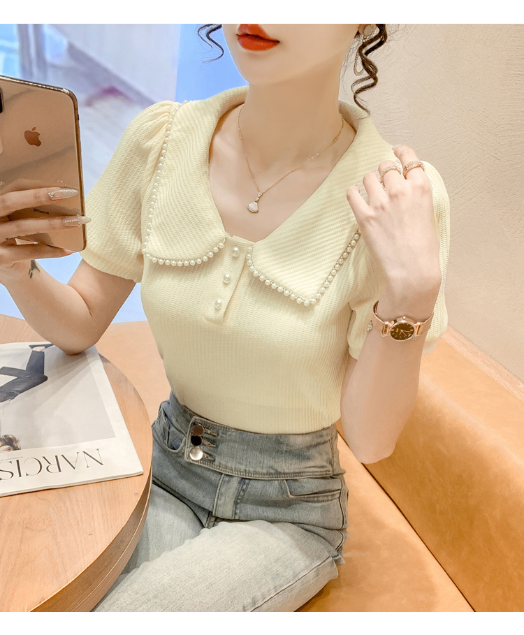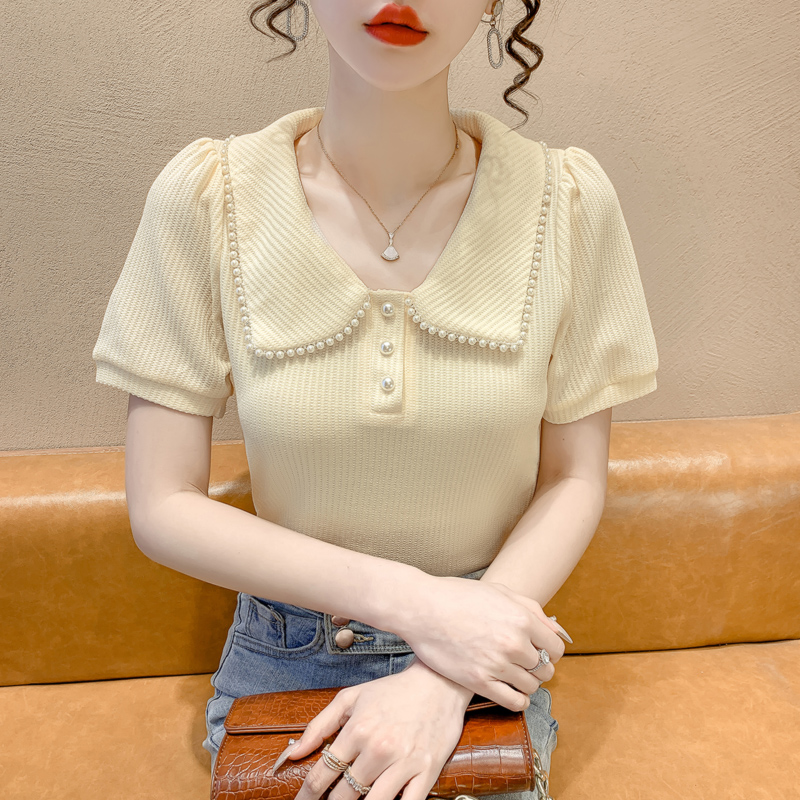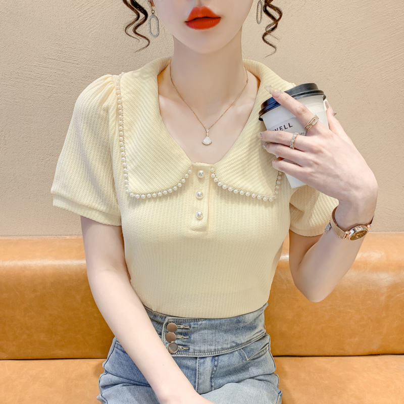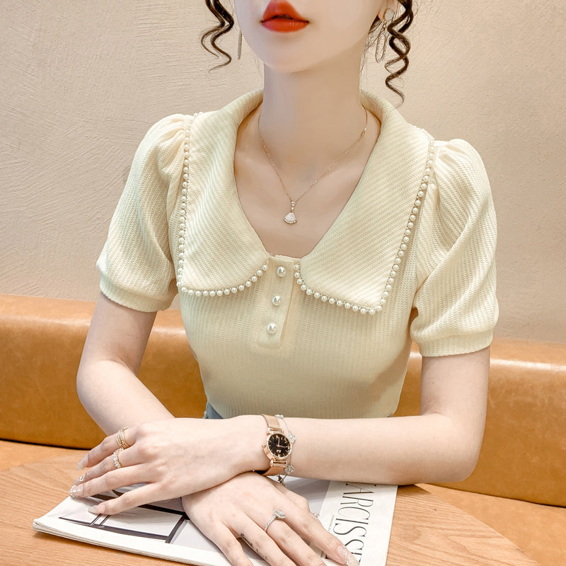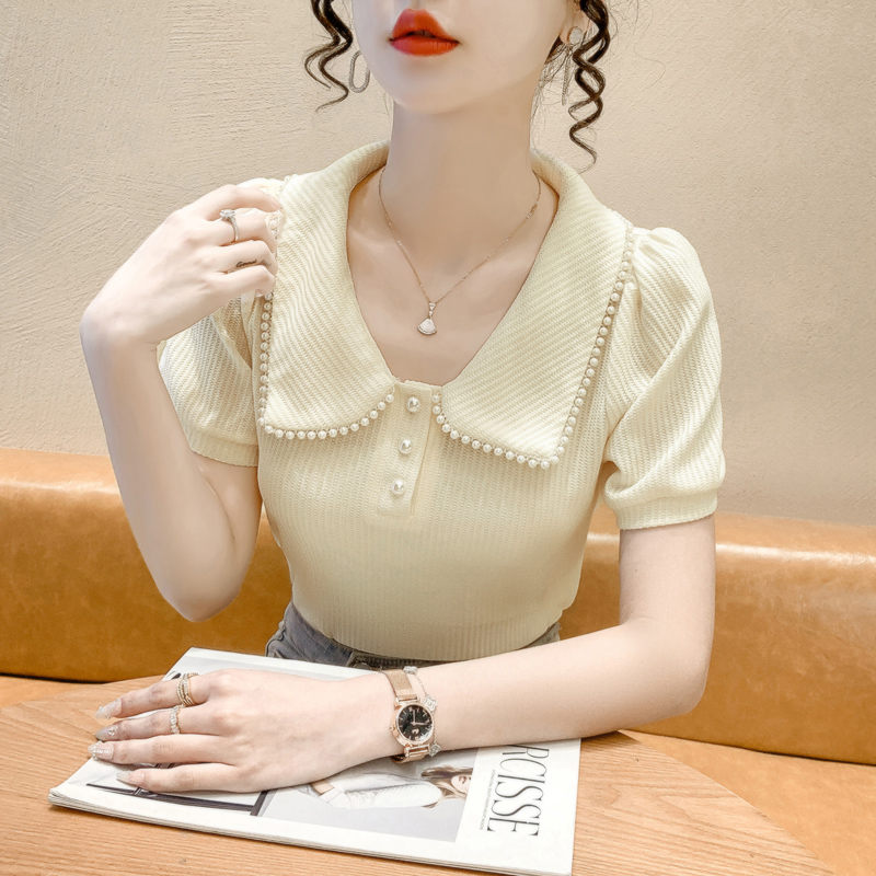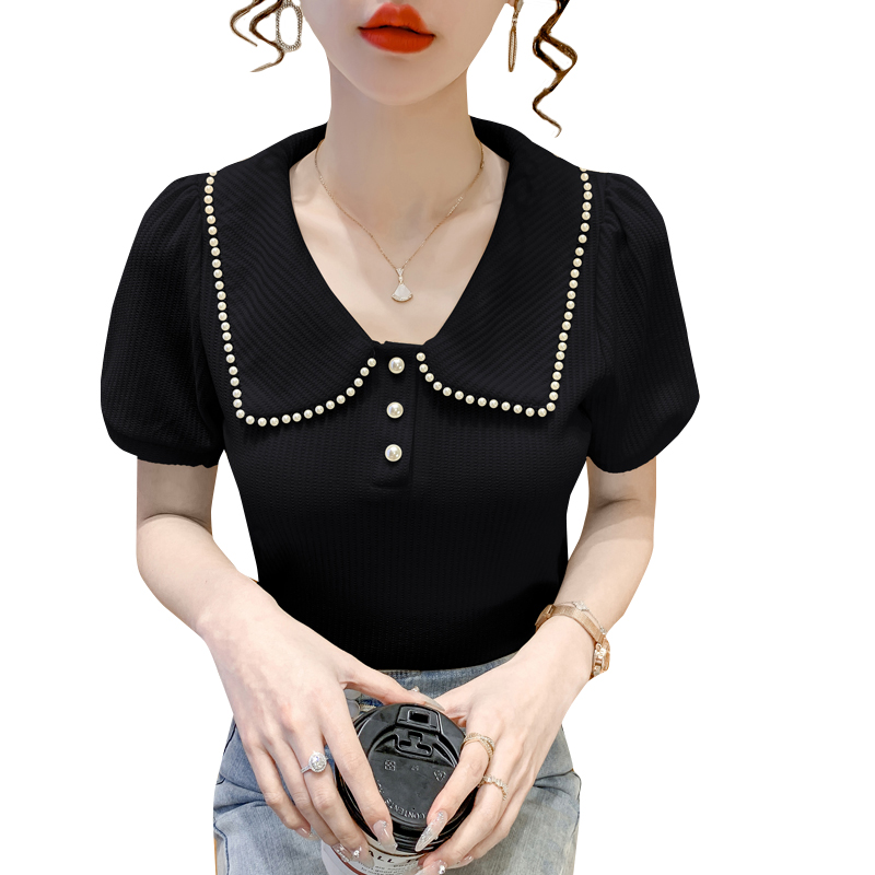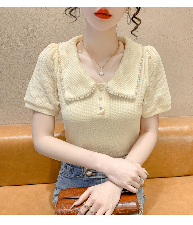 RM5192#夏季新款韩版青春甜美气质百搭泡泡袖娃娃领修身显瘦短袖上衣
