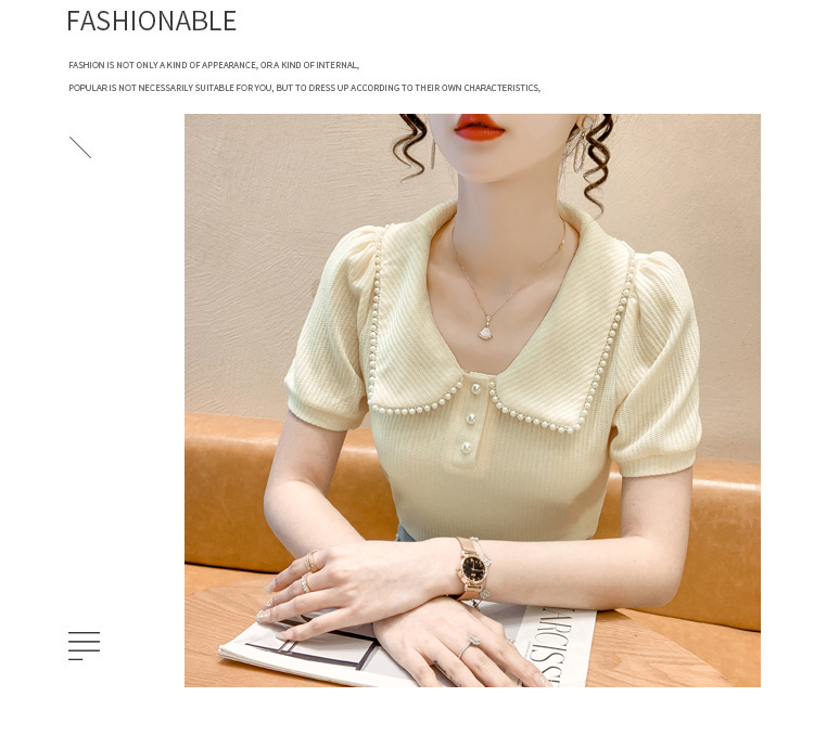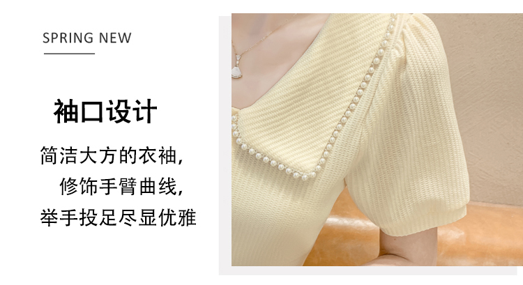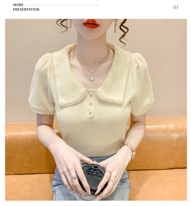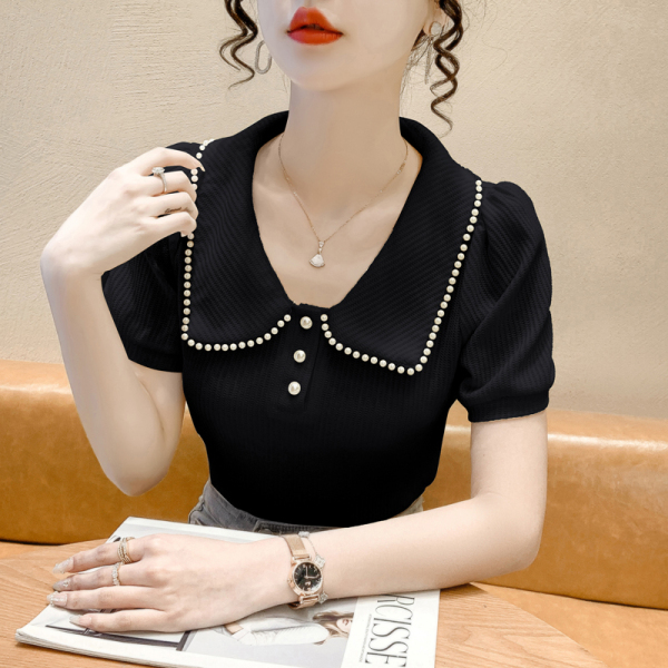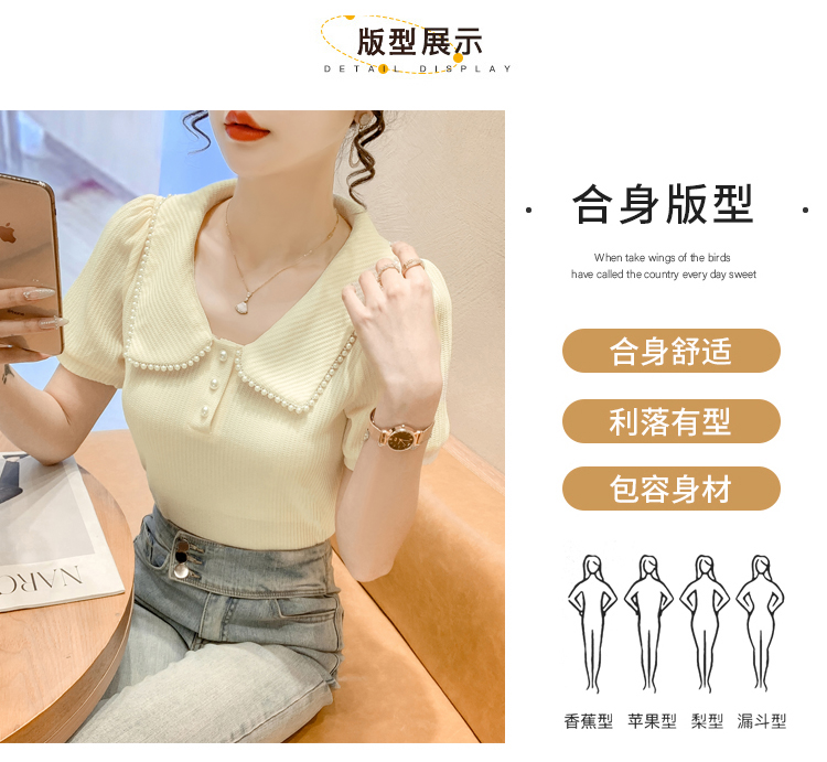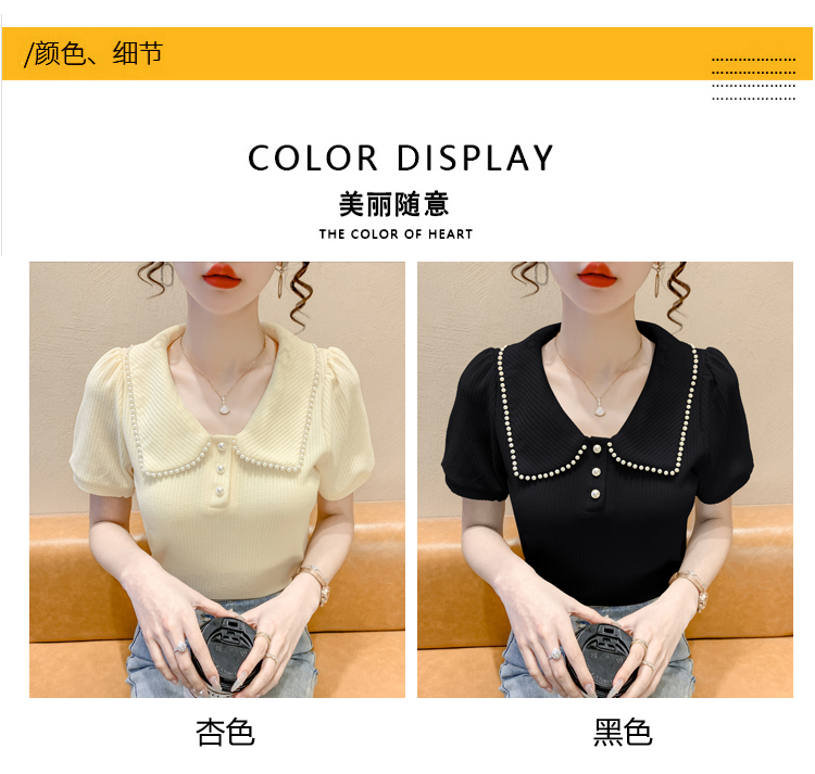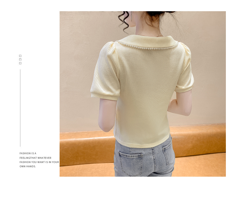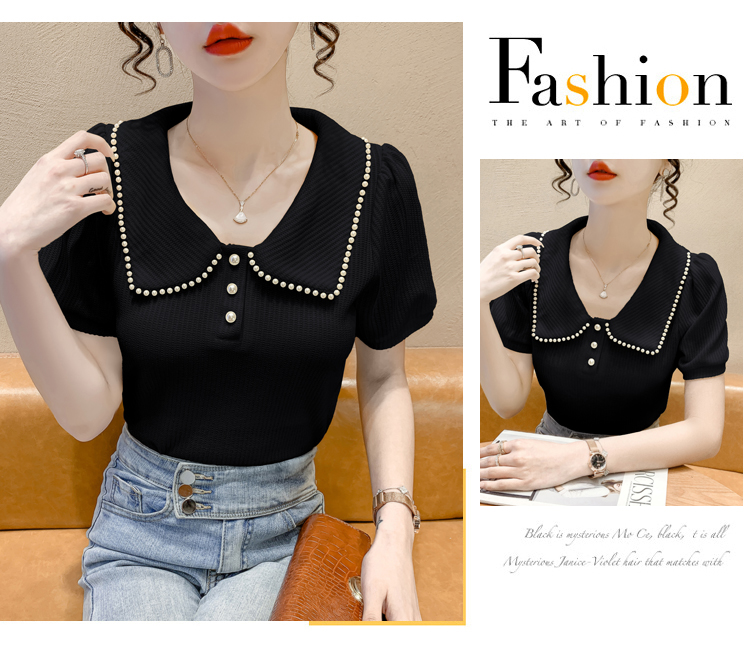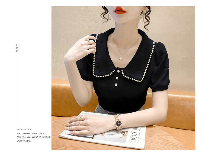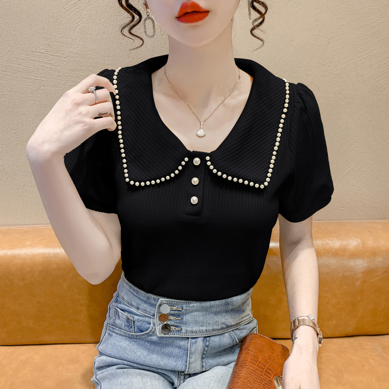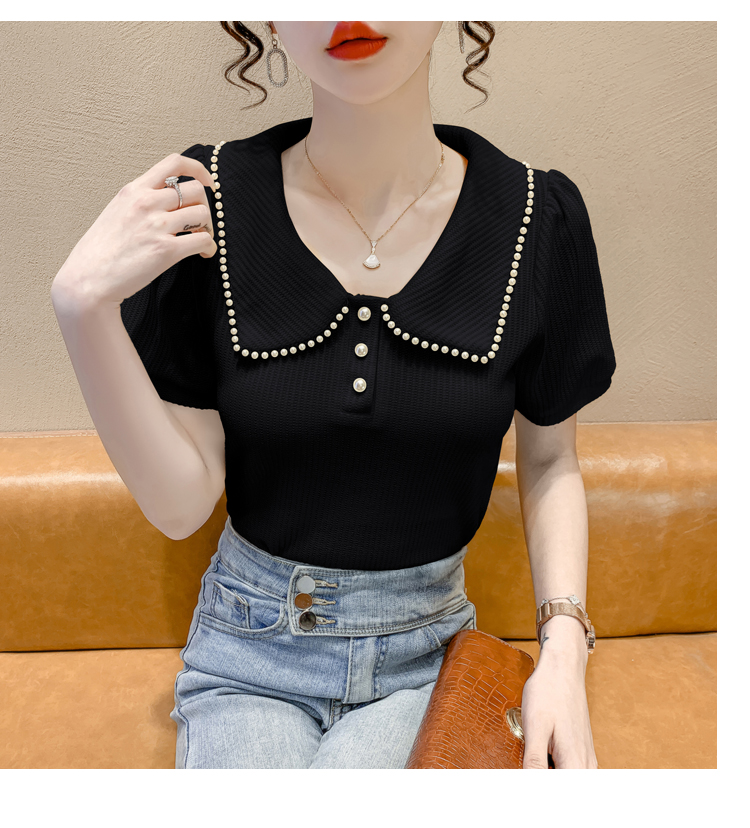 RM5192#夏季新款韩版青春甜美气质百搭泡泡袖娃娃领修身显瘦短袖上衣