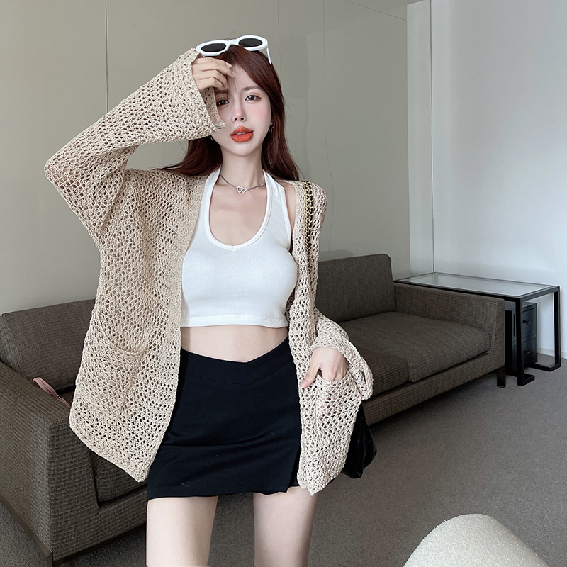 RM5220#设计感镂空针织开衫百搭宽松休闲防嗮外套上衣女