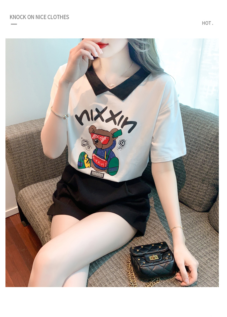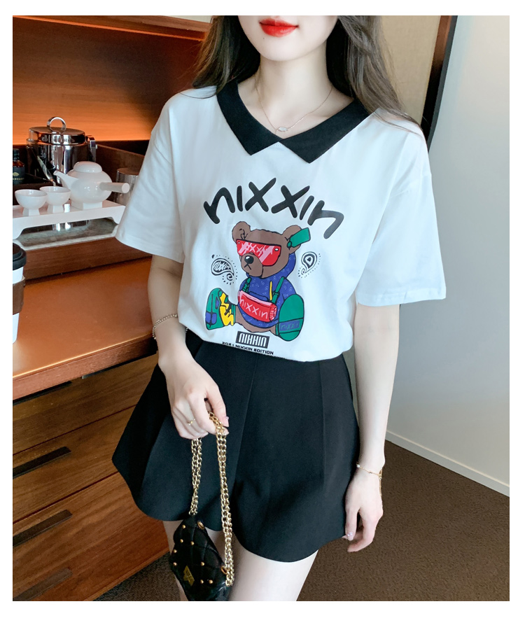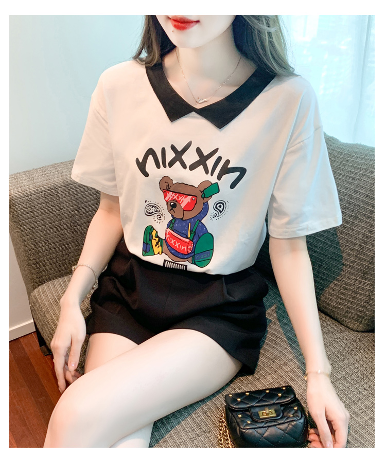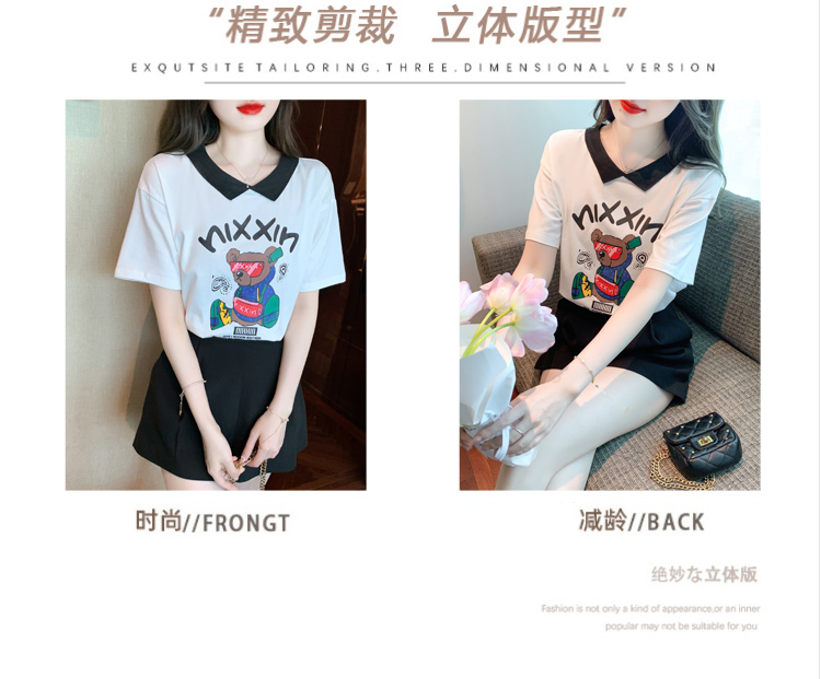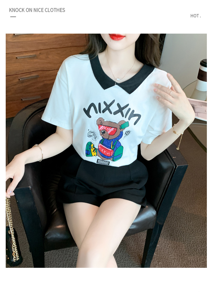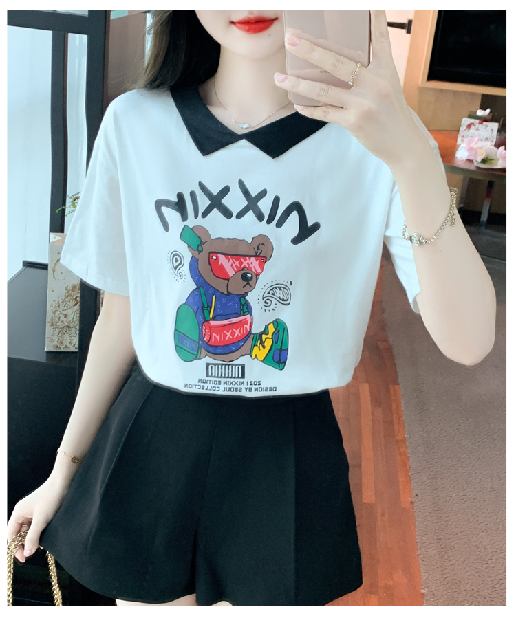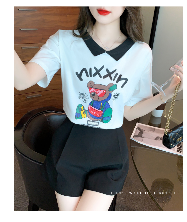 RM5382#夏季新款娃娃领套头纯棉T恤甜美减龄显瘦落肩短袖上衣
