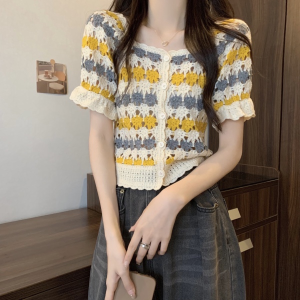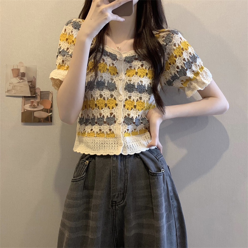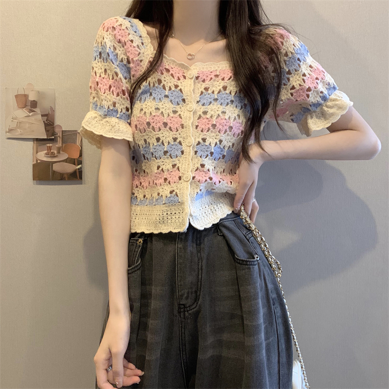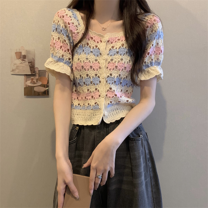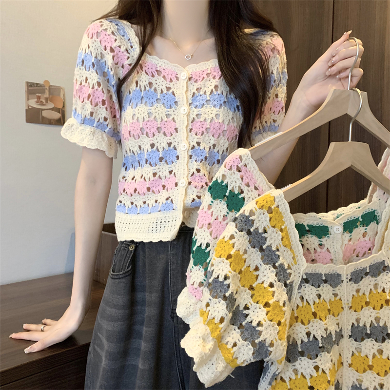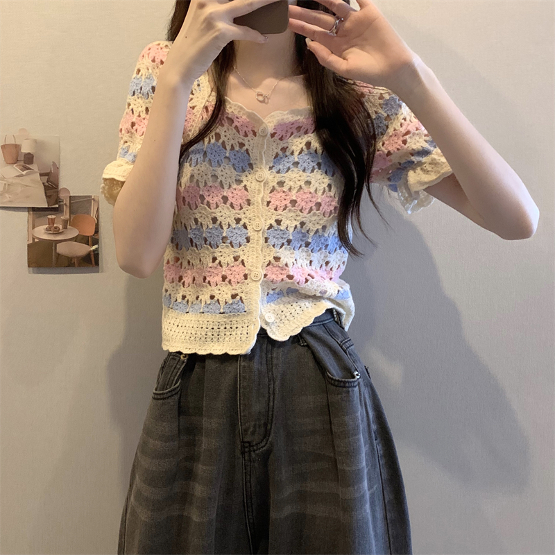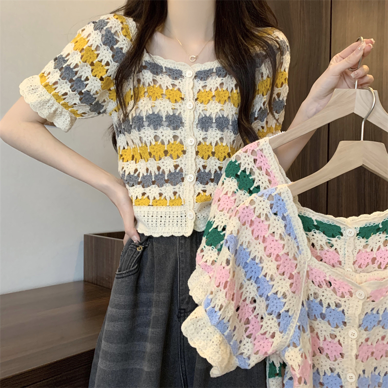 RM5388#新版韩风设计感钩花镂空短袖开衫