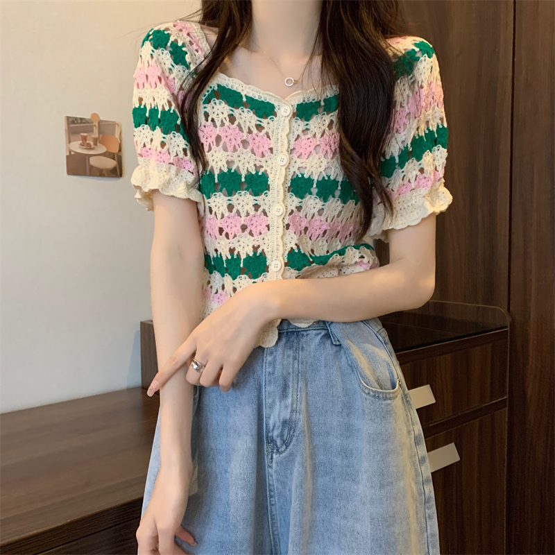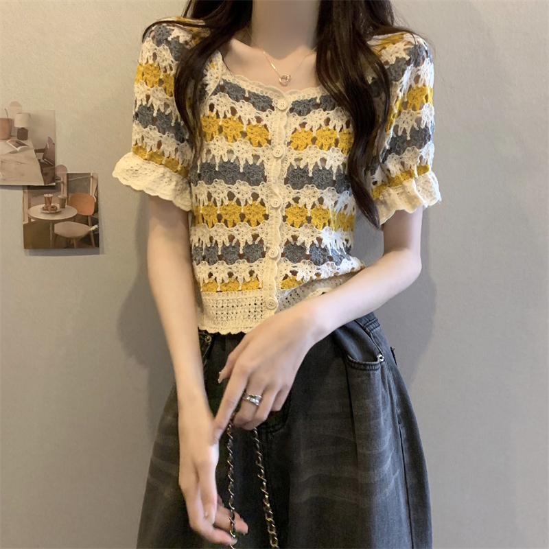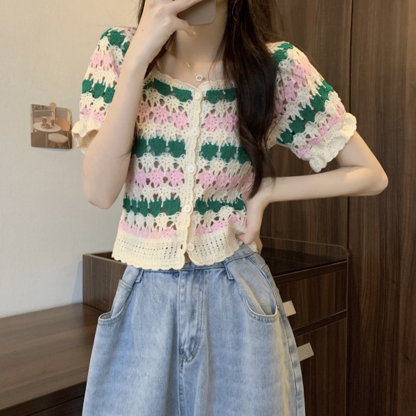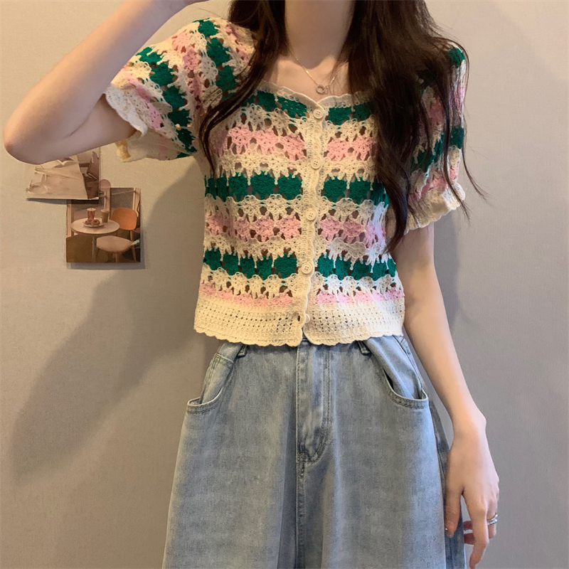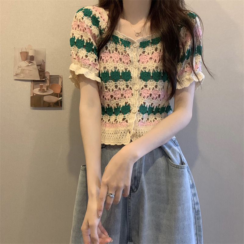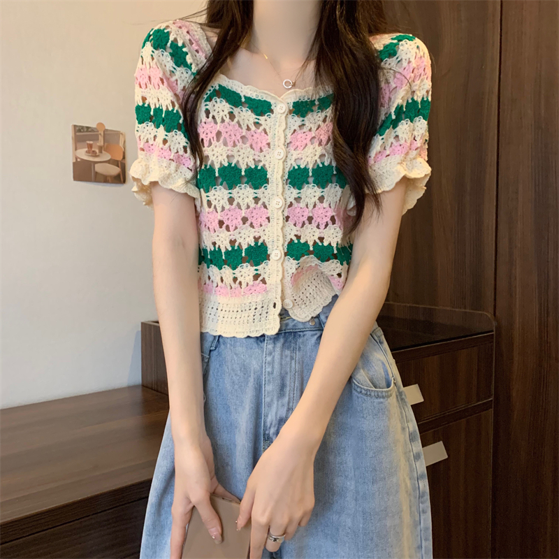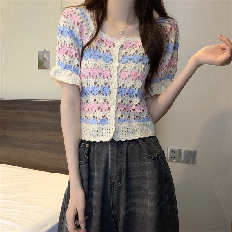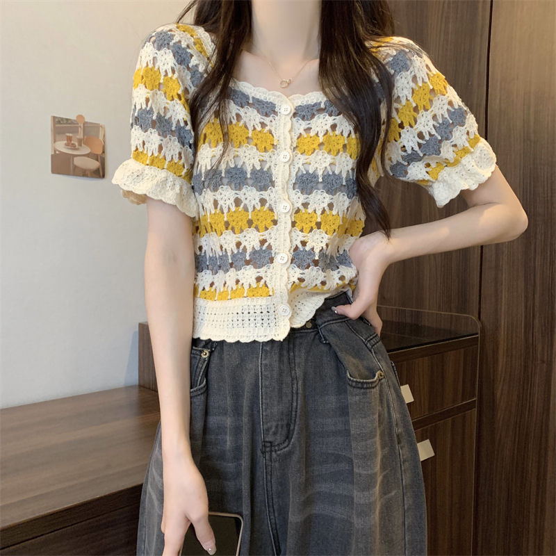 RM5388#新版韩风设计感钩花镂空短袖开衫