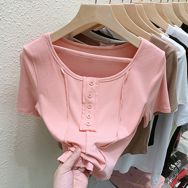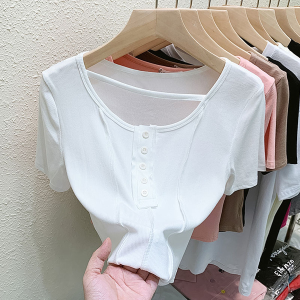 RM5583#小心机辣妹短袖T恤女夏设计感洋气百搭新款短款内搭半袖上衣