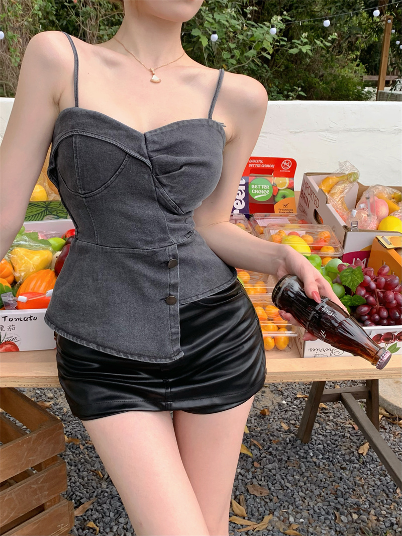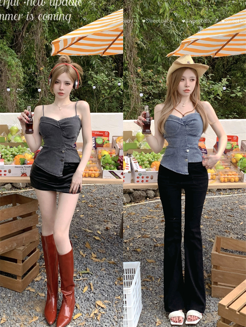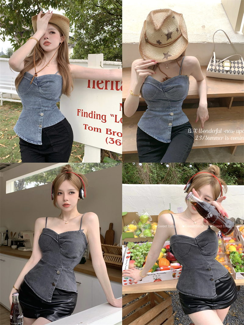 RM5729#夏季新款牛仔吊带不规则抹胸上衣
